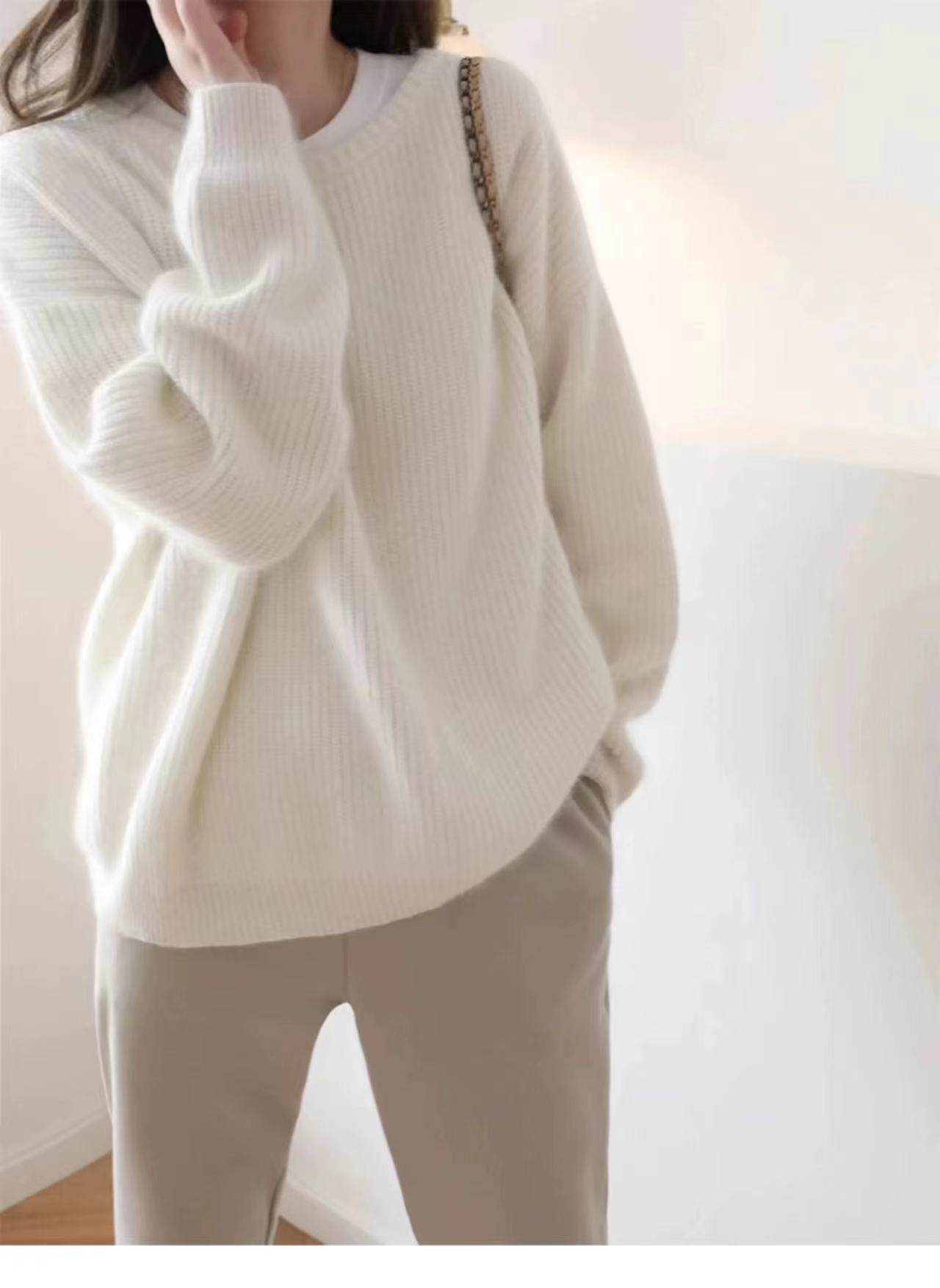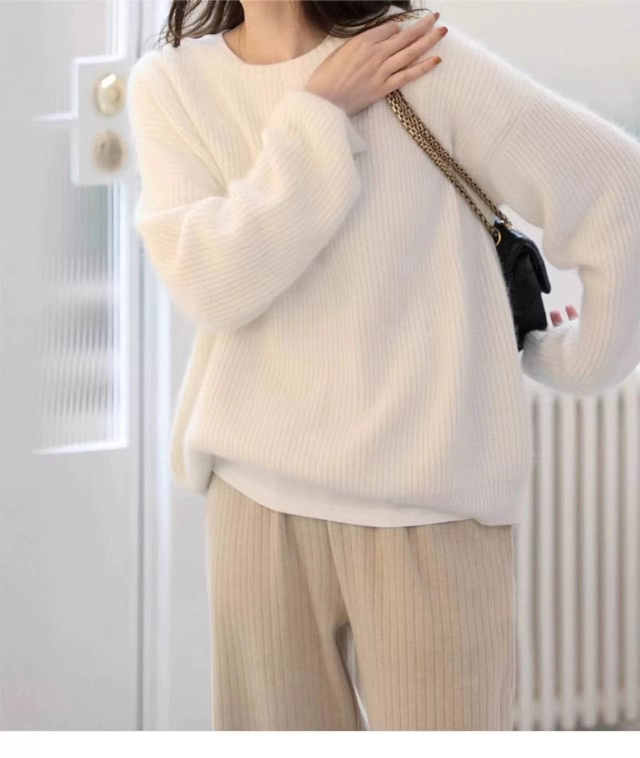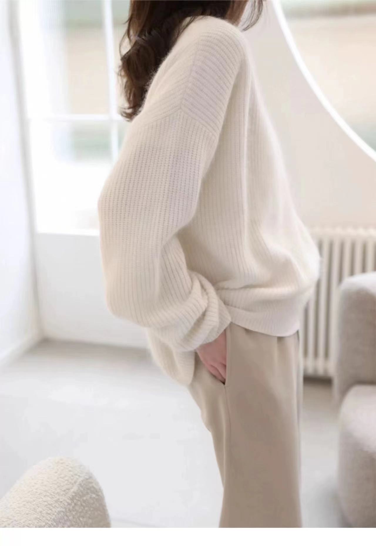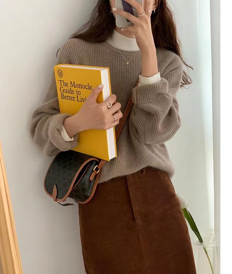 Suéter de Caxemira Estilo Europeu Outono/Inverno Feminino 2025 Outono/Inverno Novo Macio e Aconchegante Solto Preguiçoso Grosso Lã Base Suéter