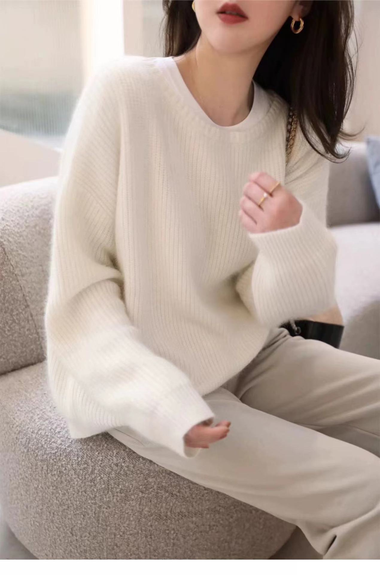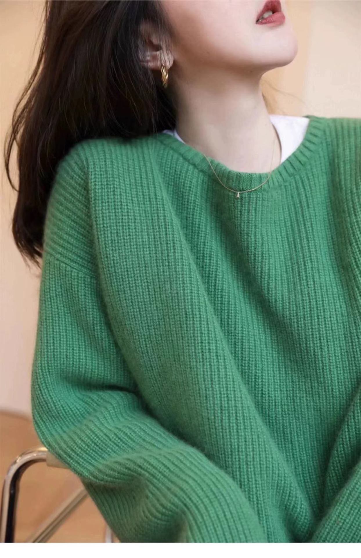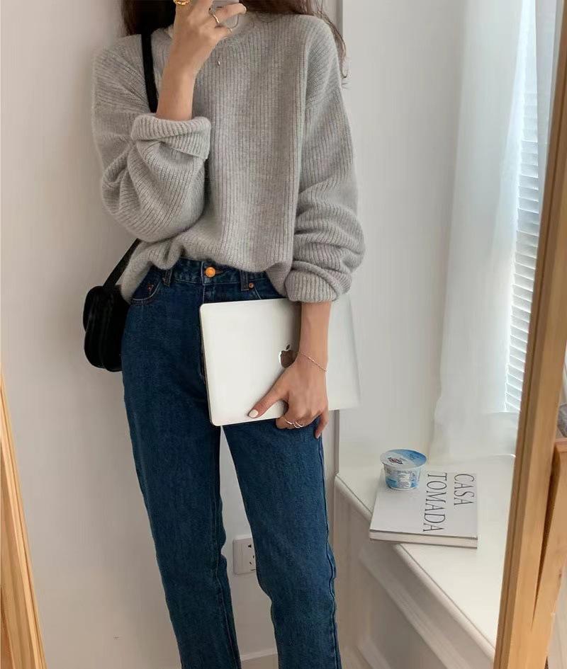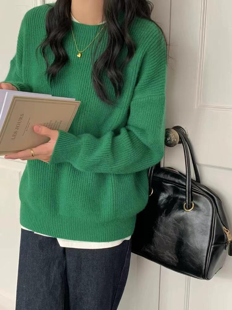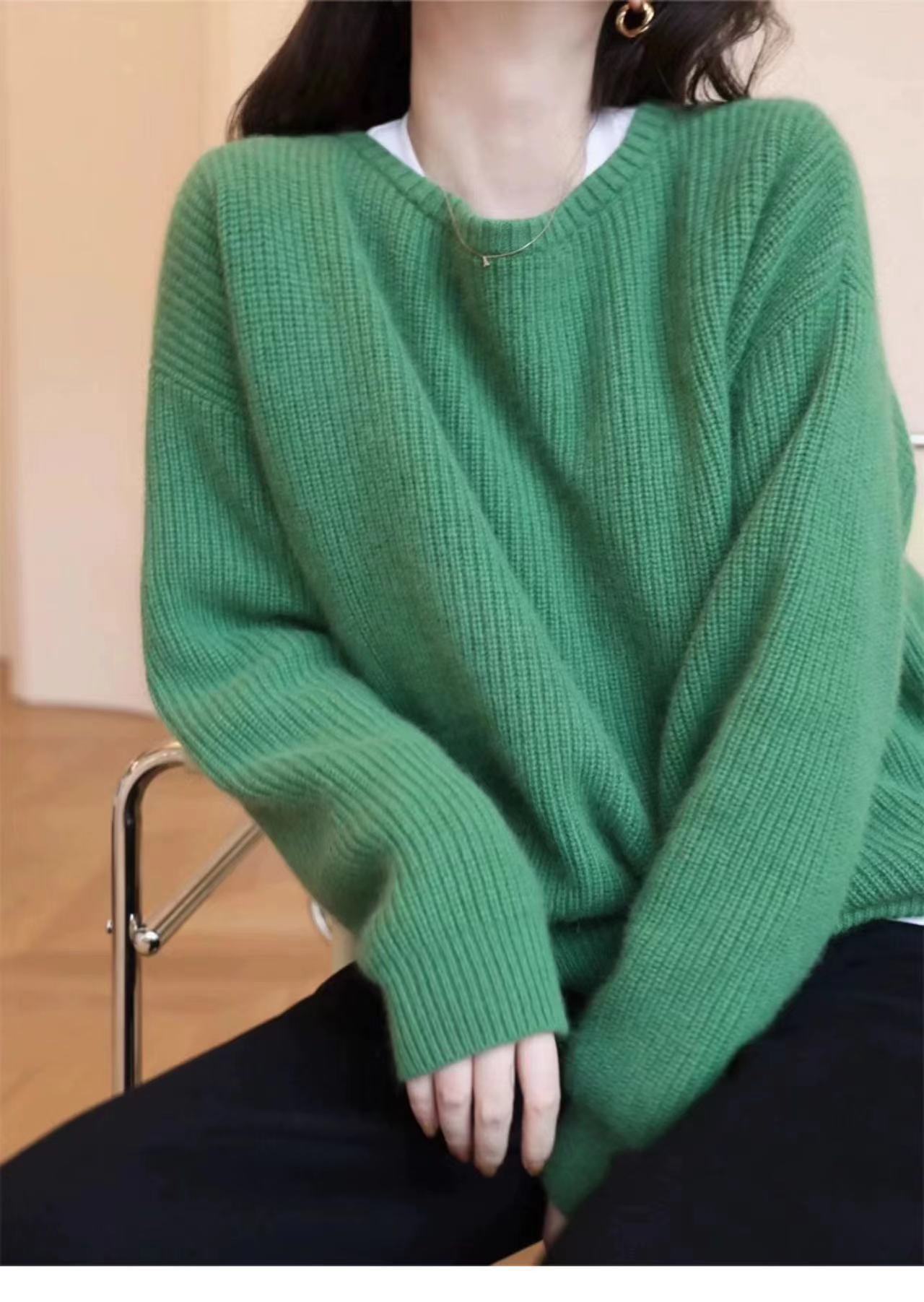 Suéter de Caxemira Estilo Europeu Outono/Inverno Feminino 2025 Outono/Inverno Novo Macio e Aconchegante Solto Preguiçoso Grosso Lã Base Suéter