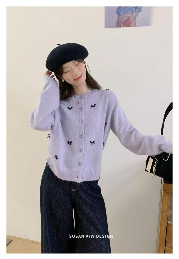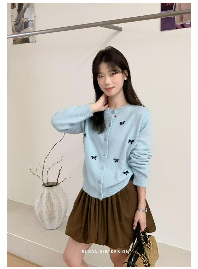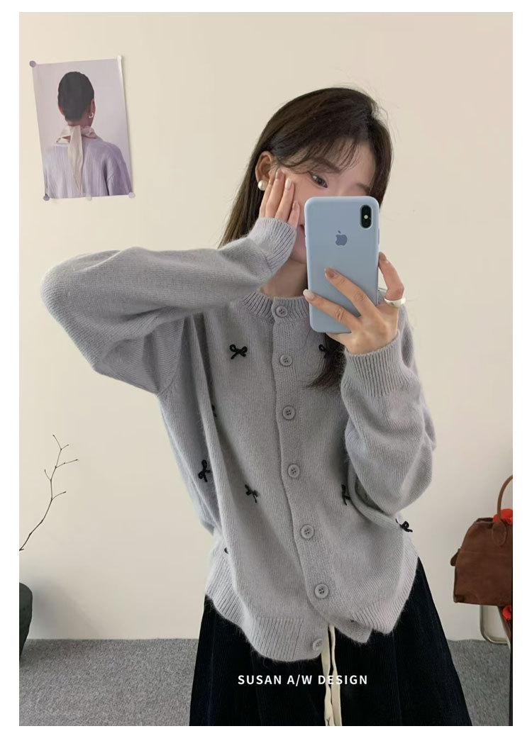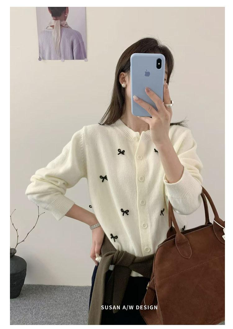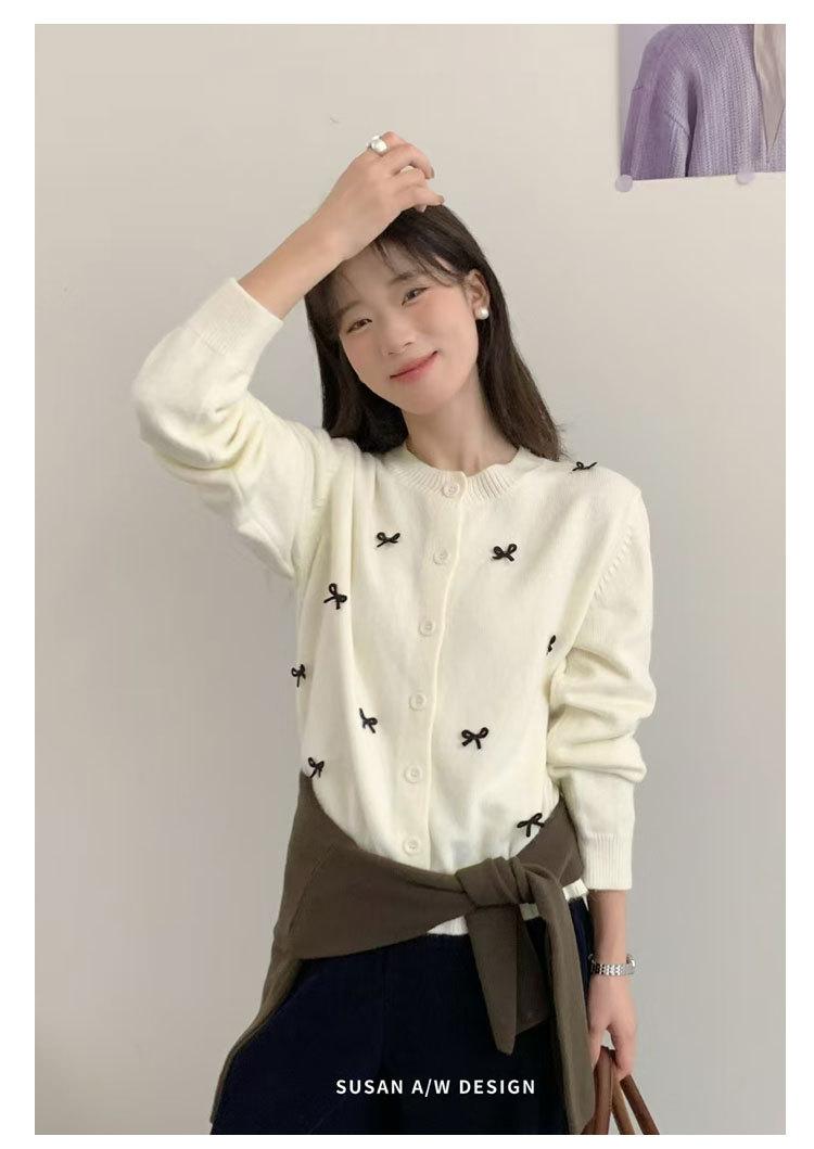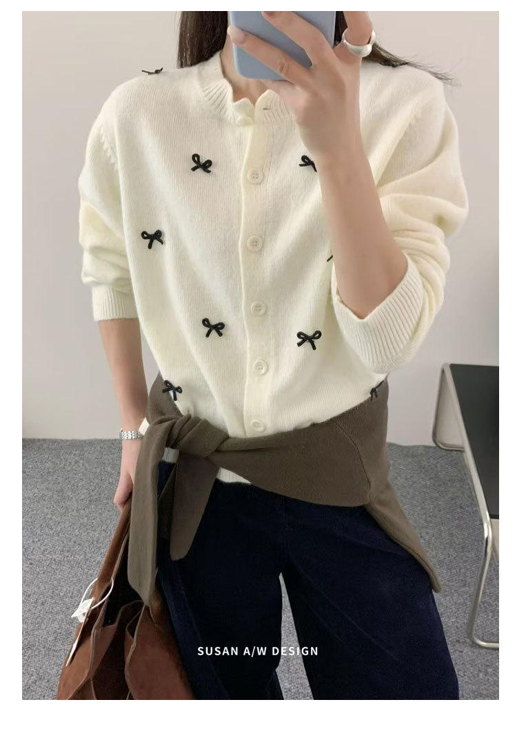 Cardigã Susan Decote Redondo Estilo Delicado Feminino 2025 Outono/Inverno Novo Emagrecimento Laço Tricô Casaco Maré 25289