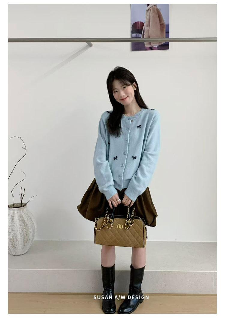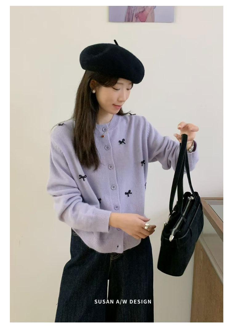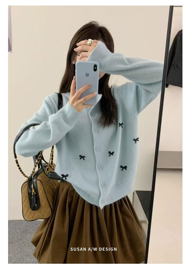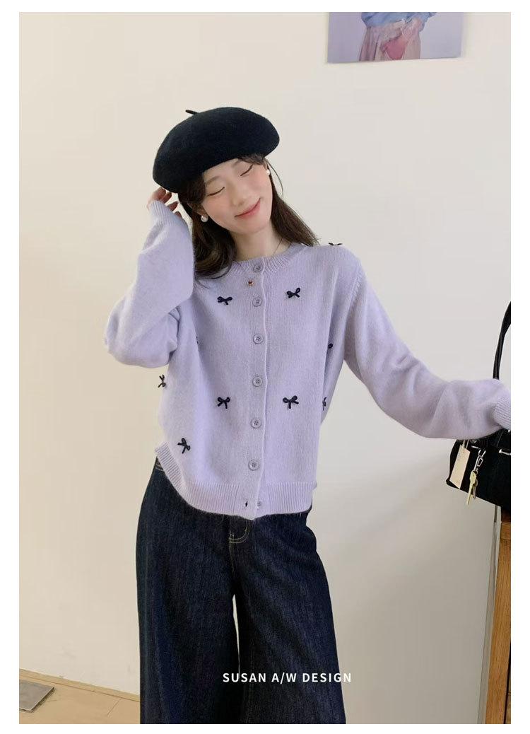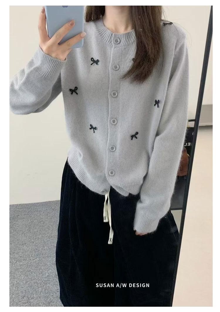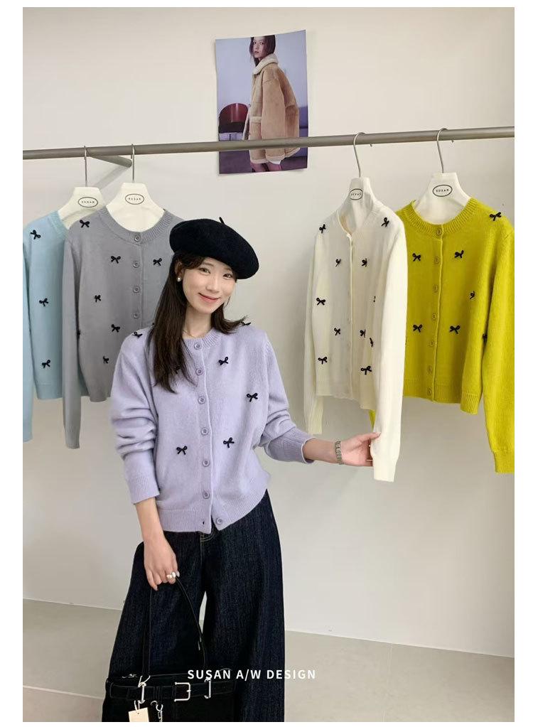 Cardigã Susan Decote Redondo Estilo Delicado Feminino 2025 Outono/Inverno Novo Emagrecimento Laço Tricô Casaco Maré 25289