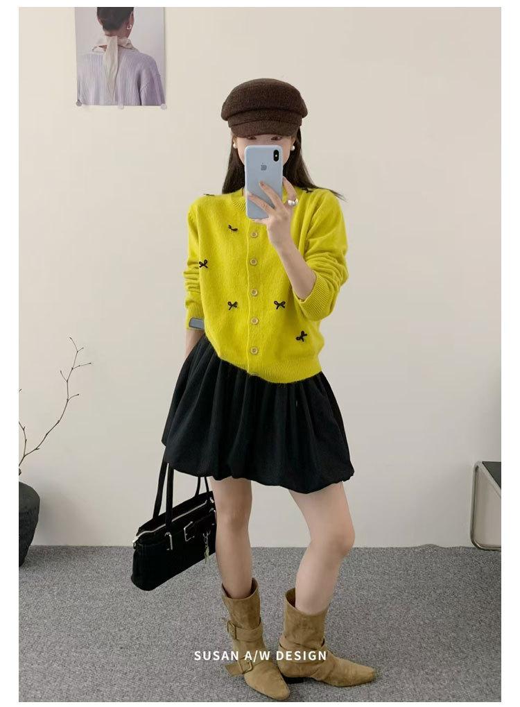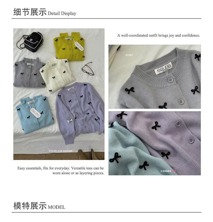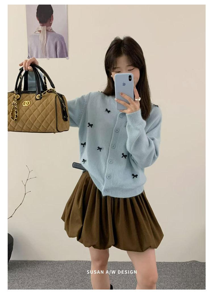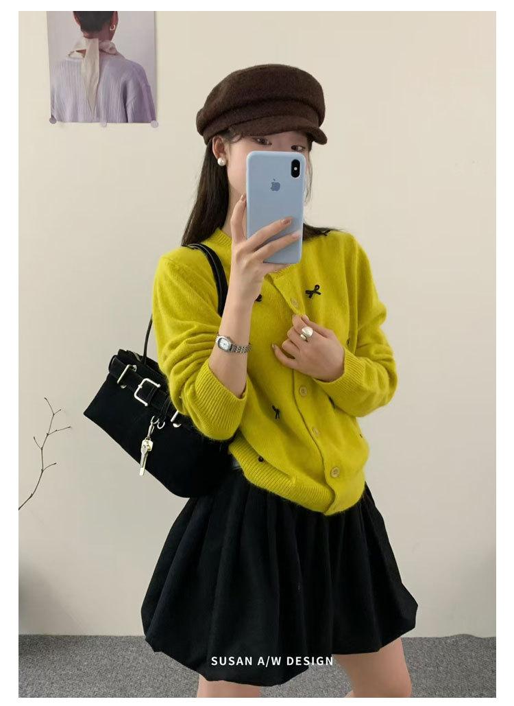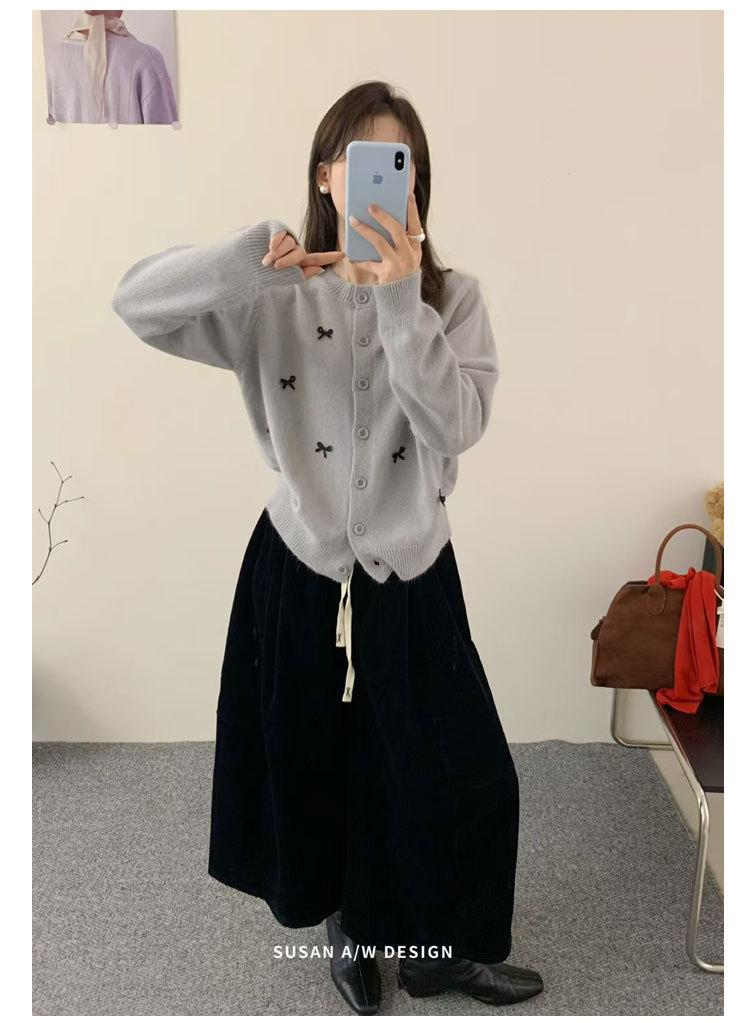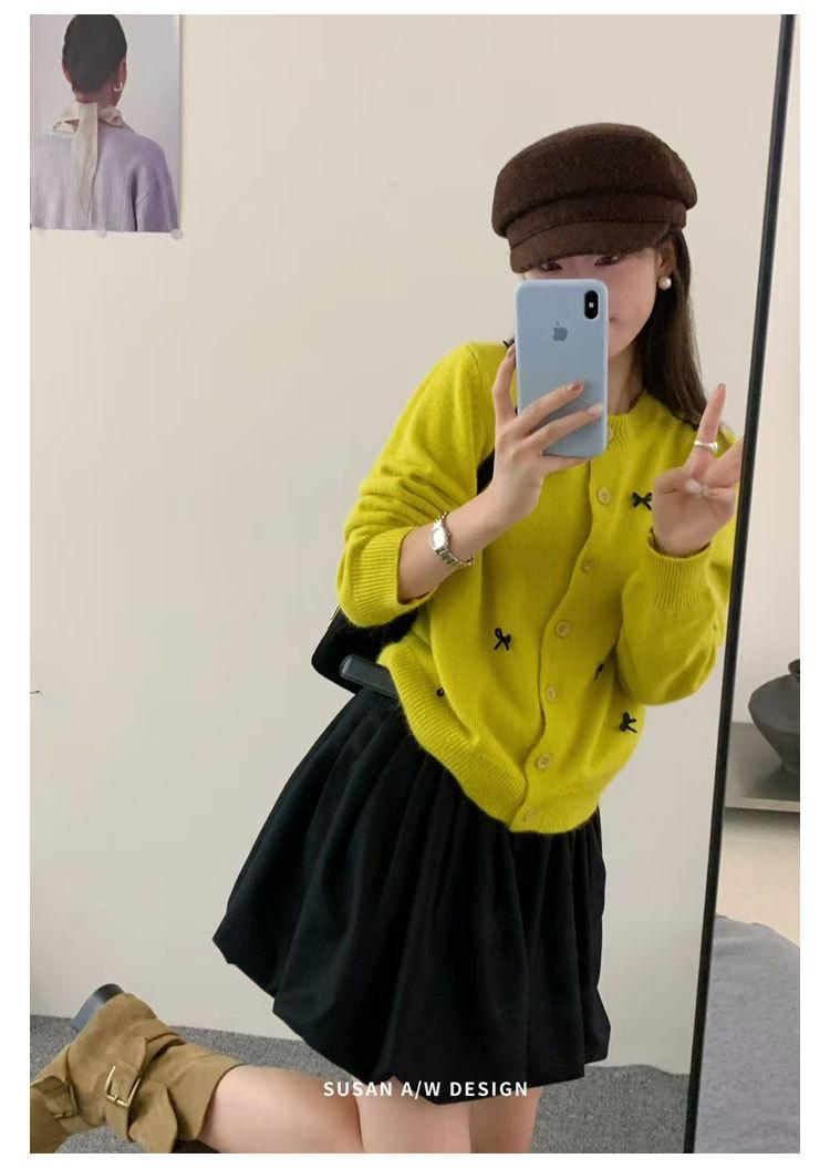 Cardigã Susan Decote Redondo Estilo Delicado Feminino 2025 Outono/Inverno Novo Emagrecimento Laço Tricô Casaco Maré 25289