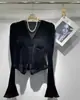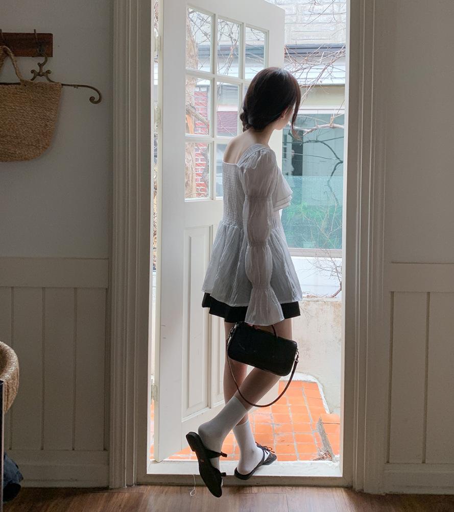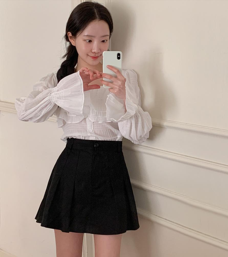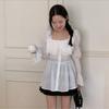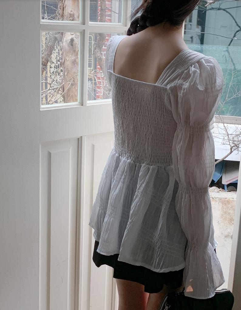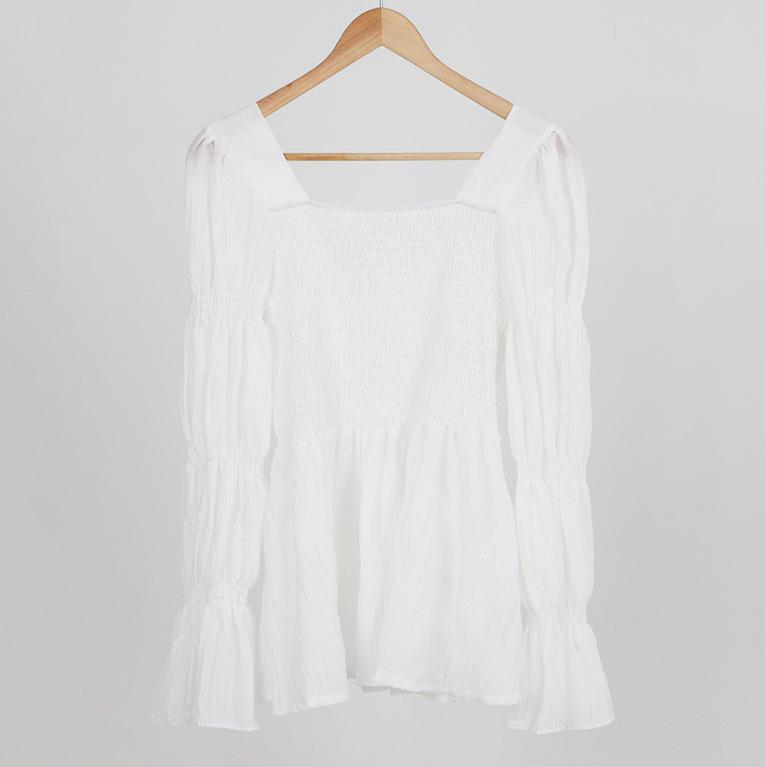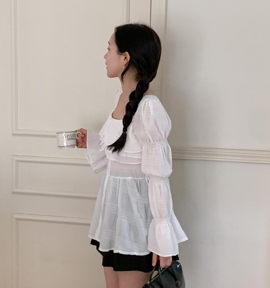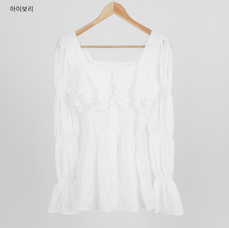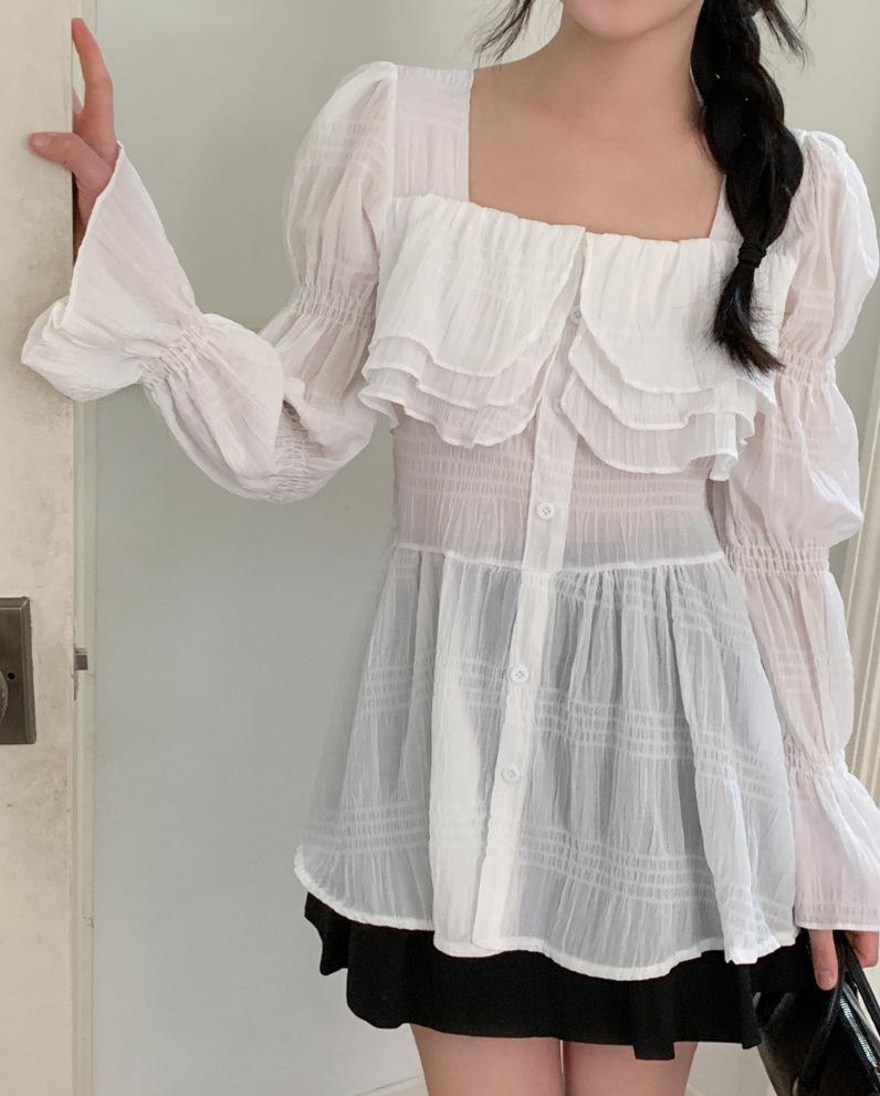 Top Camisa Feminina Manga Longa Temperamento Emagrecimento Comprimento Estendido Bainha Babados Decote Quadrado Sexy Coreano Início do Outono