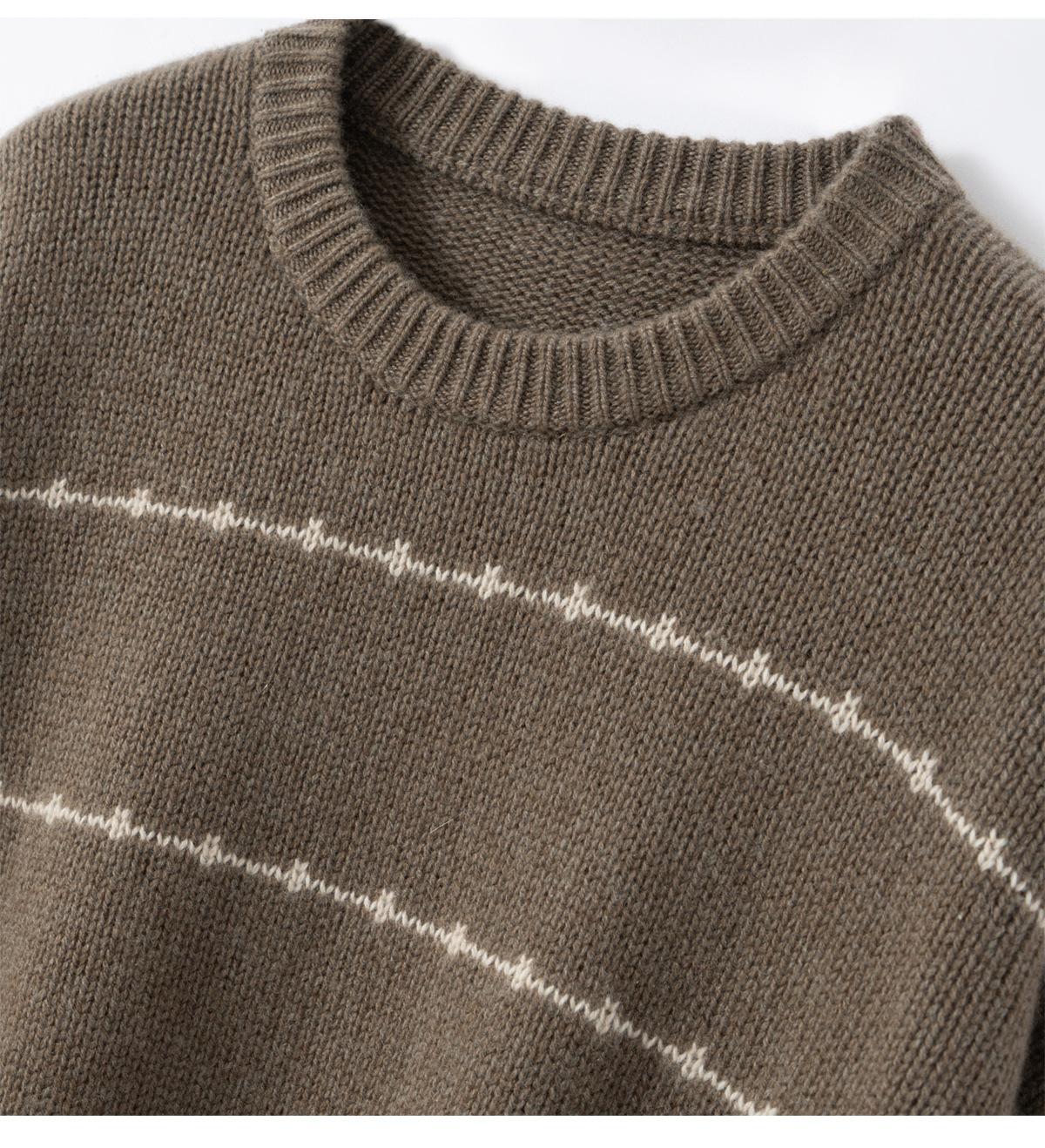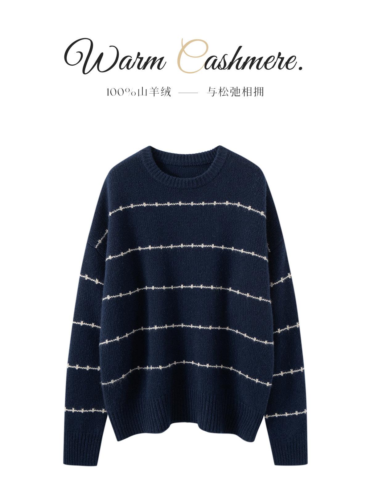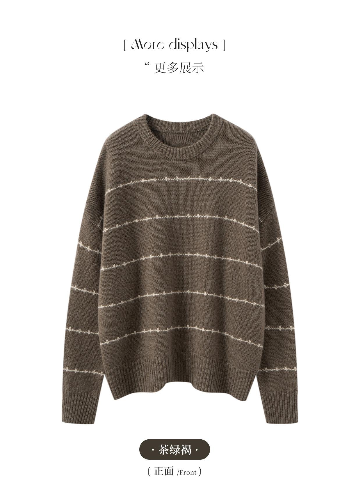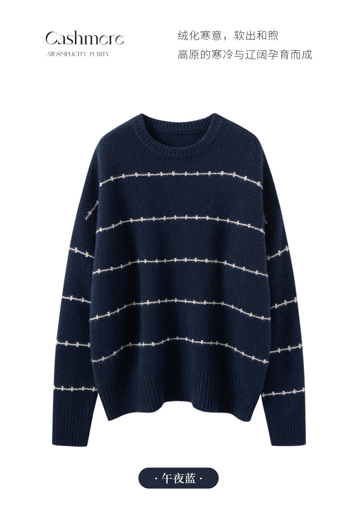 Suéter de Caxemira Feminino 100% Caxemira Pura Casual Versátil Solto Listrado Tricotado Gola Redonda Pulôver Suéter Espesso