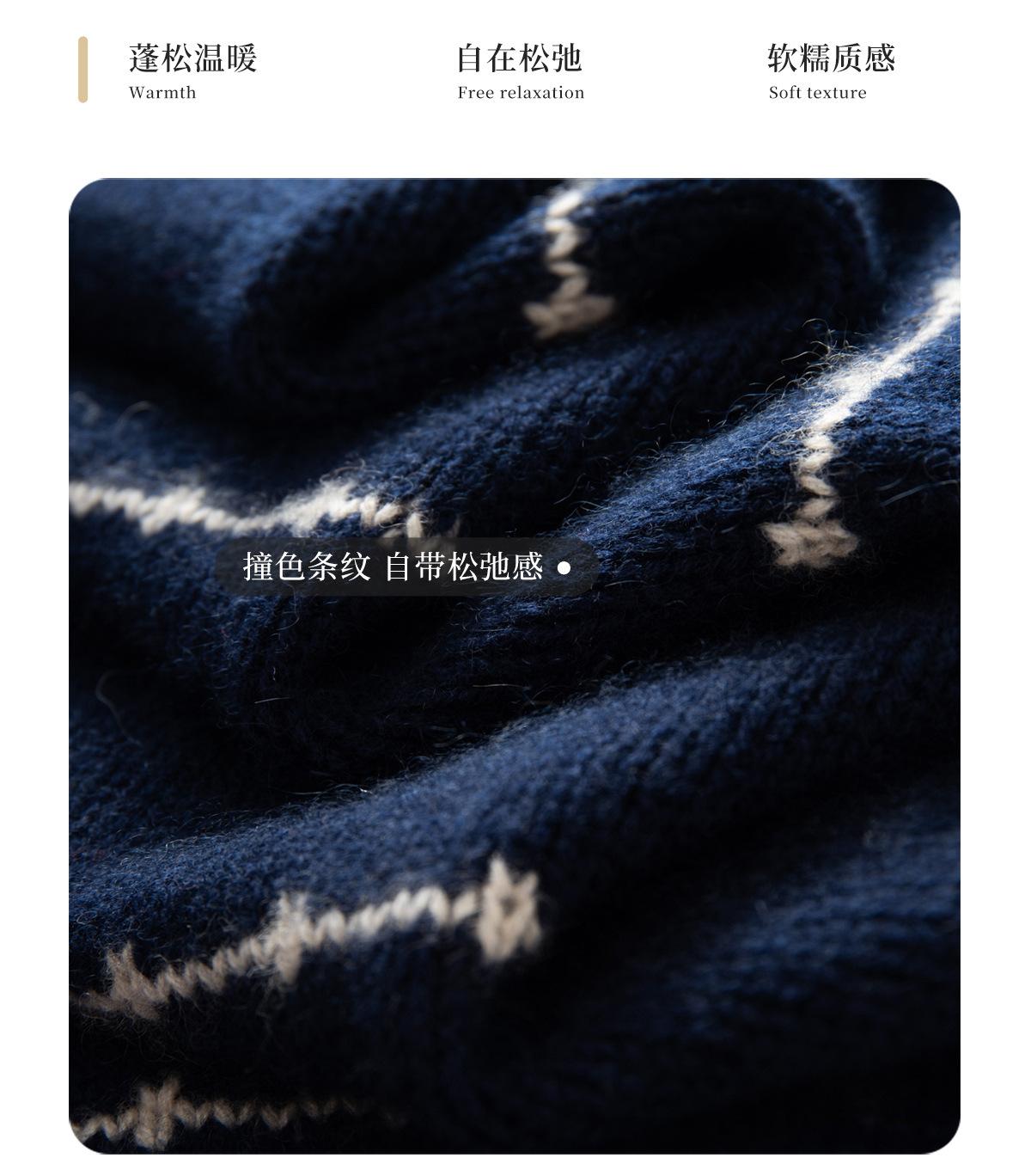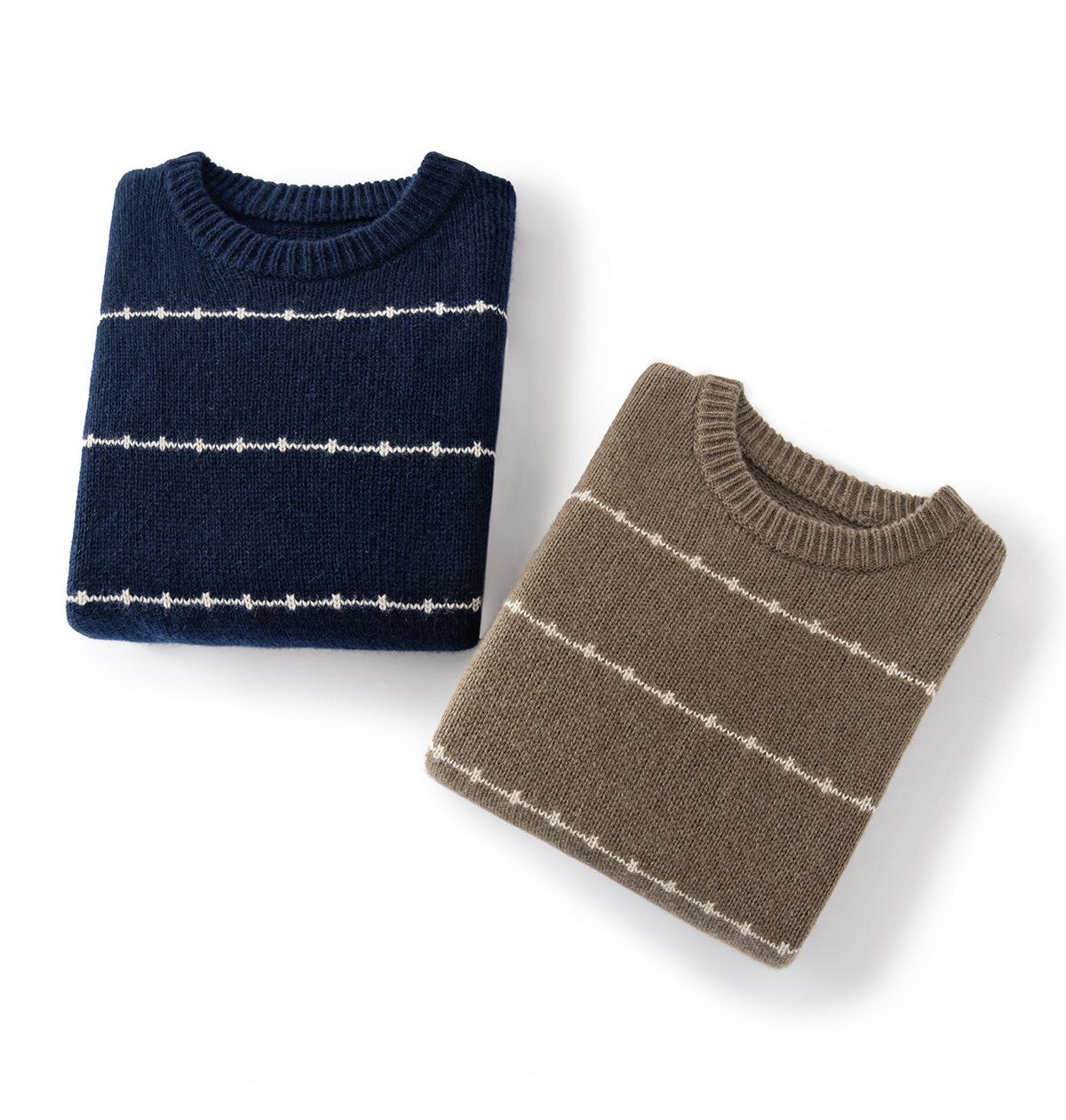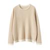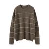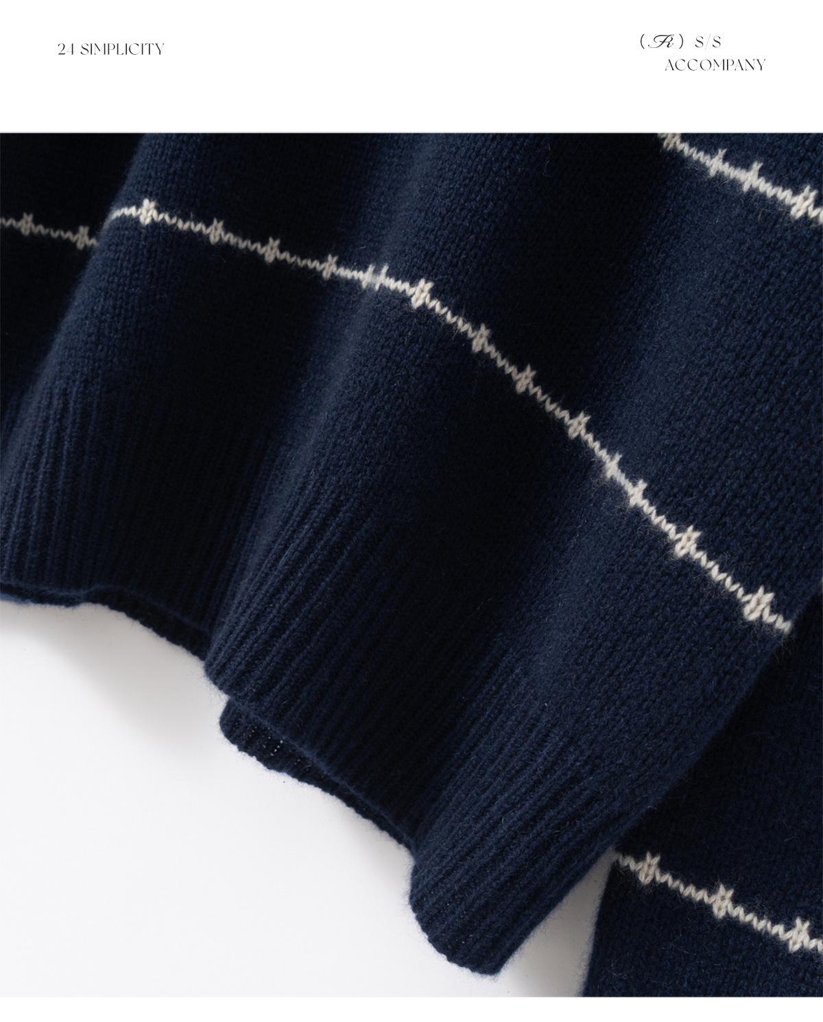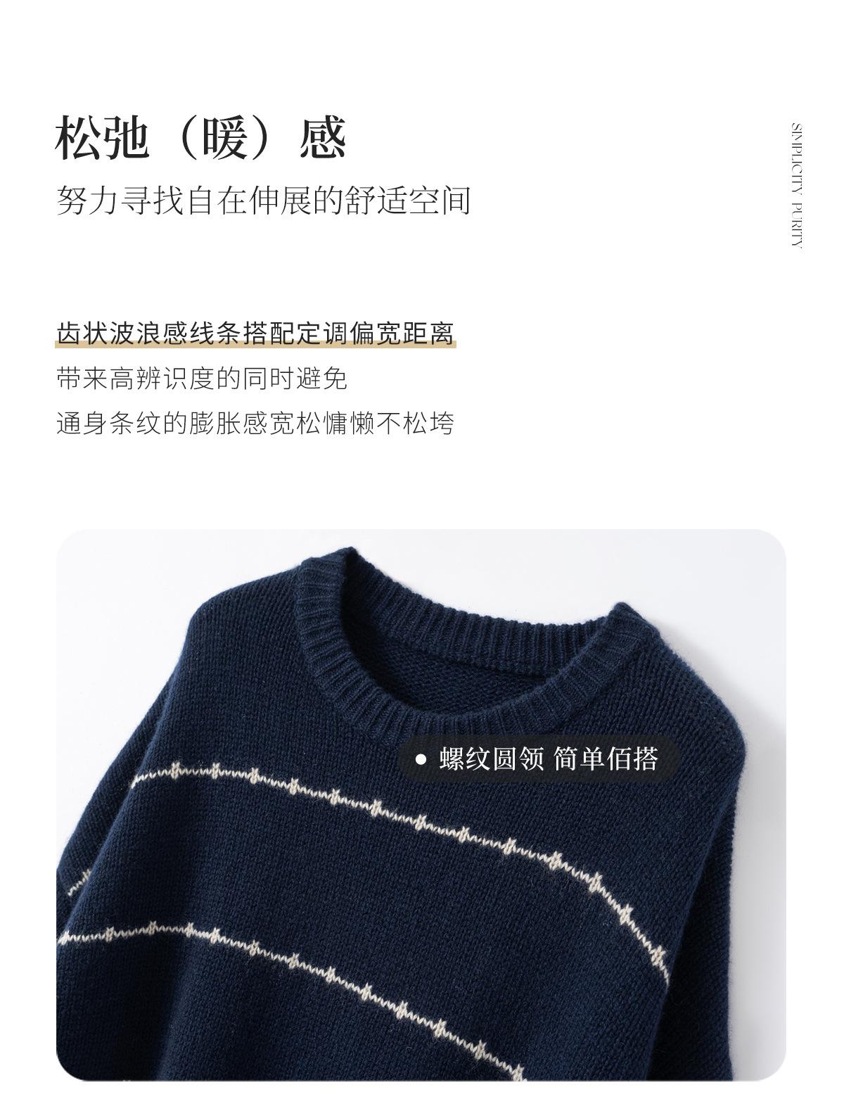 Suéter de Caxemira Feminino 100% Caxemira Pura Casual Versátil Solto Listrado Tricotado Gola Redonda Pulôver Suéter Espesso