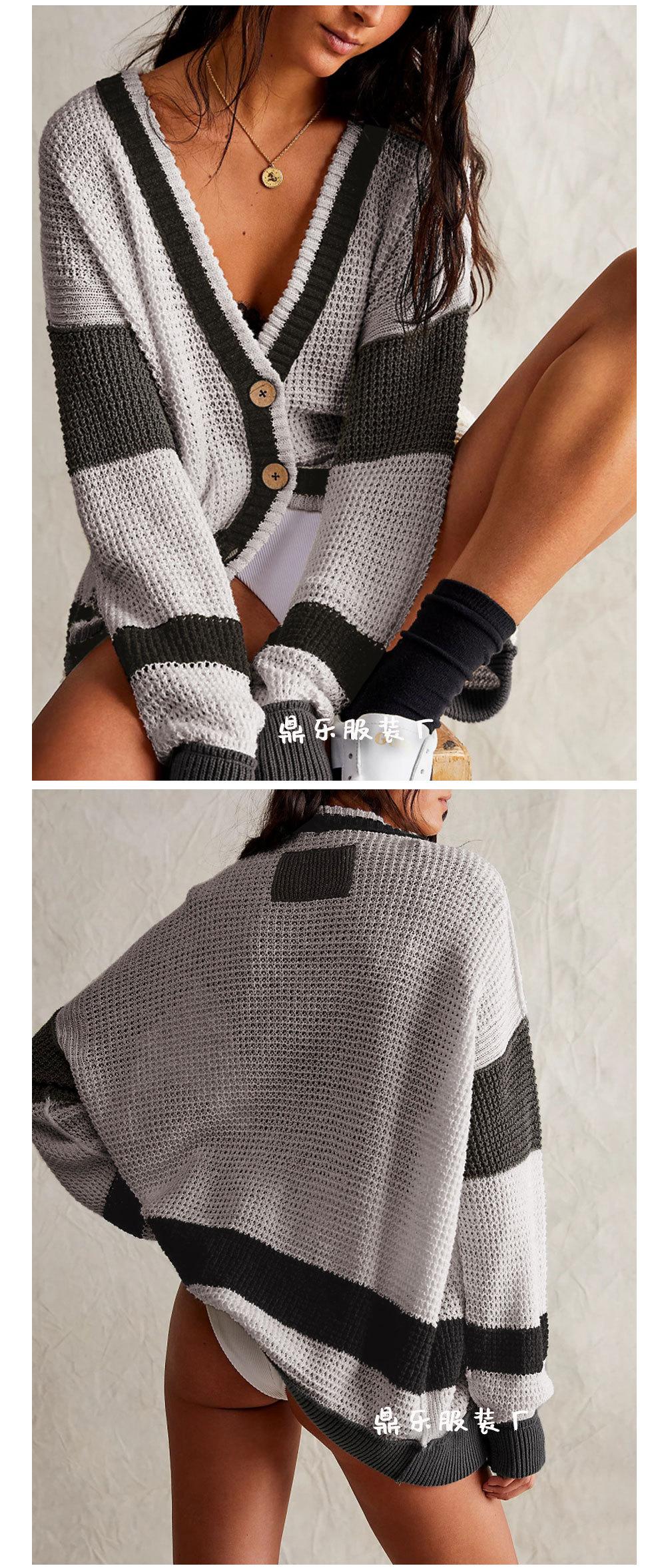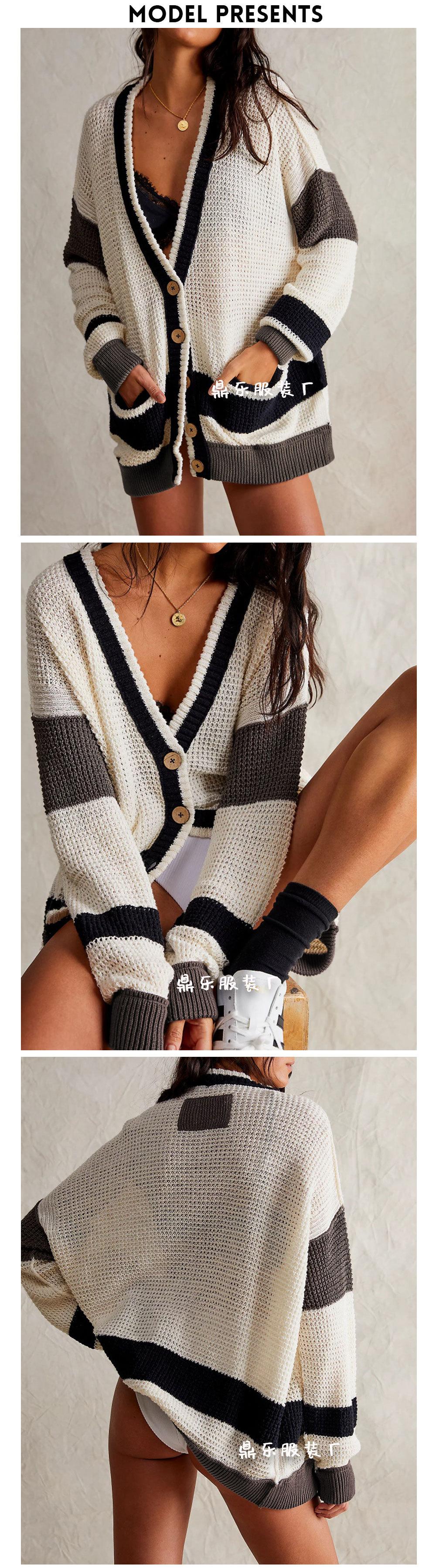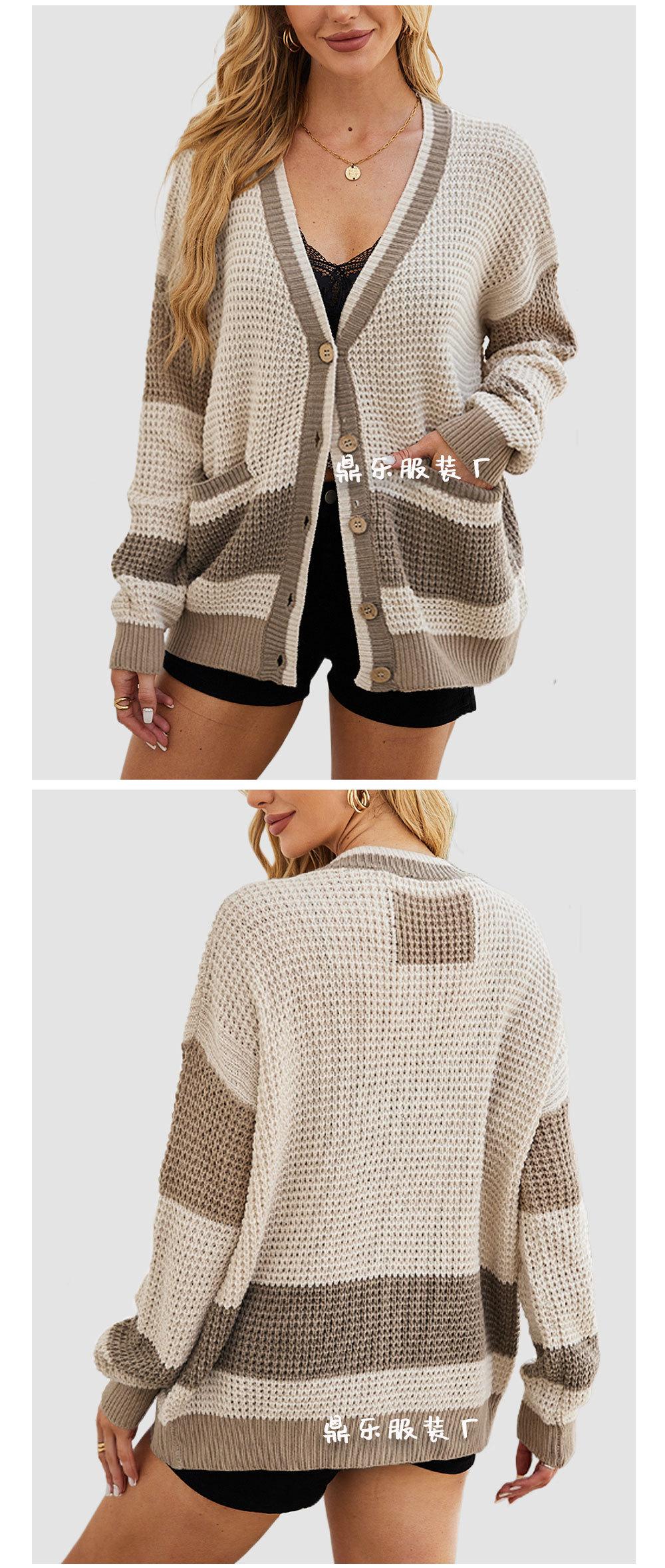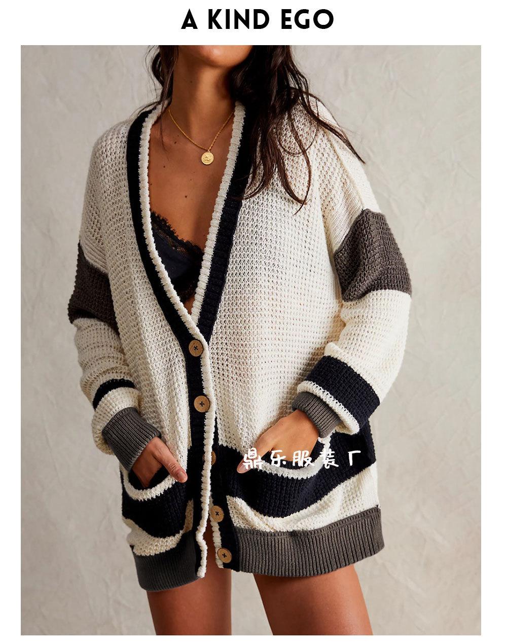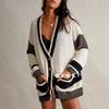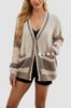 2025 Novo Outono e Inverno Transfronteiriço Amazon Mais Vendido Jaqueta Tricotada Tamanho Grande Bolso Bloco de Cores Cardigan Suéter Roupas Femininas