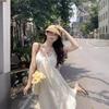 Vestido Suspender Decote Quadrado Desejo Puro para Mulheres 2025 Verão Novo Estilo com Amarração na Cintura Elástica Vestido Curto