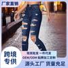 Amazon Vendas Diretas de Fábrica Calças Casuais Cintura Alta Alta Elasticidade Jeans Lavados Calças Rasgadas Femininas Transfronteiriças Novas