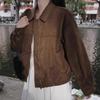 Coreano chique primavera e outono retro lapela design trespassado solto versátil jaqueta corta-vento curta de mangas compridas para mulheres