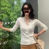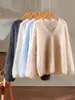 Item Quente~Suéter de Caxemira Sem Costura de Uma Peça Feminino Decote V Pulôver Outono/Inverno Camada Base Tricotada Solta Atacado