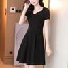 Vestido Preto Decote V Longo Feminino Verão Super Bonito Cintura Ajustada Vestido Longo Verão Absolutamente Lindo Vestidinho Preto Estilo Hepburn