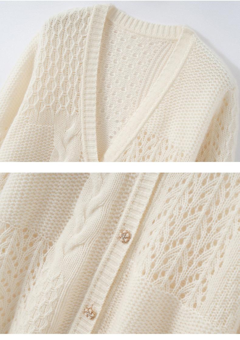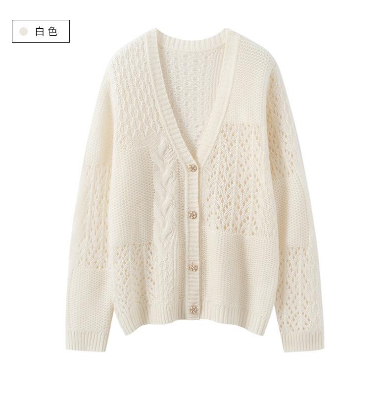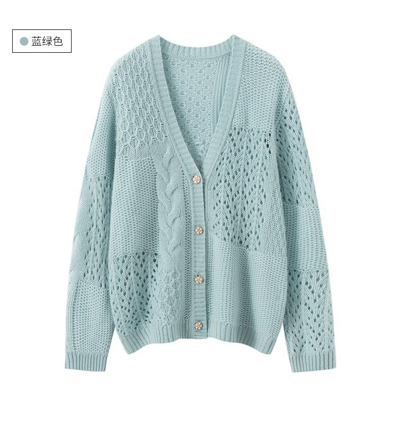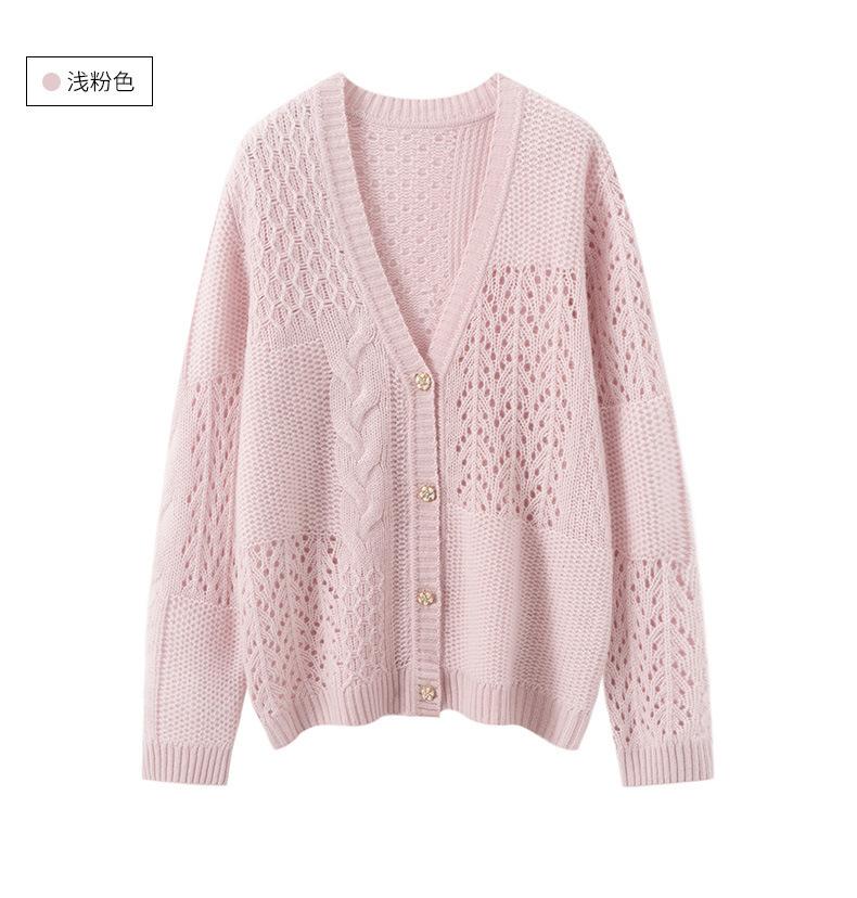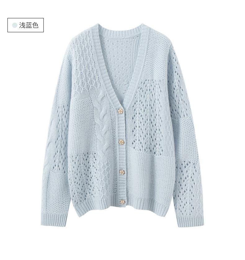 Cardigã Vazado Decote V Novo Outono/Inverno Feminino Caxemira Solto Casual Sobretudo Emagrecedor Top Suéter Tricotado