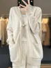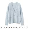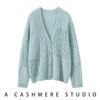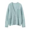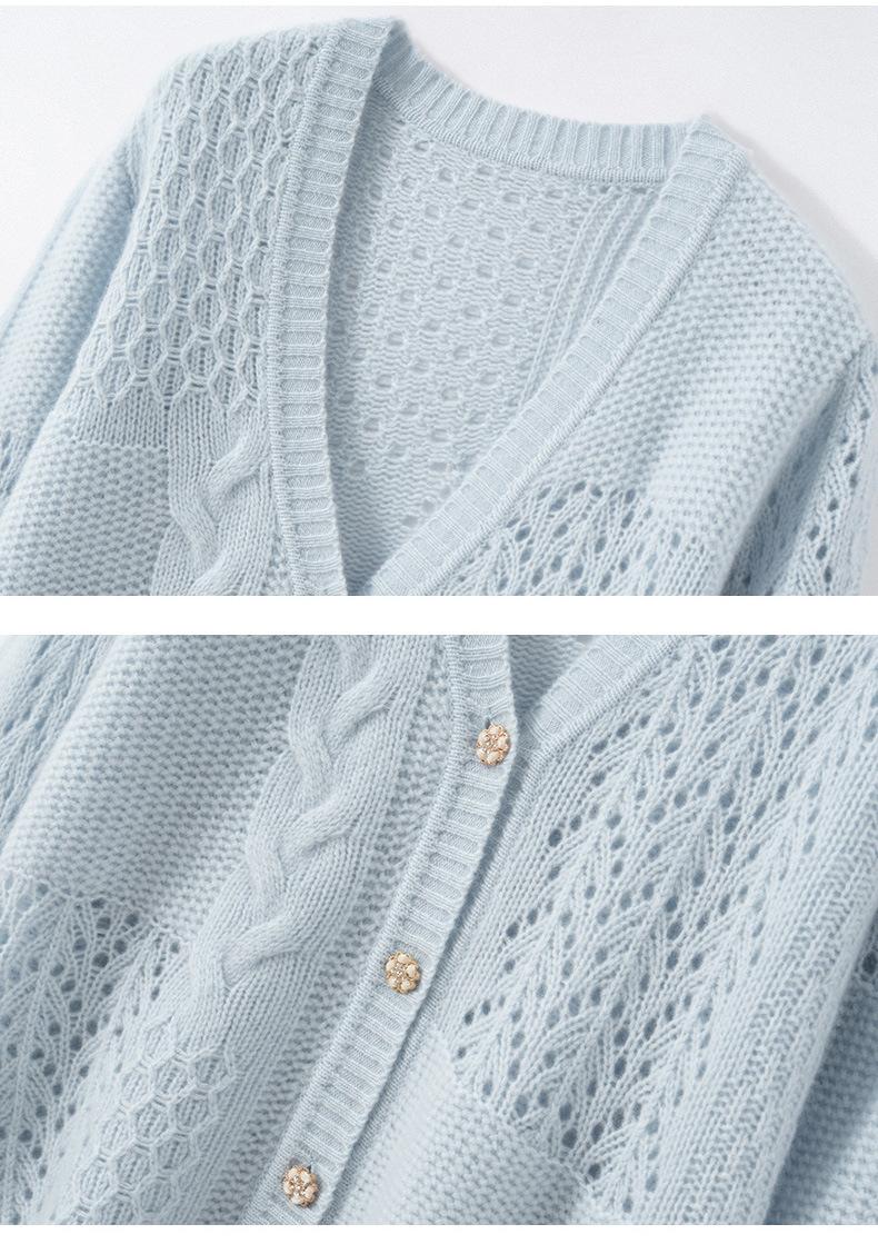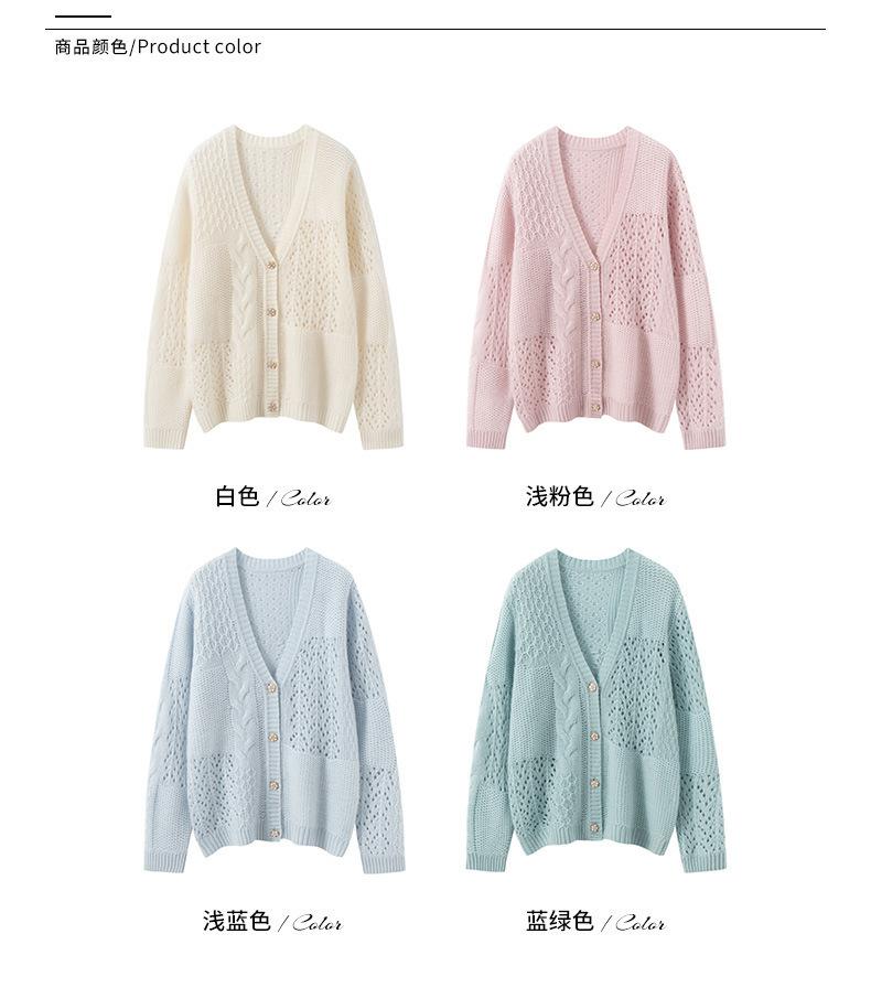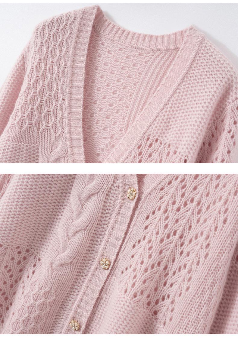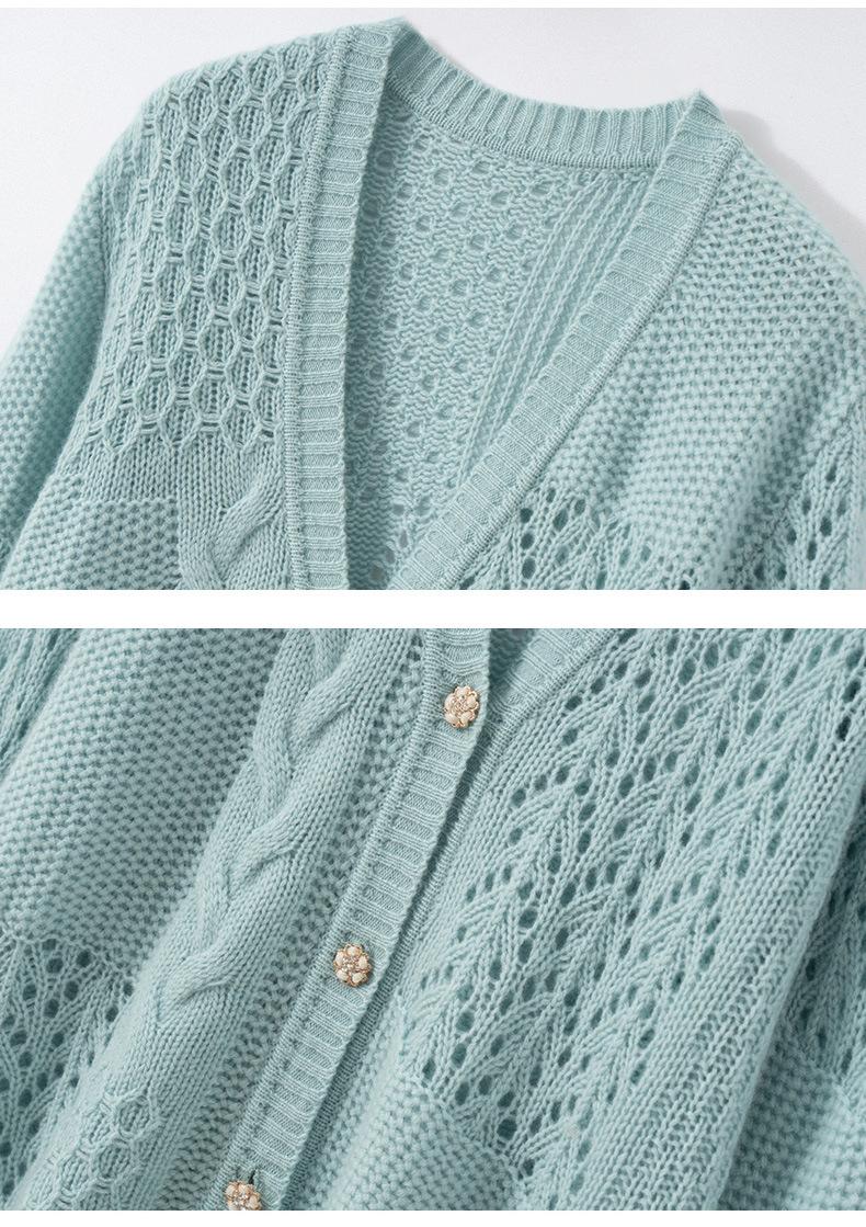 Cardigã Vazado Decote V Novo Outono/Inverno Feminino Caxemira Solto Casual Sobretudo Emagrecedor Top Suéter Tricotado