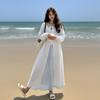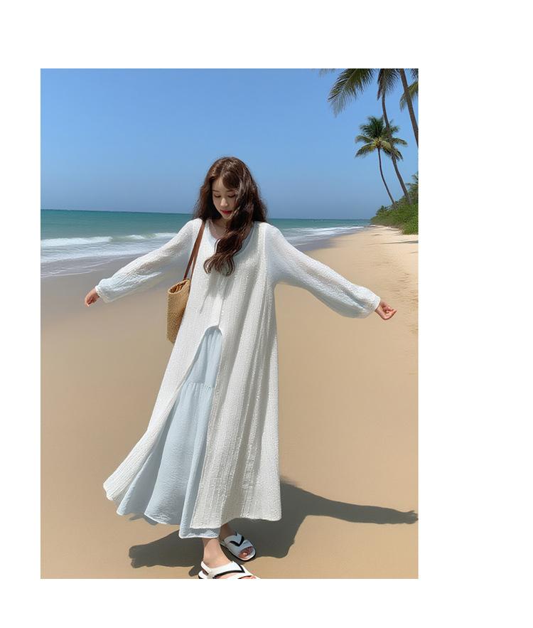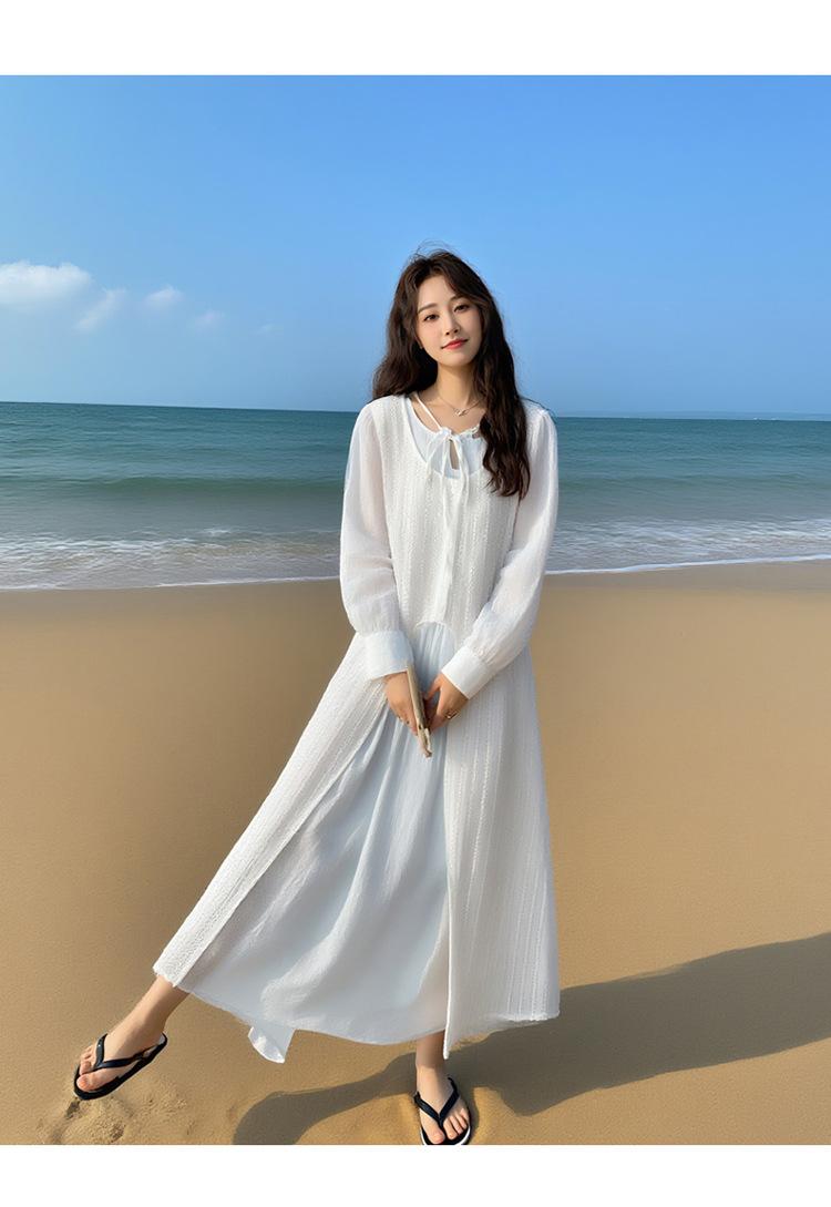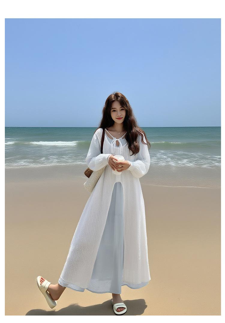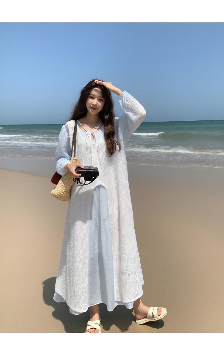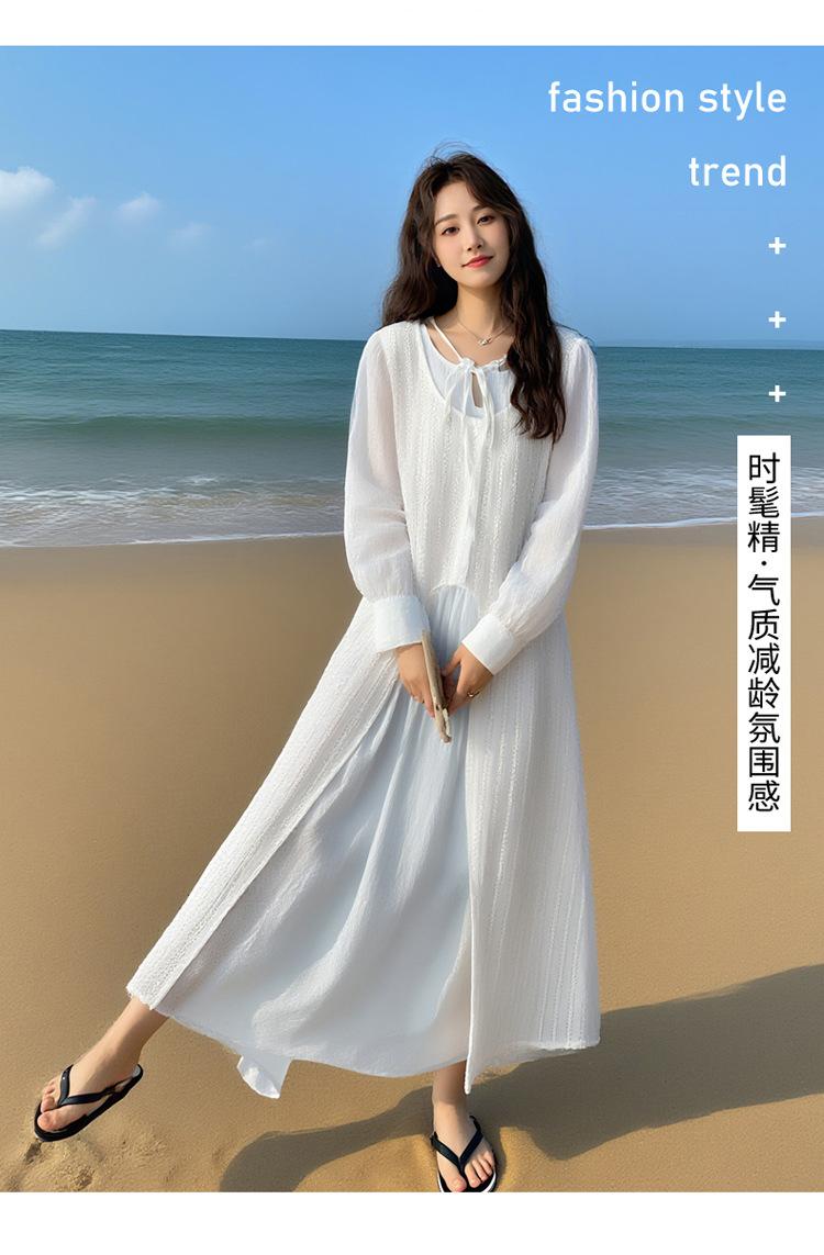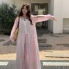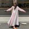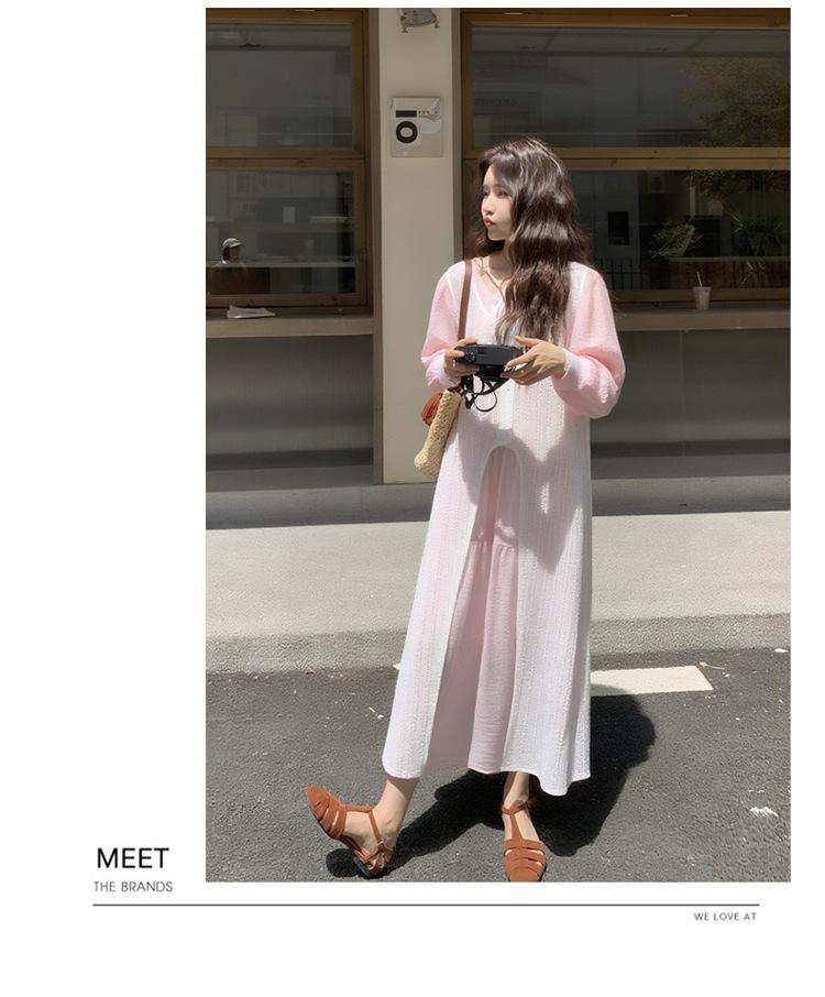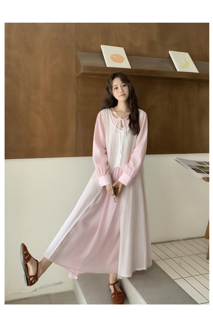 Conjunto de duas peças moderno primavera e outono 2025 novo estilo que reduz a idade estilo preguiçoso cardigã vestido longo sobreposto conjunto de duas peças moderno