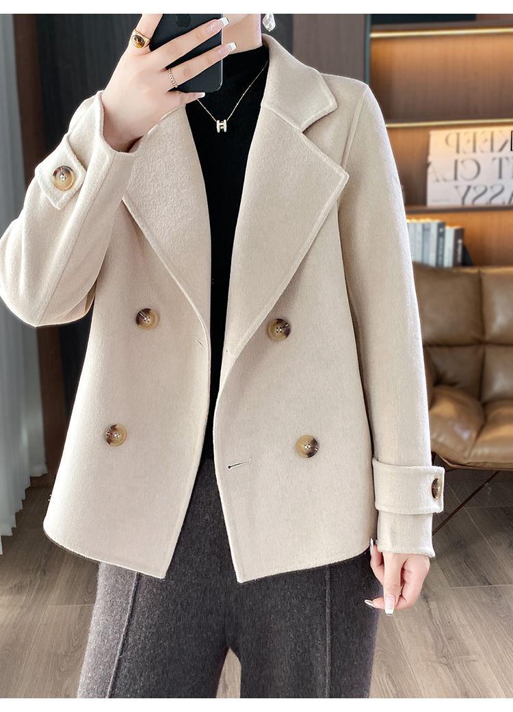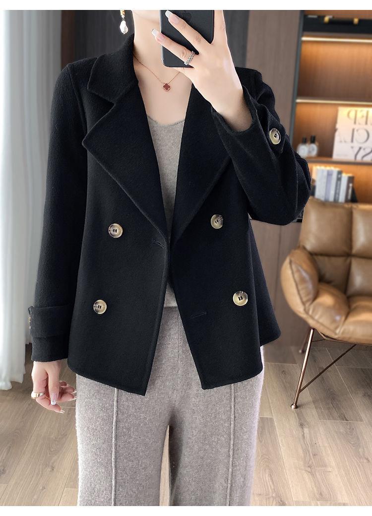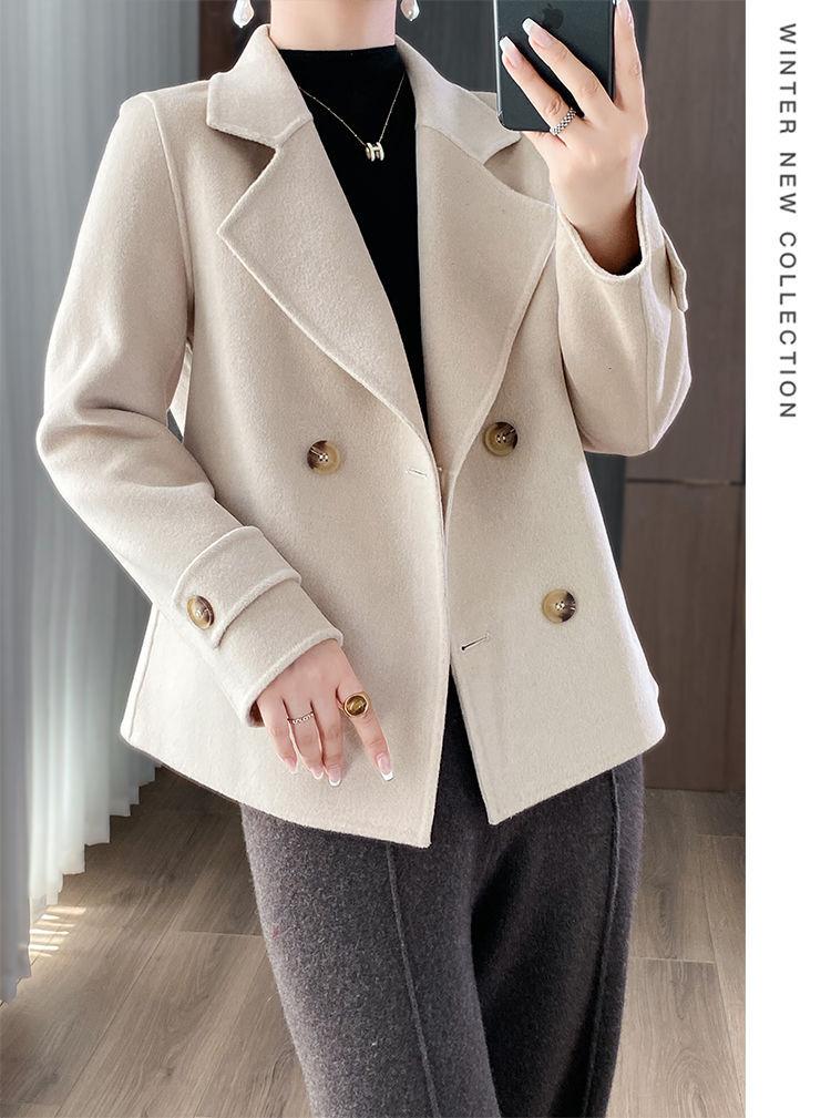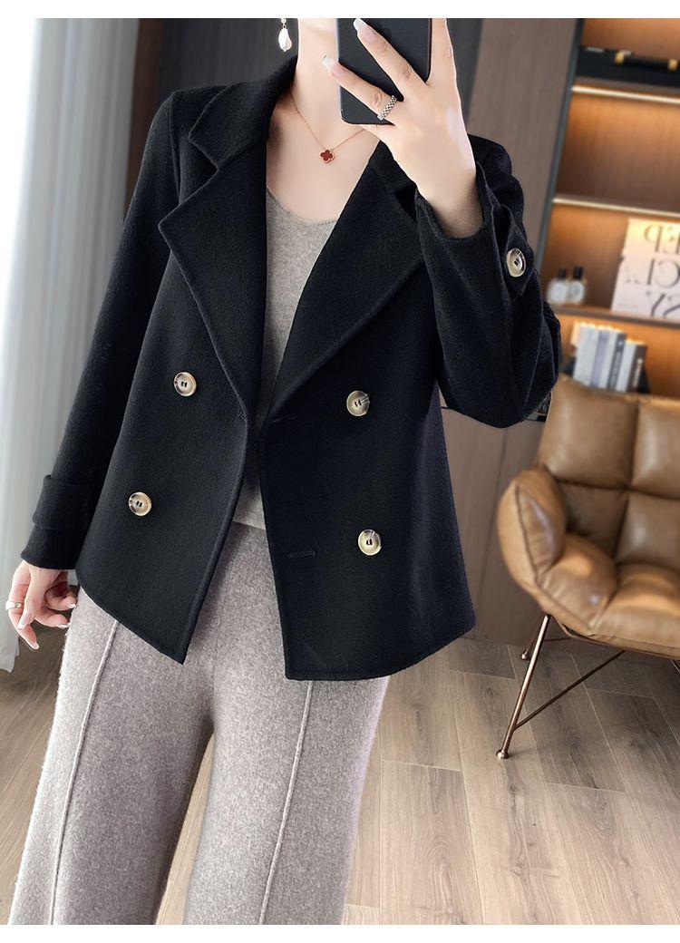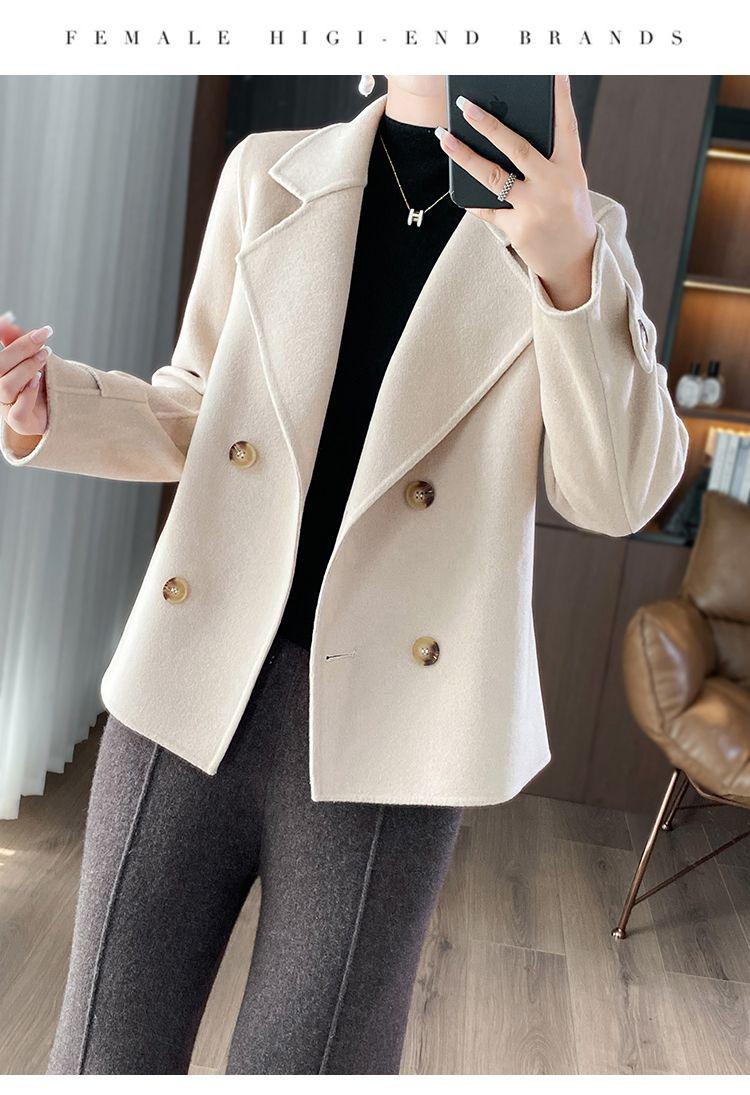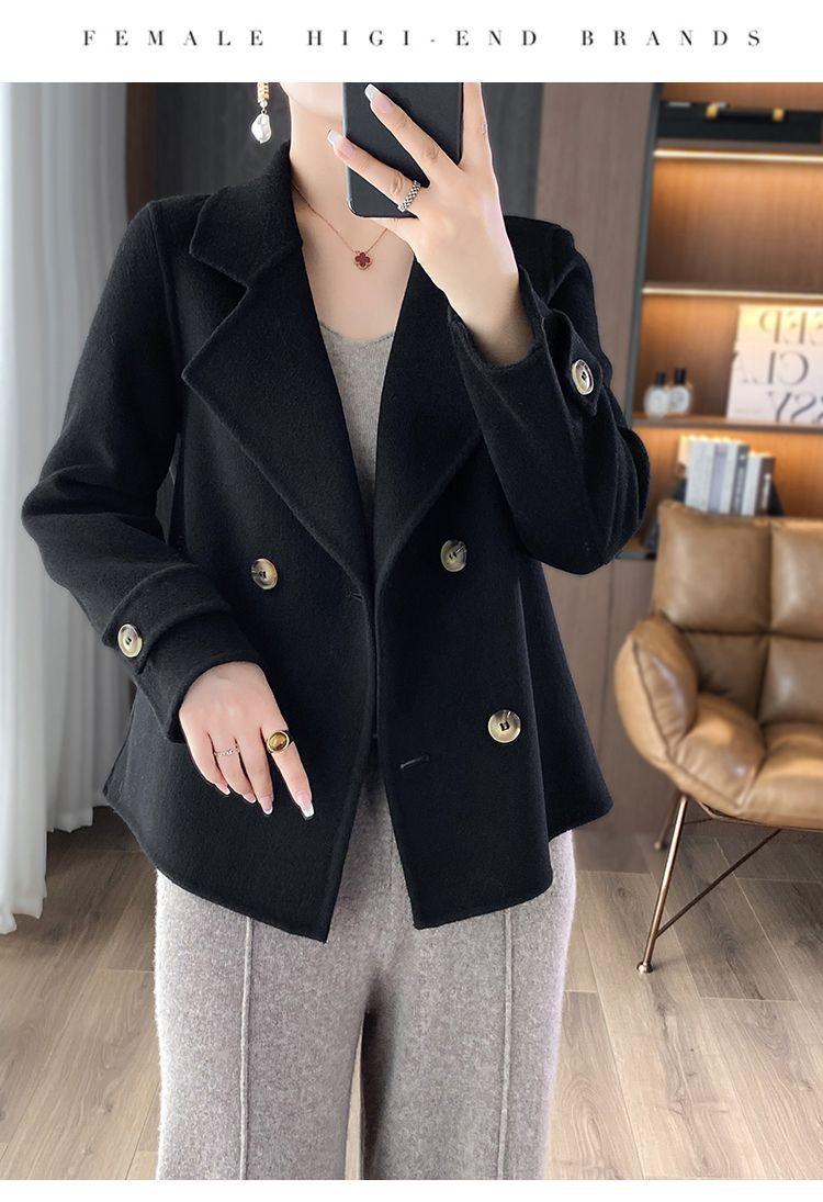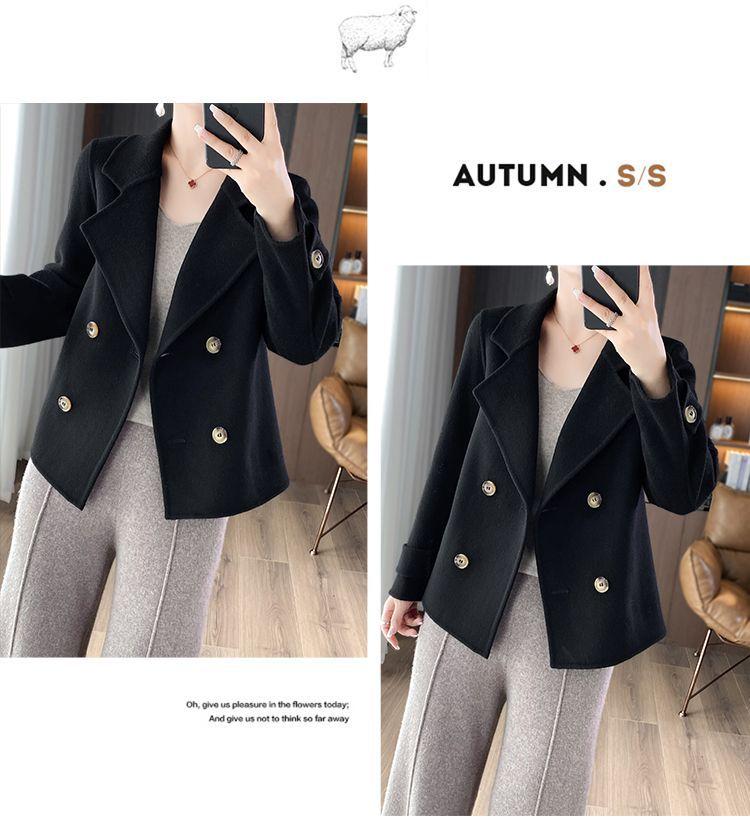 Casaco de Lã Dupla Face Estilo Coco Plus Size Feminino Curto Outono Inverno Pequeno Gola de Terno Lã Sobretudo Roupa Exterior