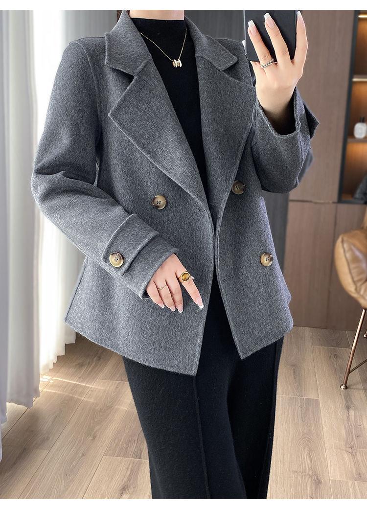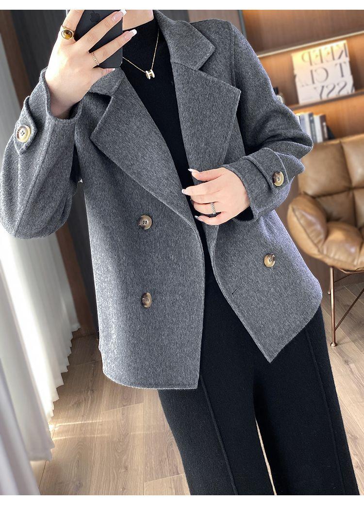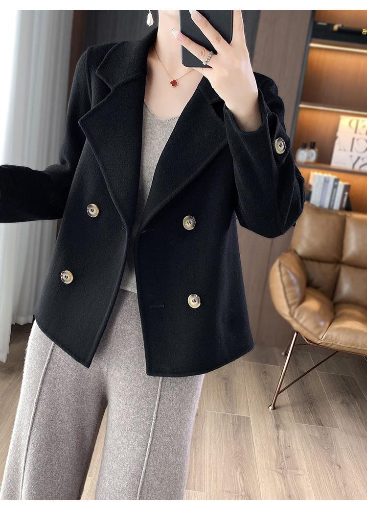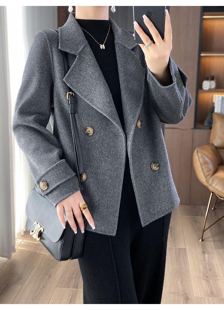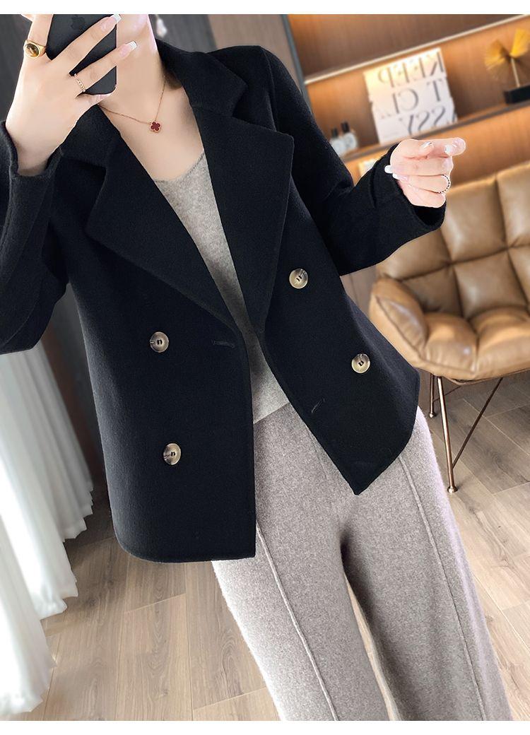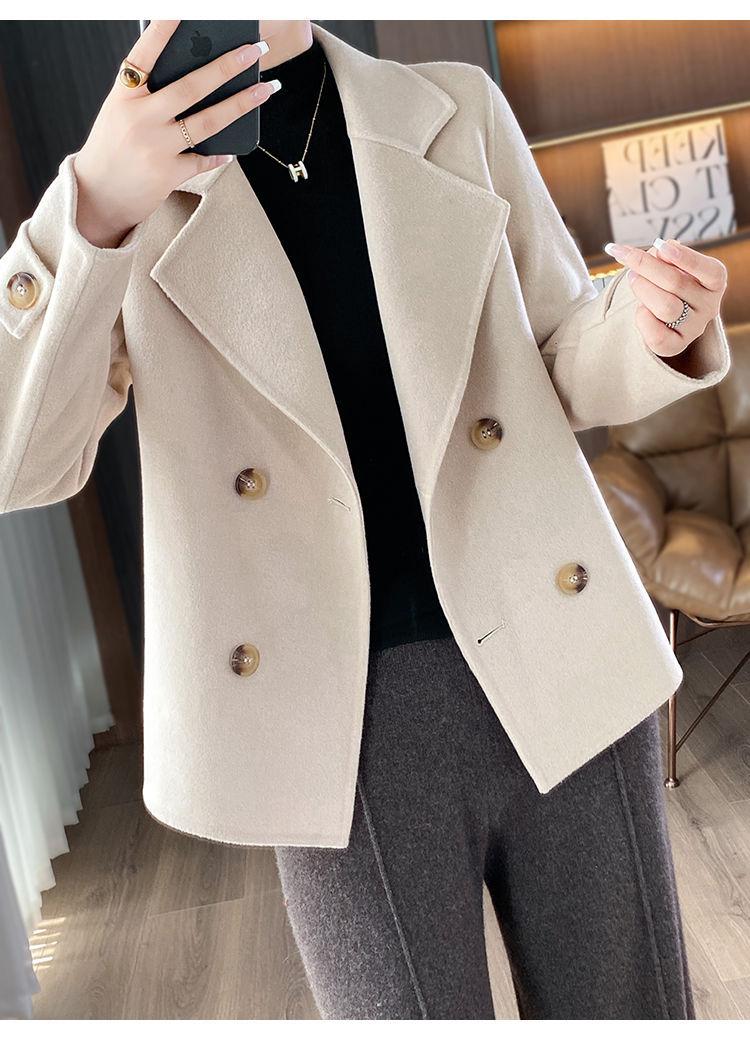 Casaco de Lã Dupla Face Estilo Coco Plus Size Feminino Curto Outono Inverno Pequeno Gola de Terno Lã Sobretudo Roupa Exterior