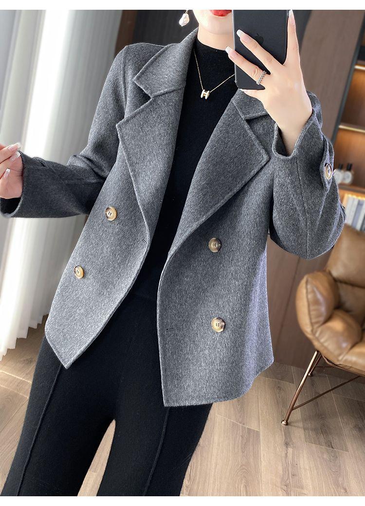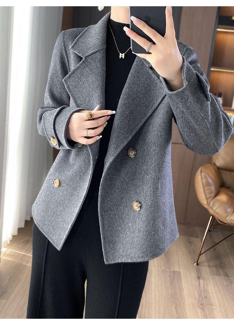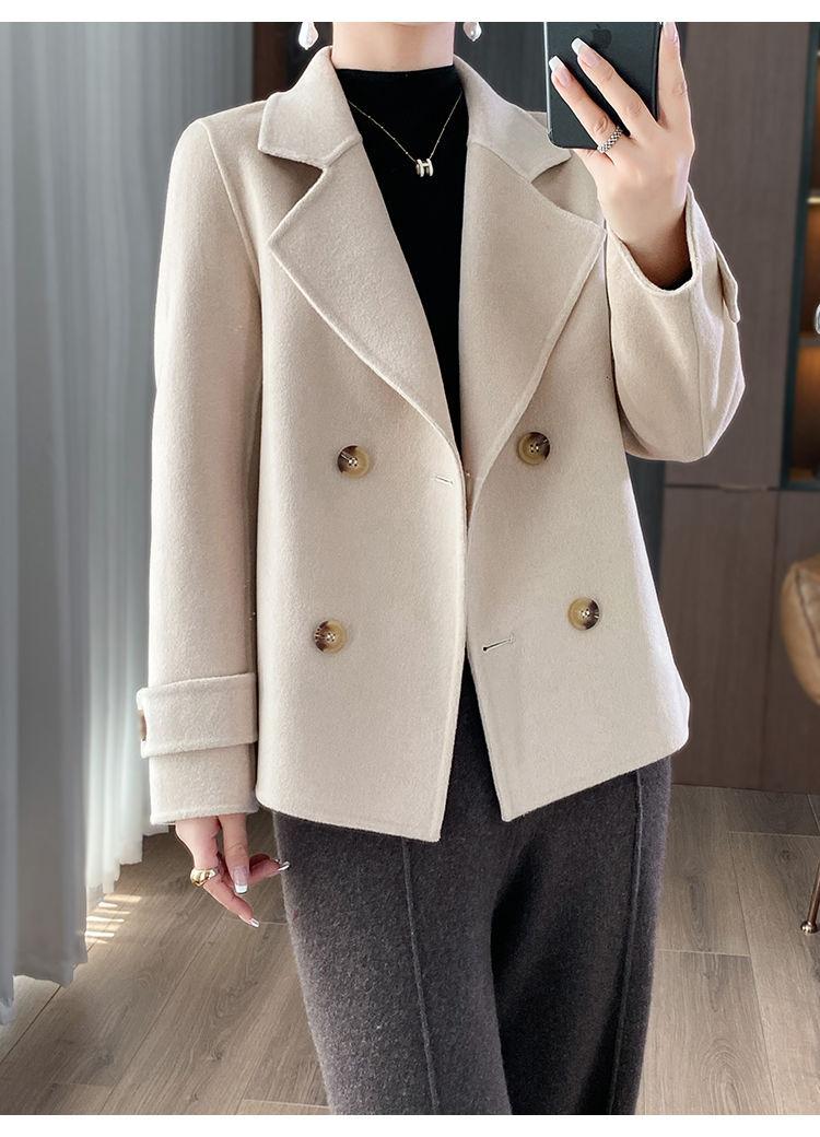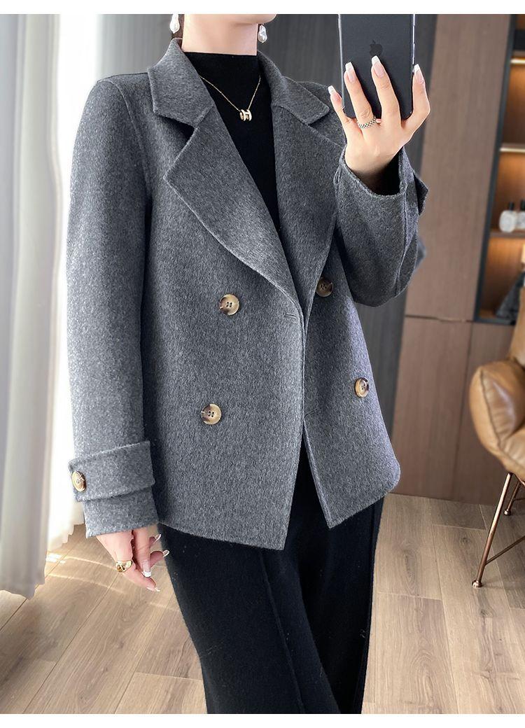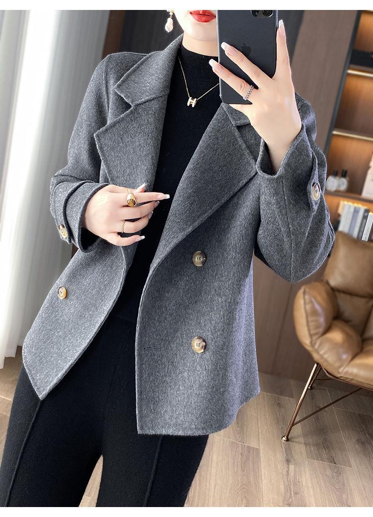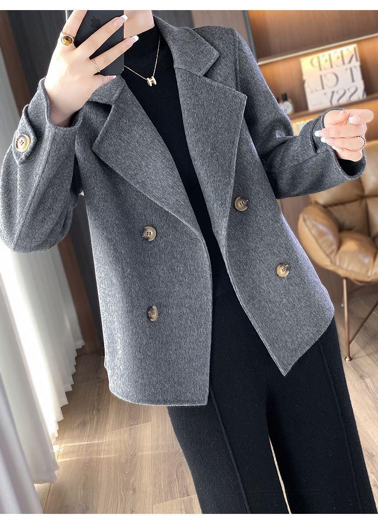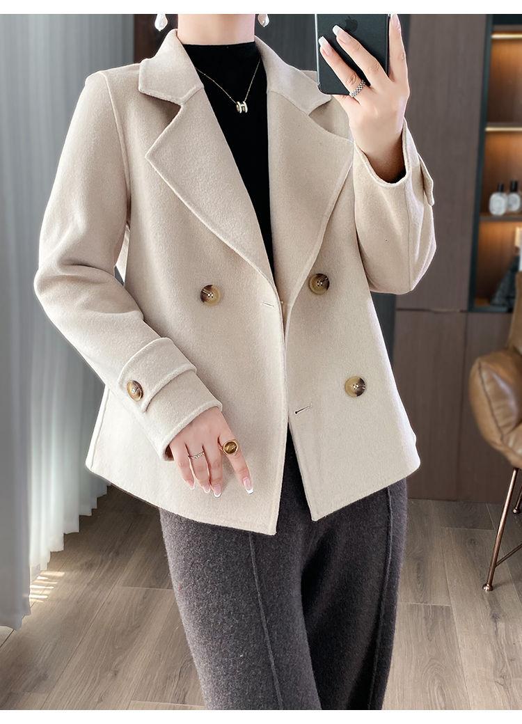 Casaco de Lã Dupla Face Estilo Coco Plus Size Feminino Curto Outono Inverno Pequeno Gola de Terno Lã Sobretudo Roupa Exterior