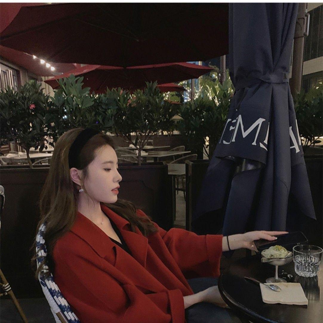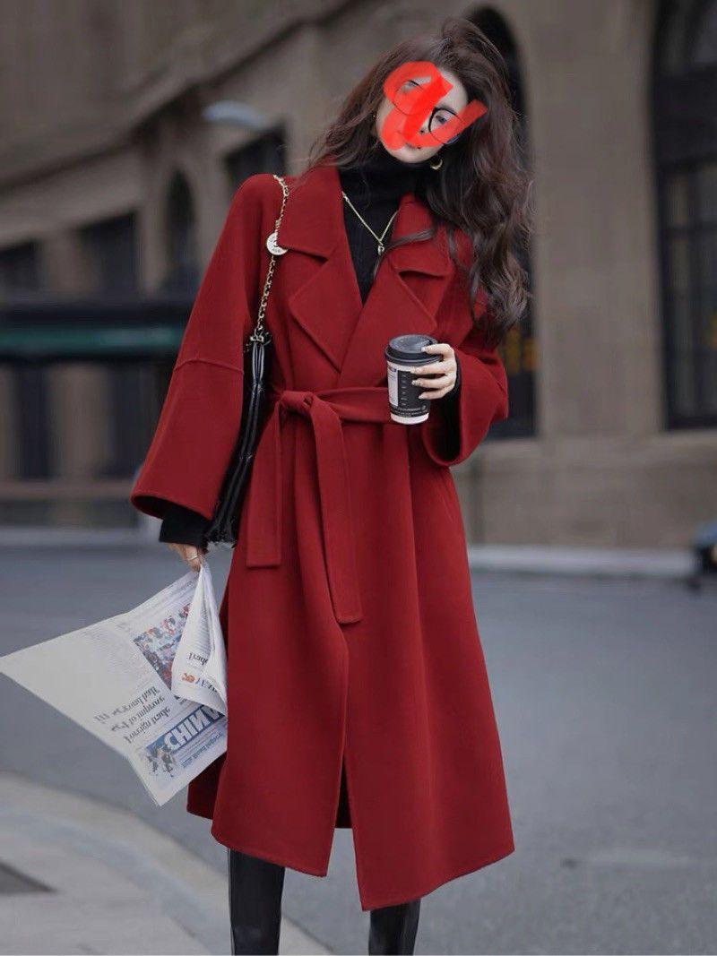 Casaco de Lã Feminino 2025 Outono/Inverno Novo High-End Estilo Coreano Petite Estilo Hepburn Moda Temperamento Sobretudo de Lã