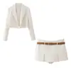 2025 Estilo Europeu e Americano Transfronteiriço Nova Moda Casual Temperamento Cor Sólida Lapela Manga Longa Jaqueta de Terno Conjunto Saia Curta Feminino