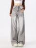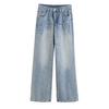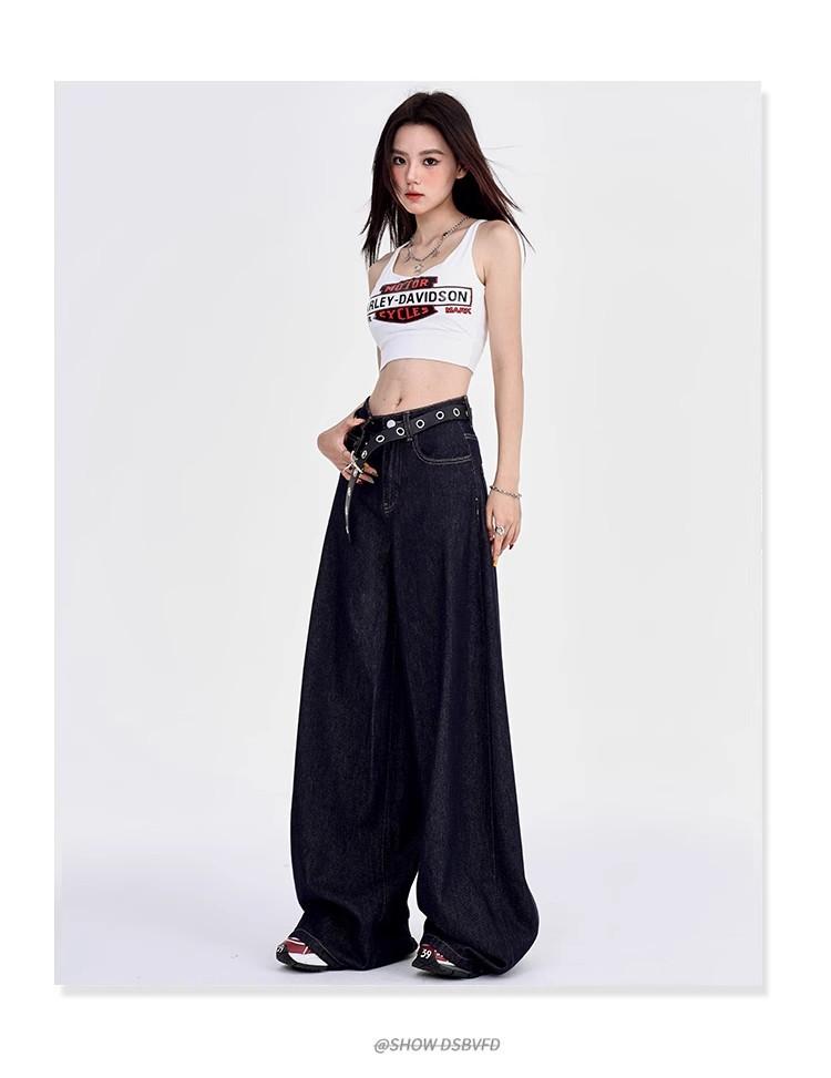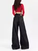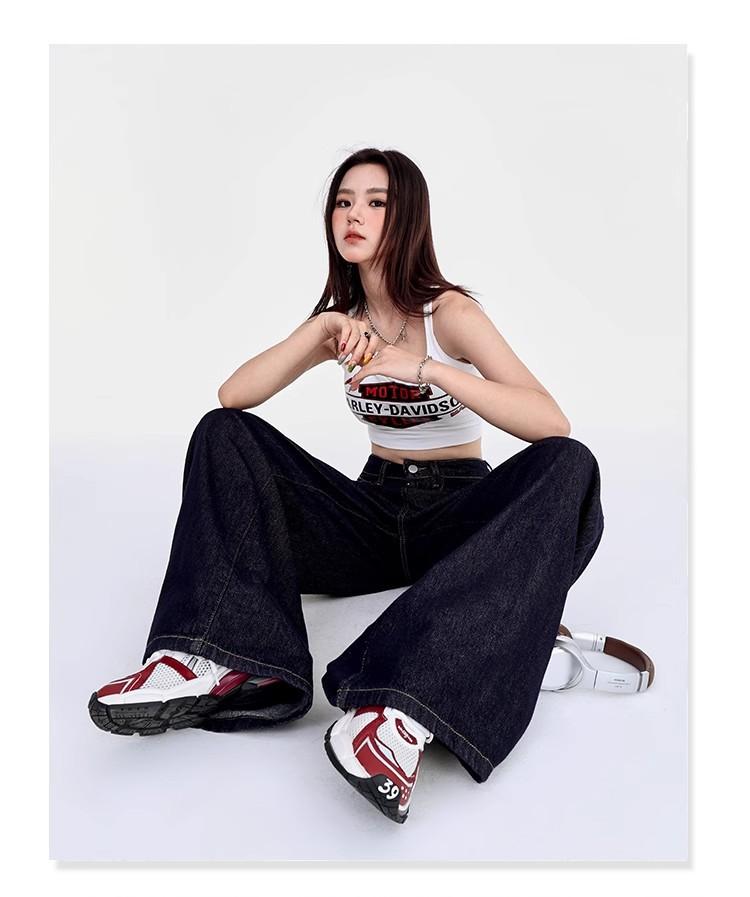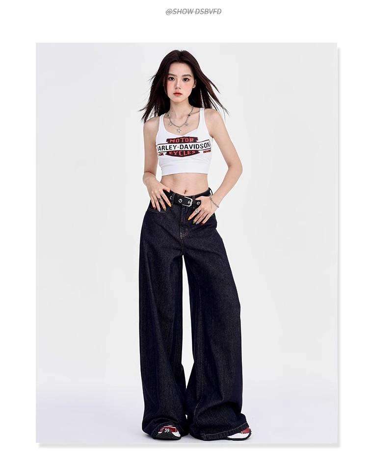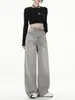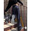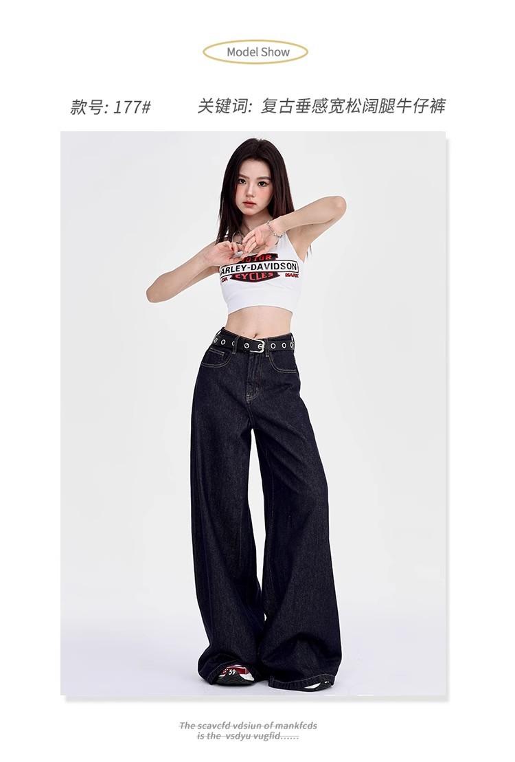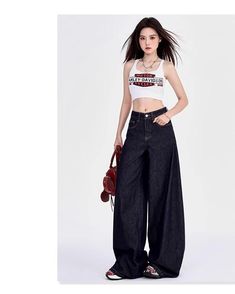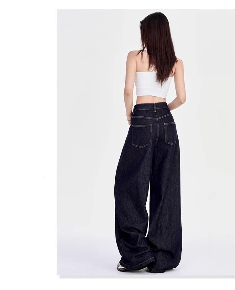 Jeans Americanos Azul Escuro Largos de Perna Larga Soltos para Mulheres 2024 Outono Novo Estilo Casual Preguiçoso Calças Retas Comprimento Chão