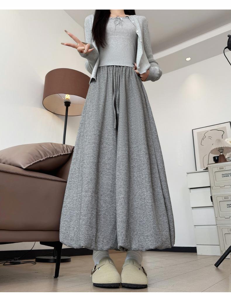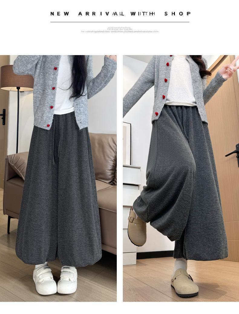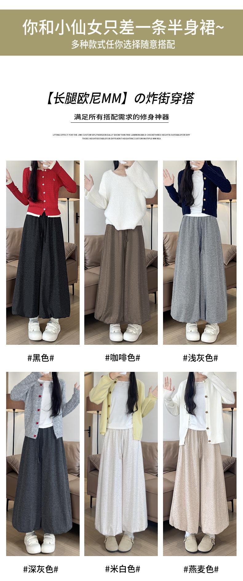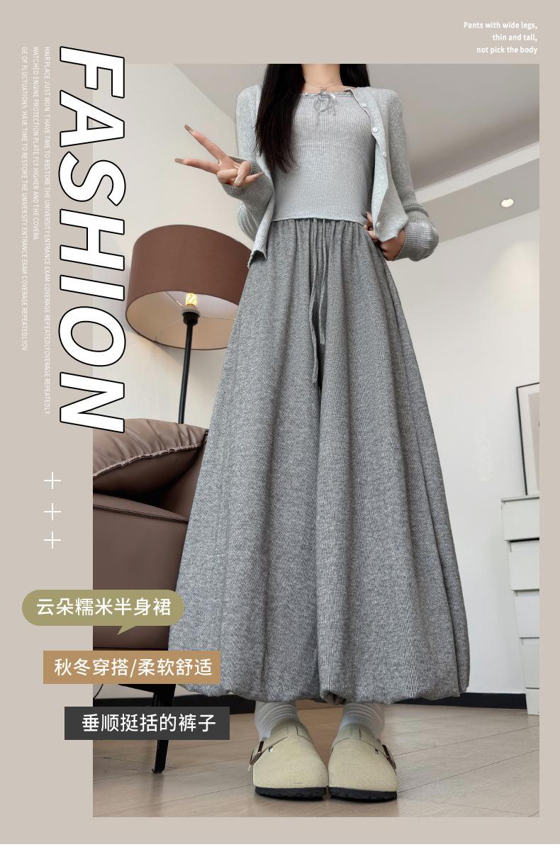 Calças saia cinza de botão feminino 2025 novo outono cintura alta drapeado sensação preguiçosa relaxada petite casual pernas largas