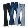 Primavera Outono e Inverno Novo Jeans Azul de Cintura Baixa Ajuste Slim Micro-flare Calças Duradouras com Borda de Pelo para Mulheres Altas que Parecem Mais Magras