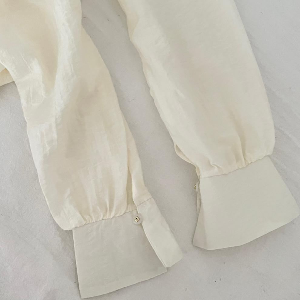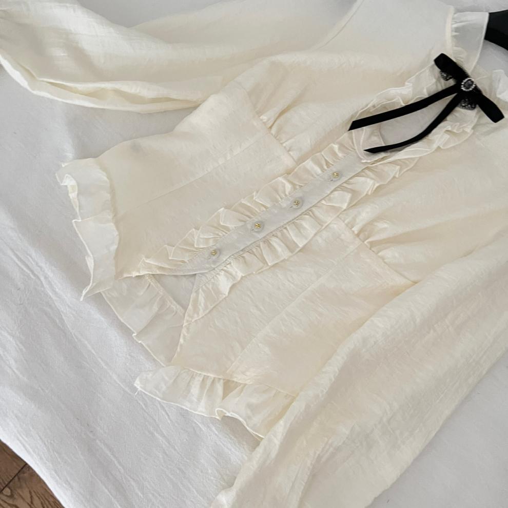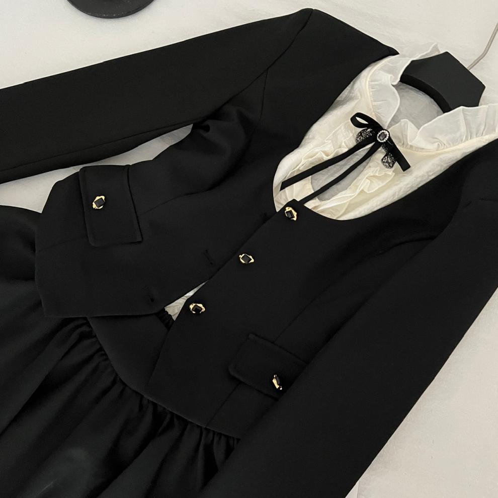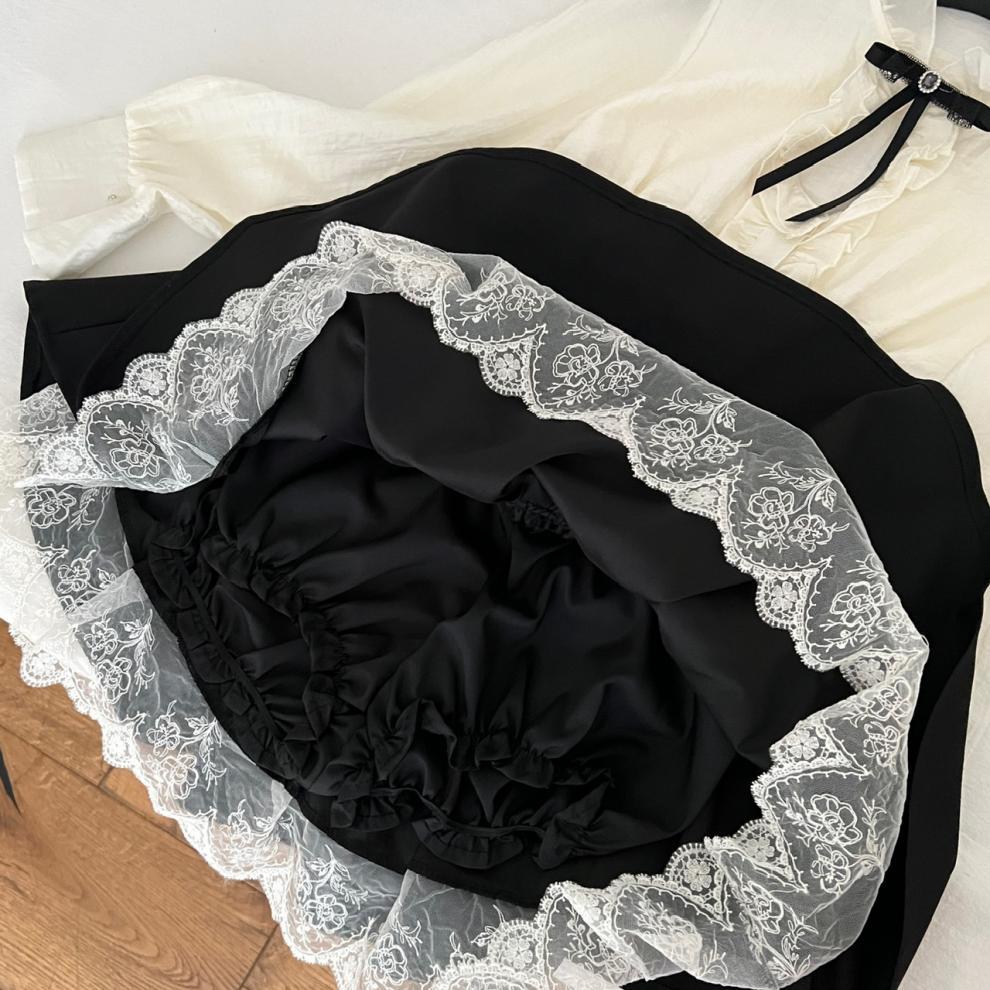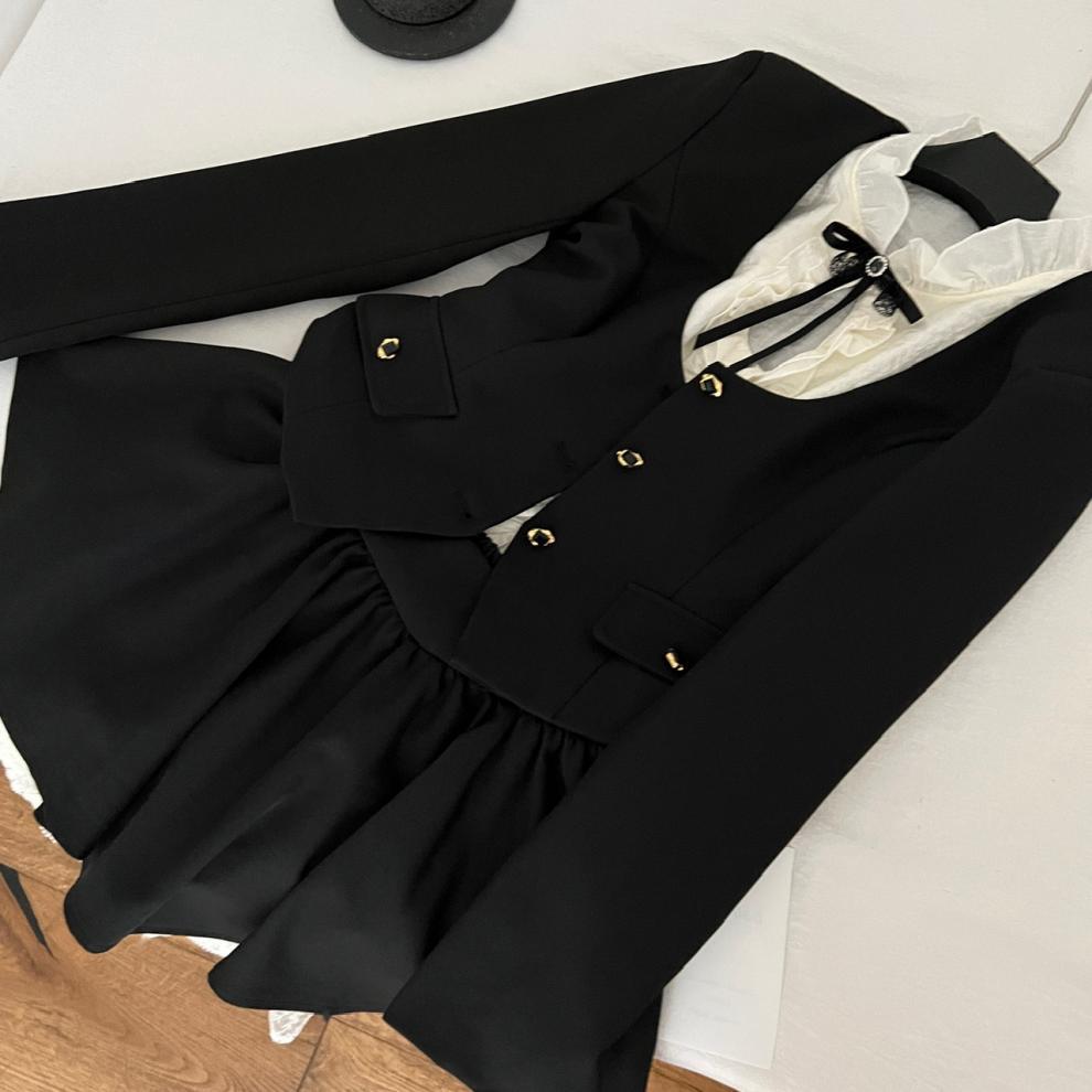 Conjunto de terno leve estilo profissional senso de design camisa com babados saia bufante de cintura alta conjunto de três peças