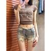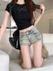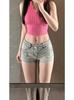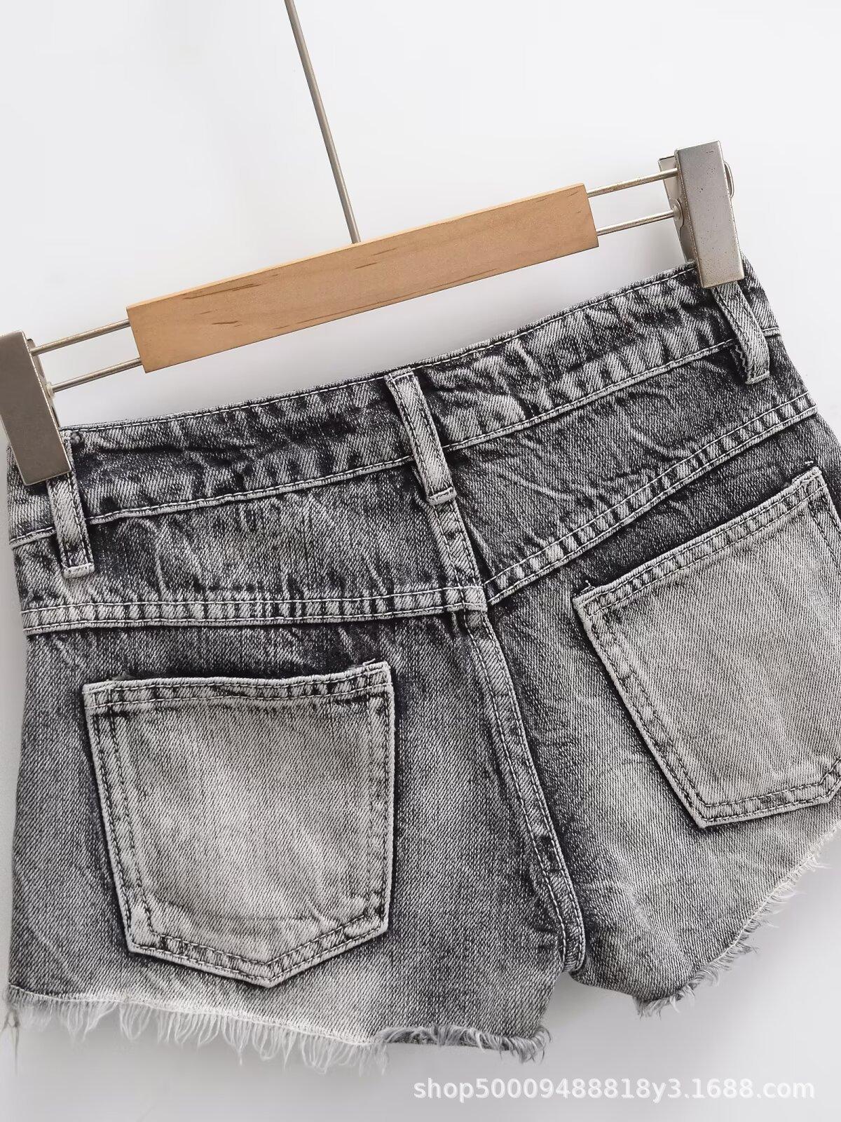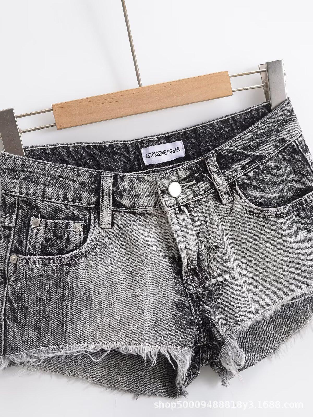 Shorts Jeans Femininos Lavados de Cintura Baixa, Estilo Americano Spicy Girl, para Verão, Vintage Versátil, Modeladores, Desfiados, Barra Desfiada, Hot Pants
