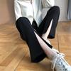 Calças casuais estilo coreano bordadas com letras, cintura alta, pernas largas, femininas, soltas, caimento reto, cor sólida, calças de perna reta femininas, calças de moletom com cordão