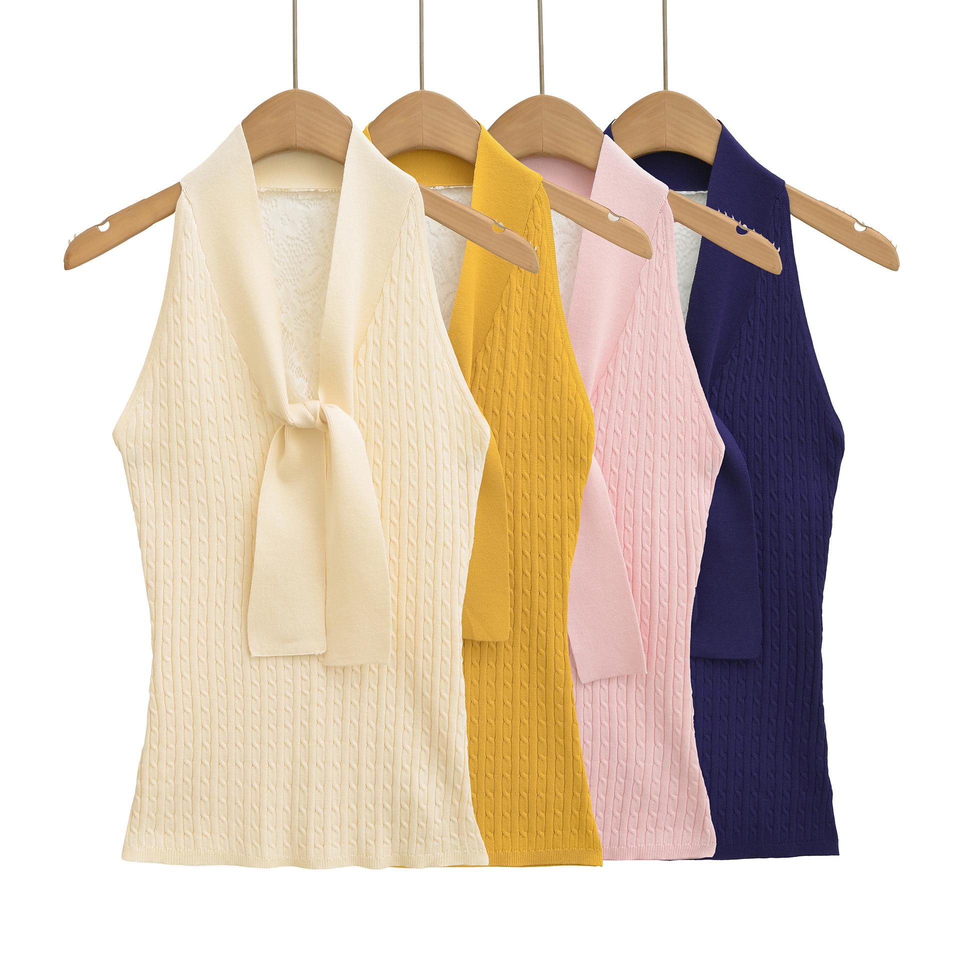 602-Estilo europeu e americano sexy emagrecedor regata de tricô sem mangas feminino 2025 novo menina quente versátil colete halter