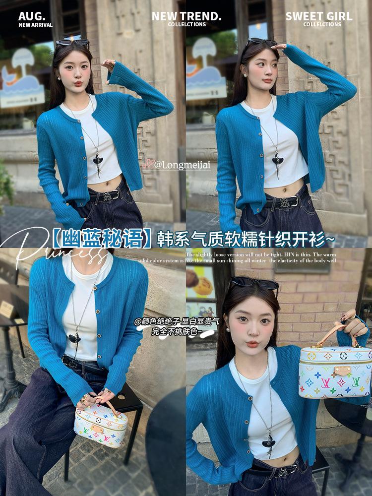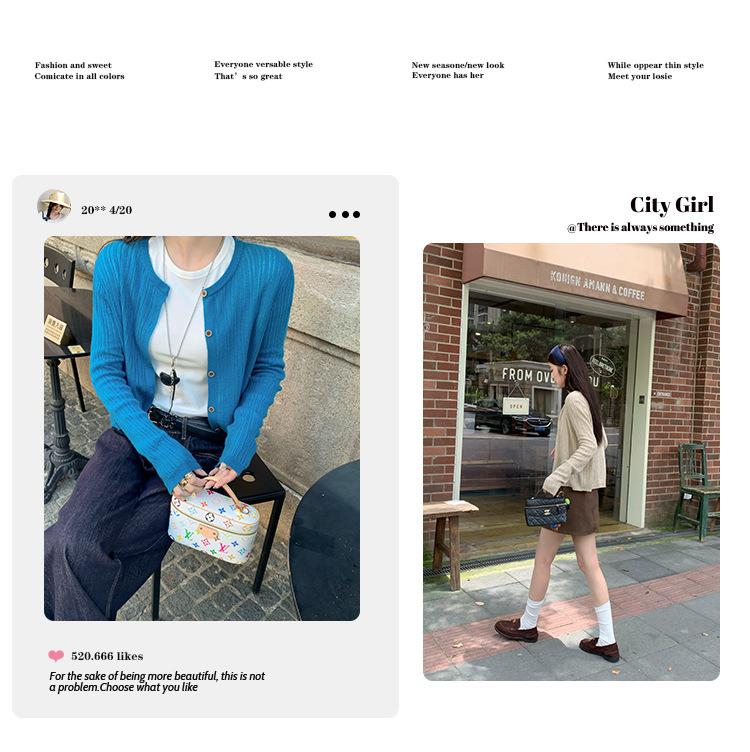 Casaco cardigan de malha gola redonda feminino 2025 outono roupa feminina novo estilo coreano outerwear de alta qualidade top de malha