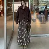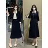 Outono 2025 Novo Tamanho Grande Estilo Étnico Vestido Emagrecedor com Bainha de Franjas Gola Redonda Conjunto de Duas Peças