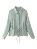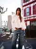 Novos Produtos Transfronteiriços 2024 Estilo Europeu e Americano Camisa Feminina de Comércio Exterior Atacado ZRA em estoque Manga Longa Nó Metálico