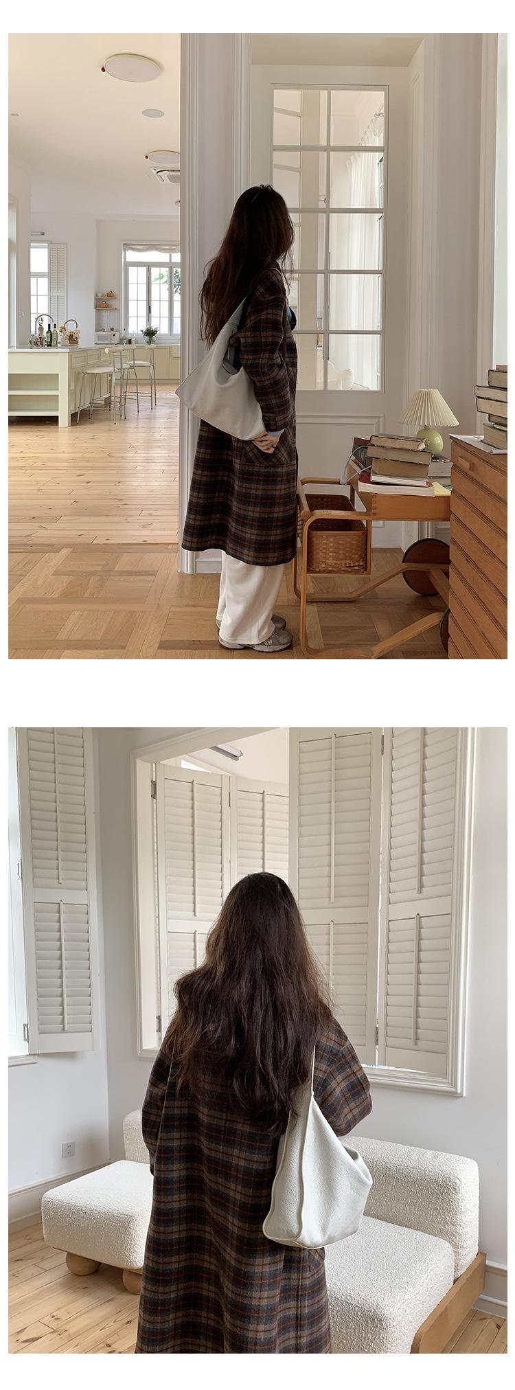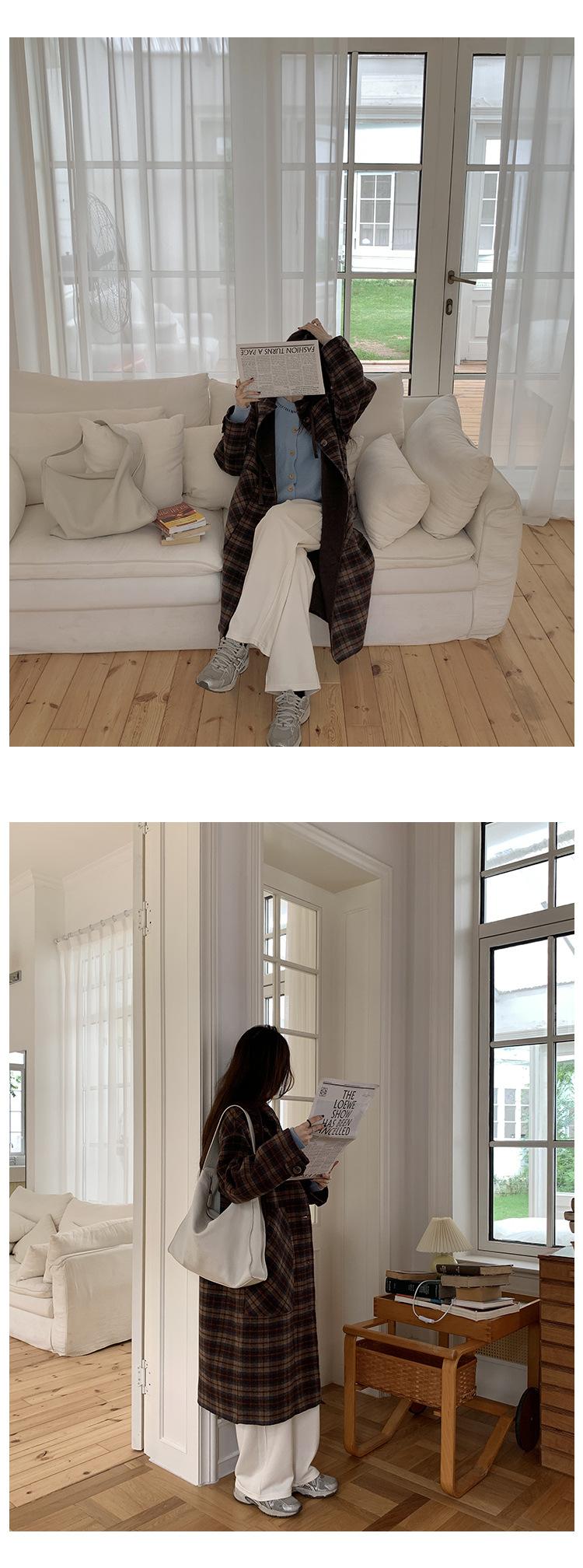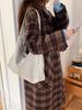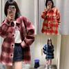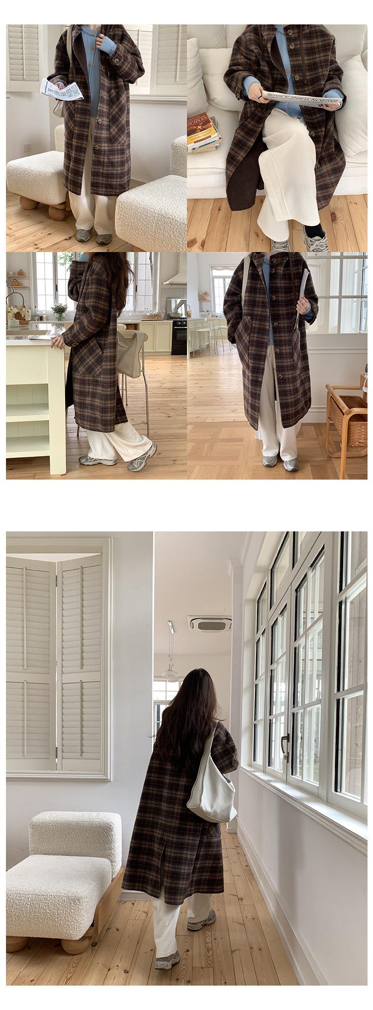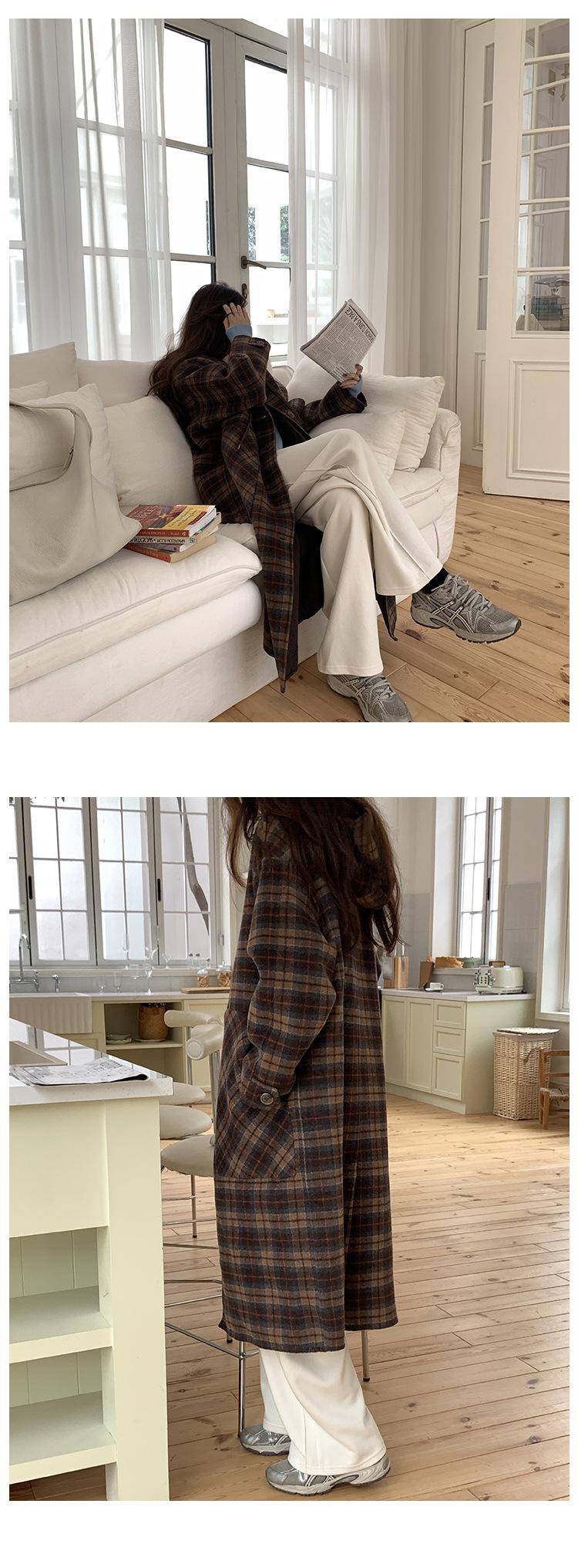 Casaco Xadrez de Lã 70% Dupla Face Feminino Inverno Novo Coreano Retrô Cáqui Solto com Capuz Casaco de Lã