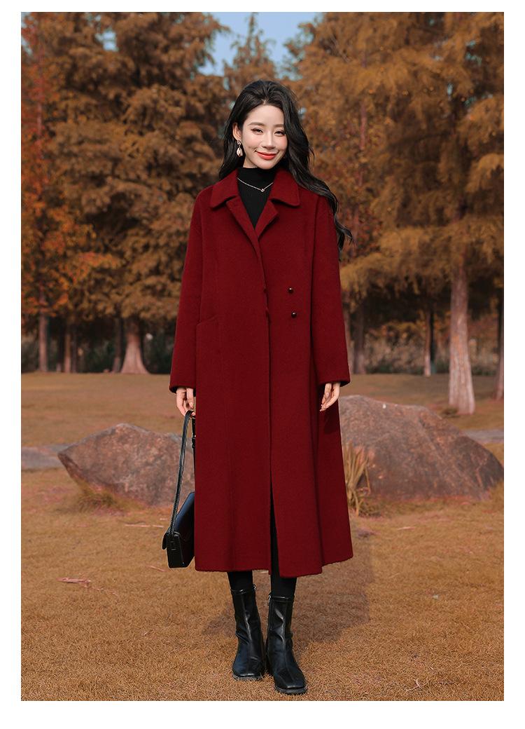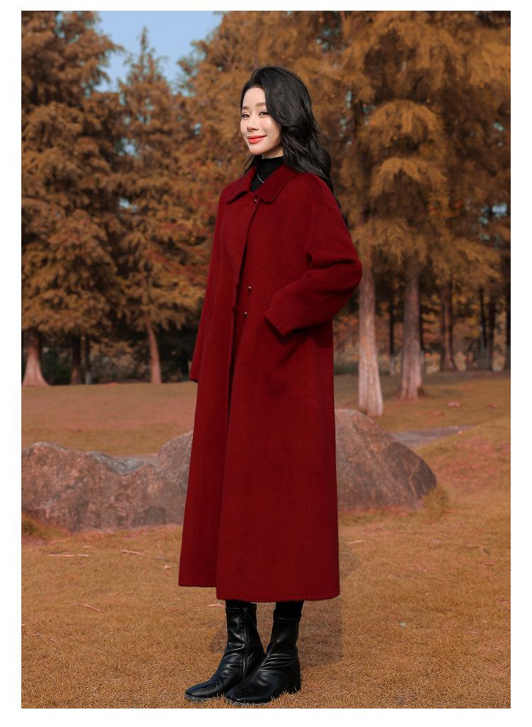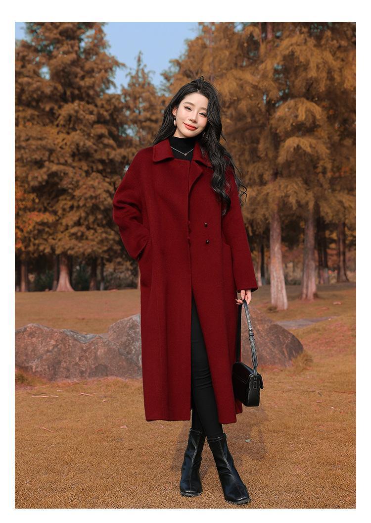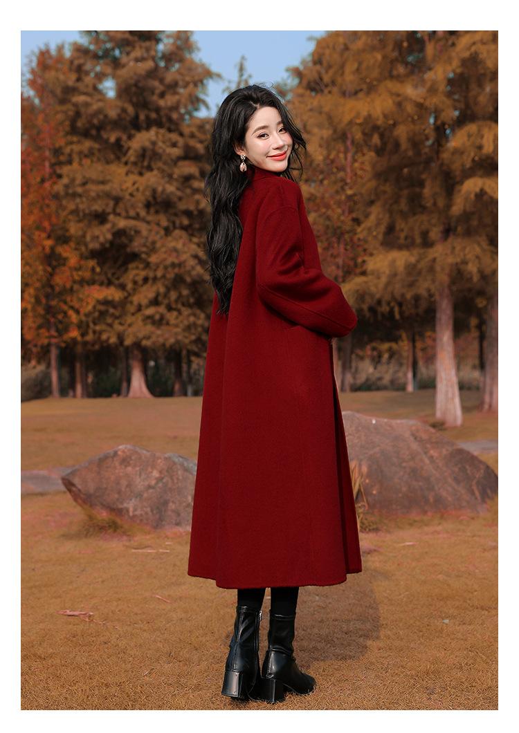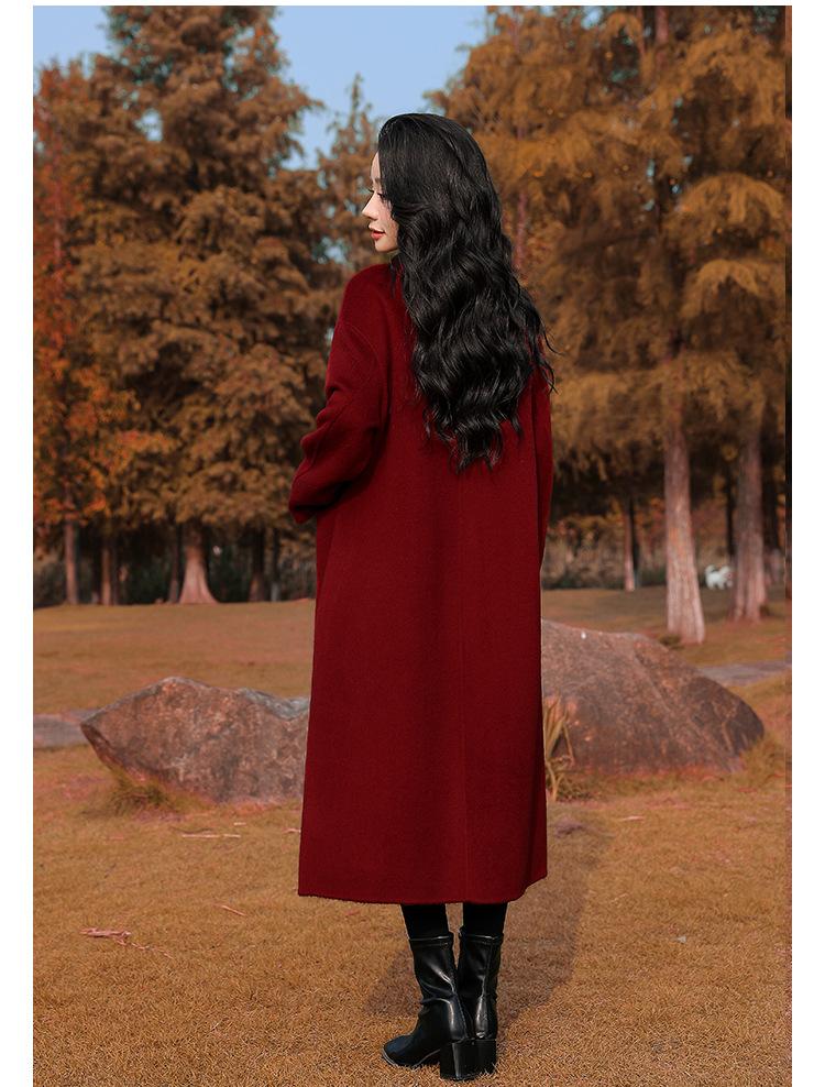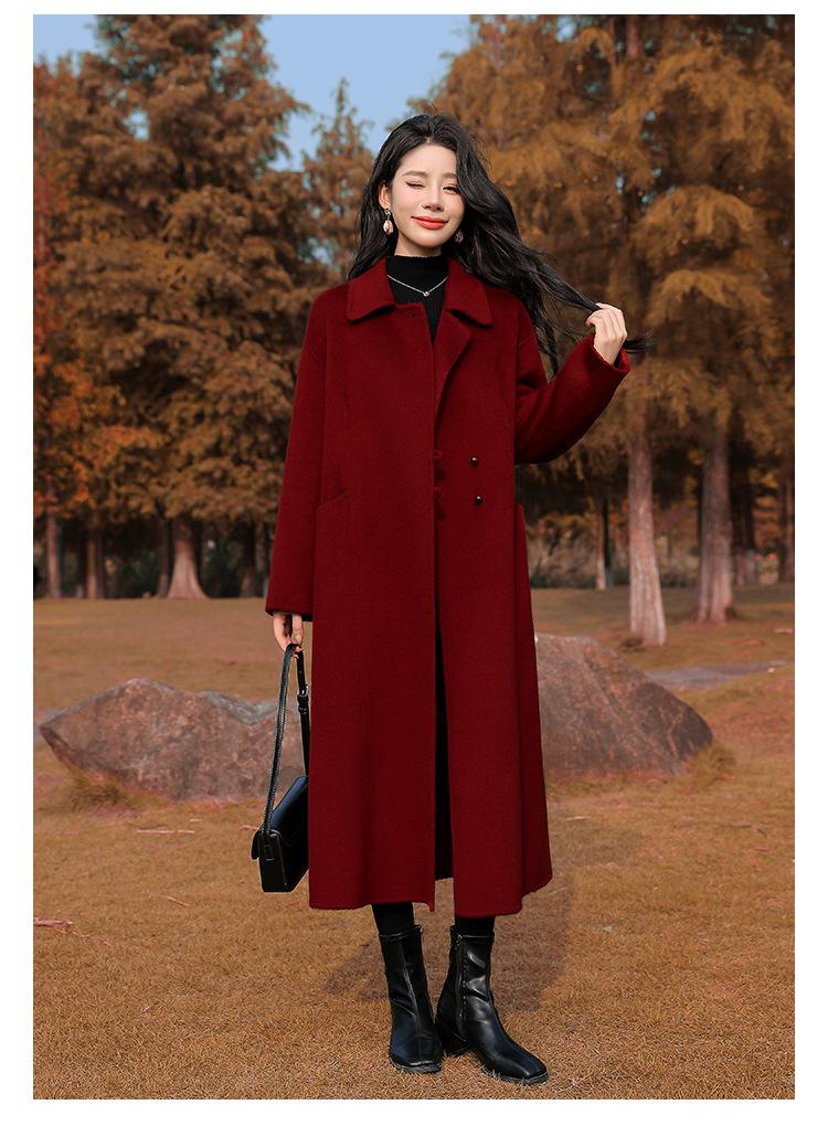 Casaco de caxemira dupla face feminino comprimento médio 2025 outono e inverno novo acima do joelho solto temperamento lã mista casaco high-end