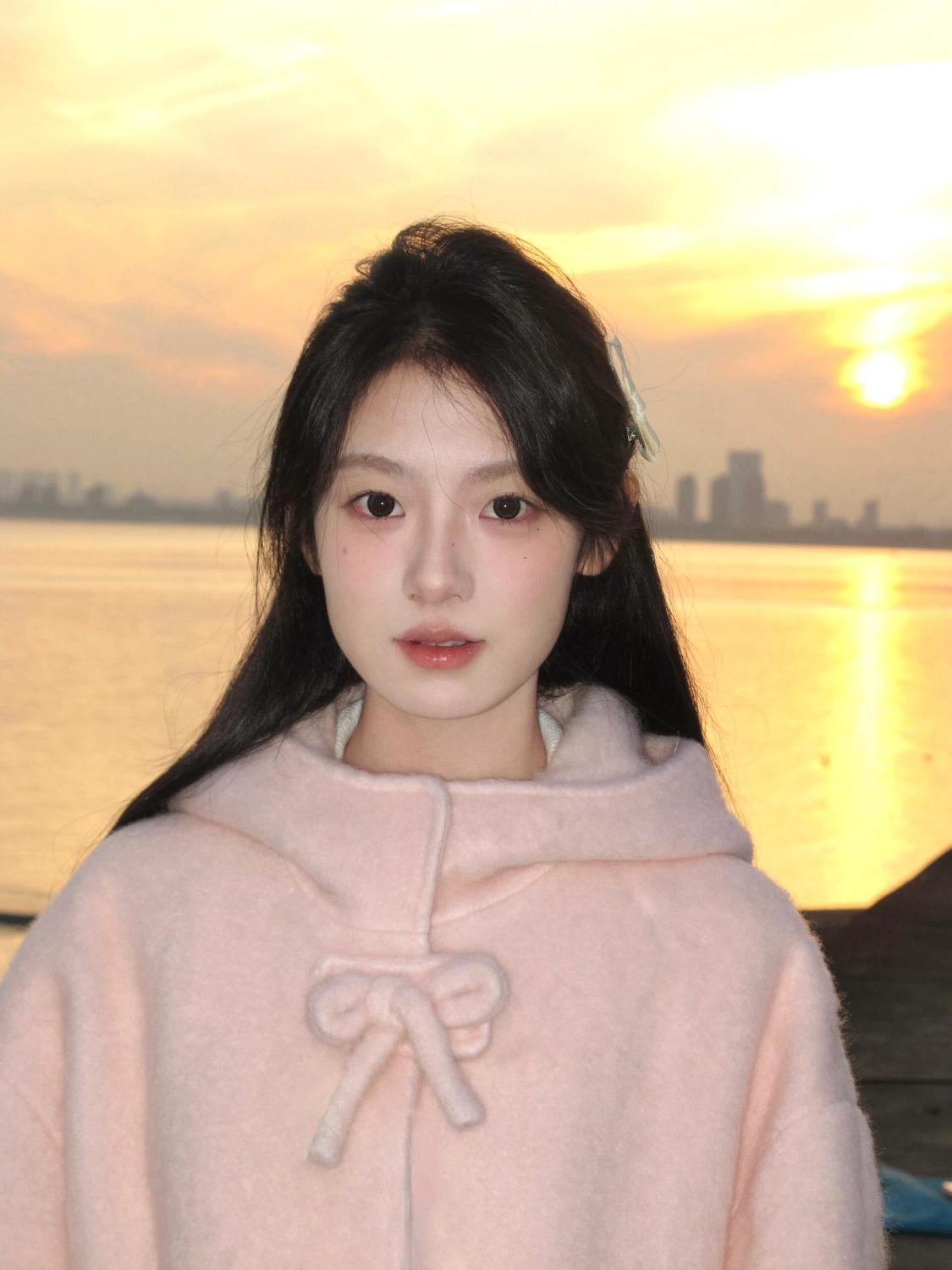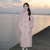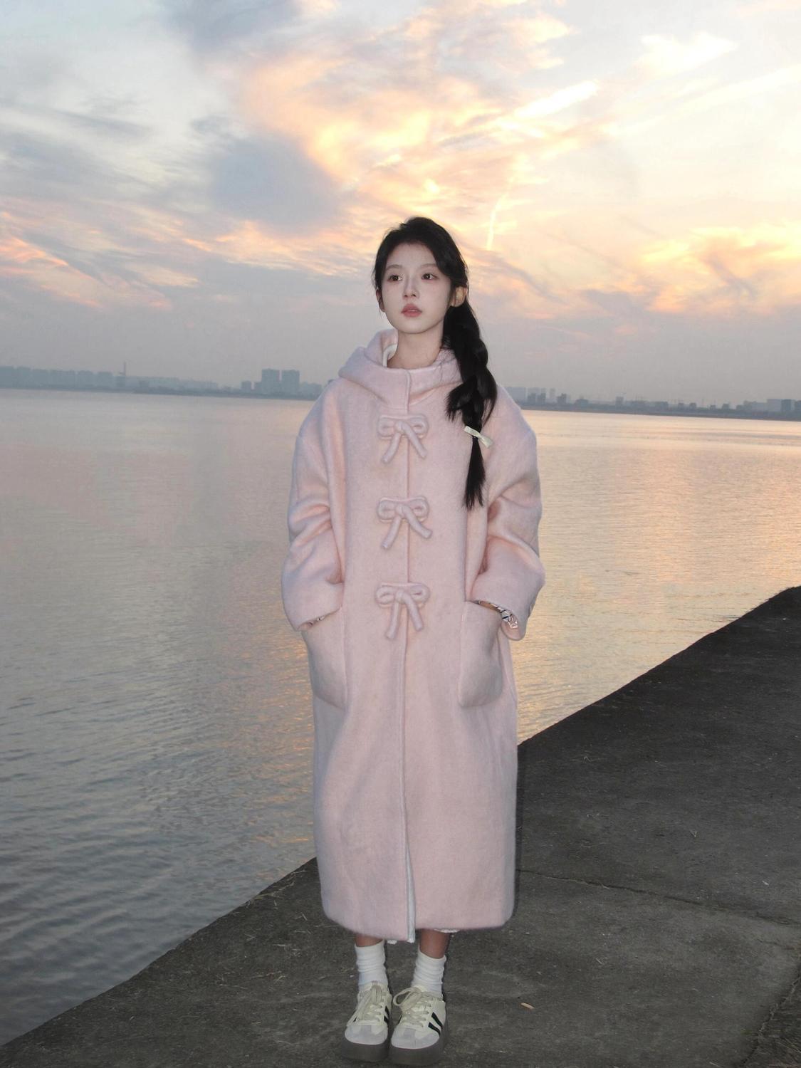Casaco de Lã Rosa para Mulheres Outono e Inverno 2025 Novo Casaco de Lã Pequeno Mid-Length Estilo Coreano