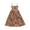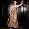 Sexy 2025 Novo Europeu e Americano Alça Espaguete Feminino Verão Estampa de Leopardo Sem Costas Emagrecimento Estampado Vestido Longo