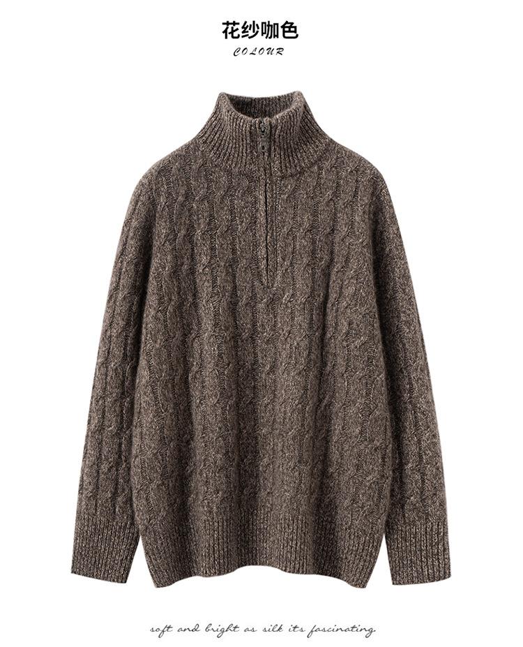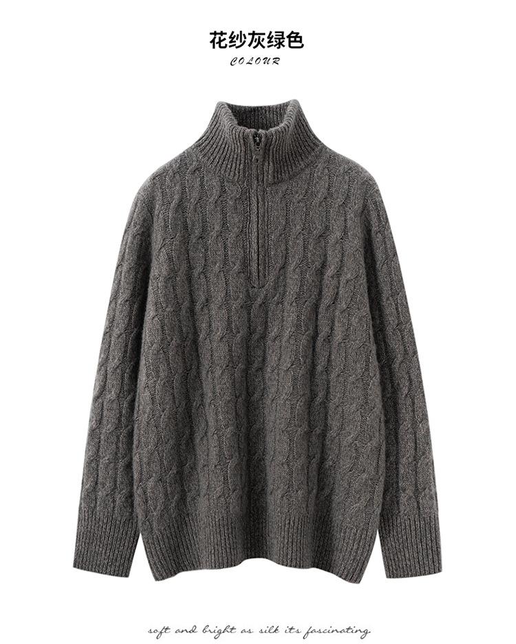 Nova Camada Base de Tricô de Caxemira Outono/Inverno Moda Trabalho Versátil Macia Confortável Solta Colarinho Semiaberto Feminina