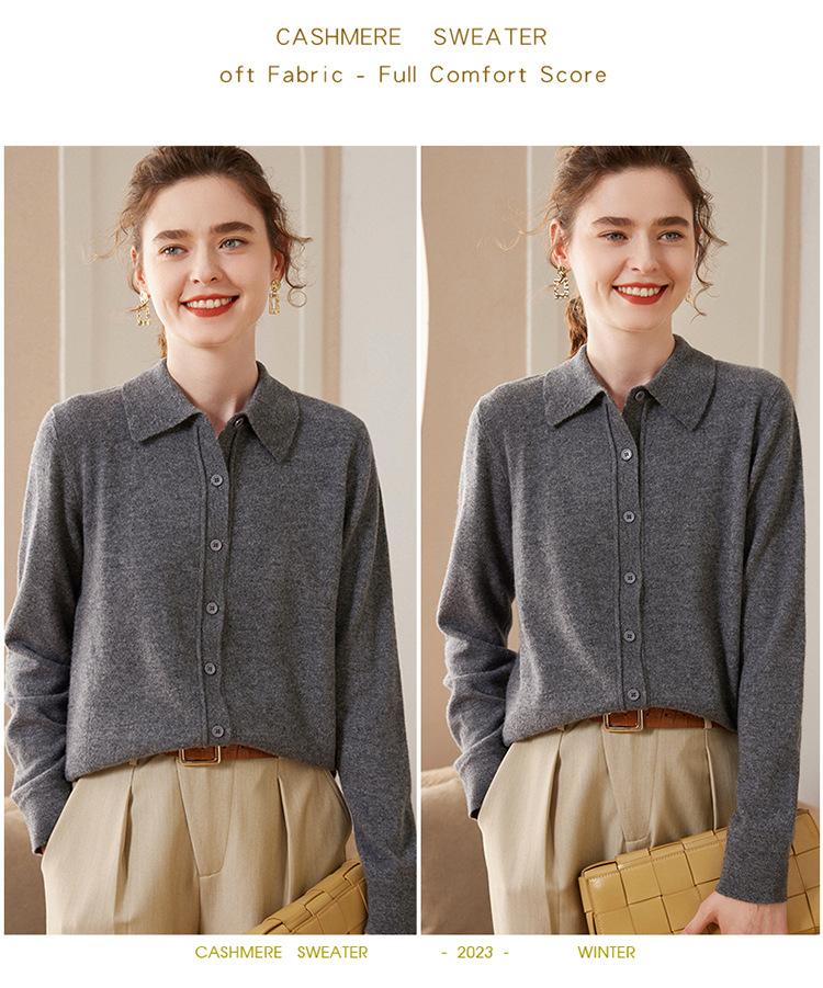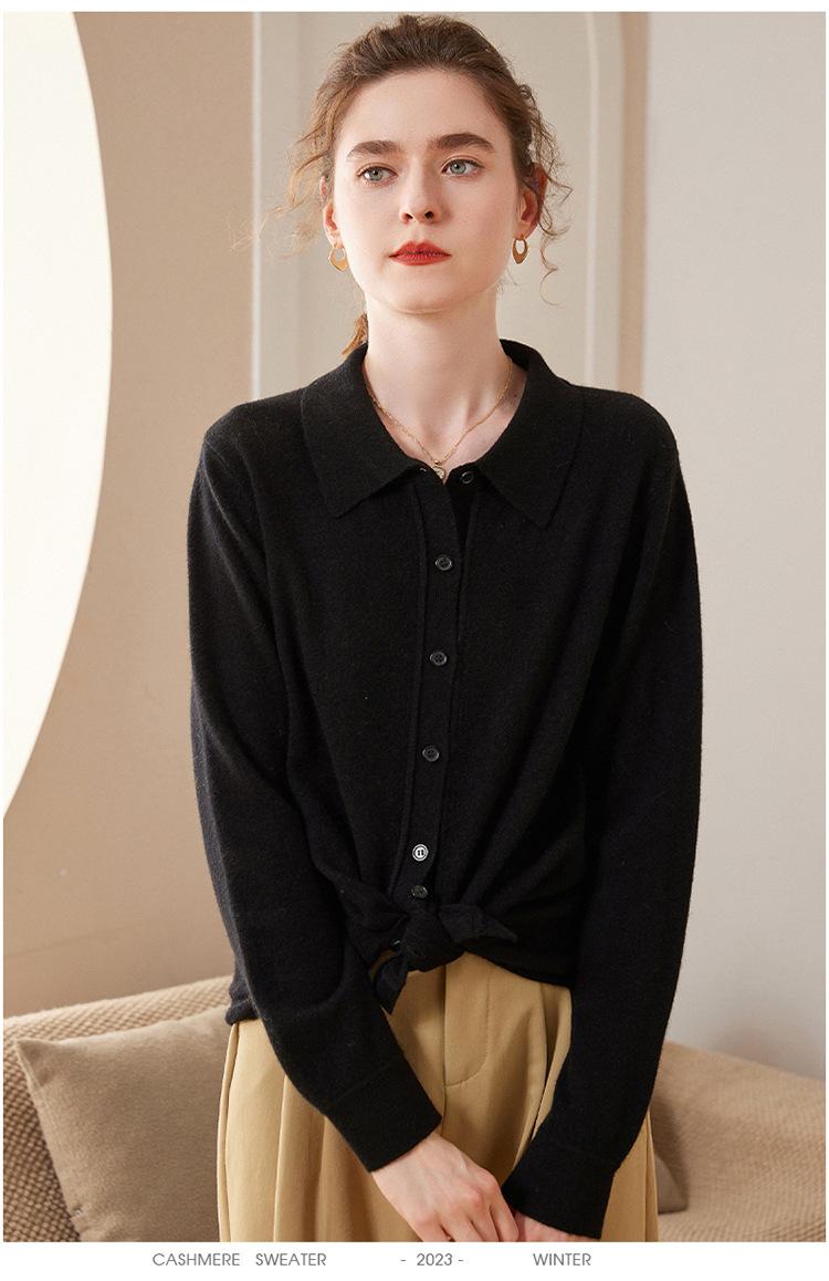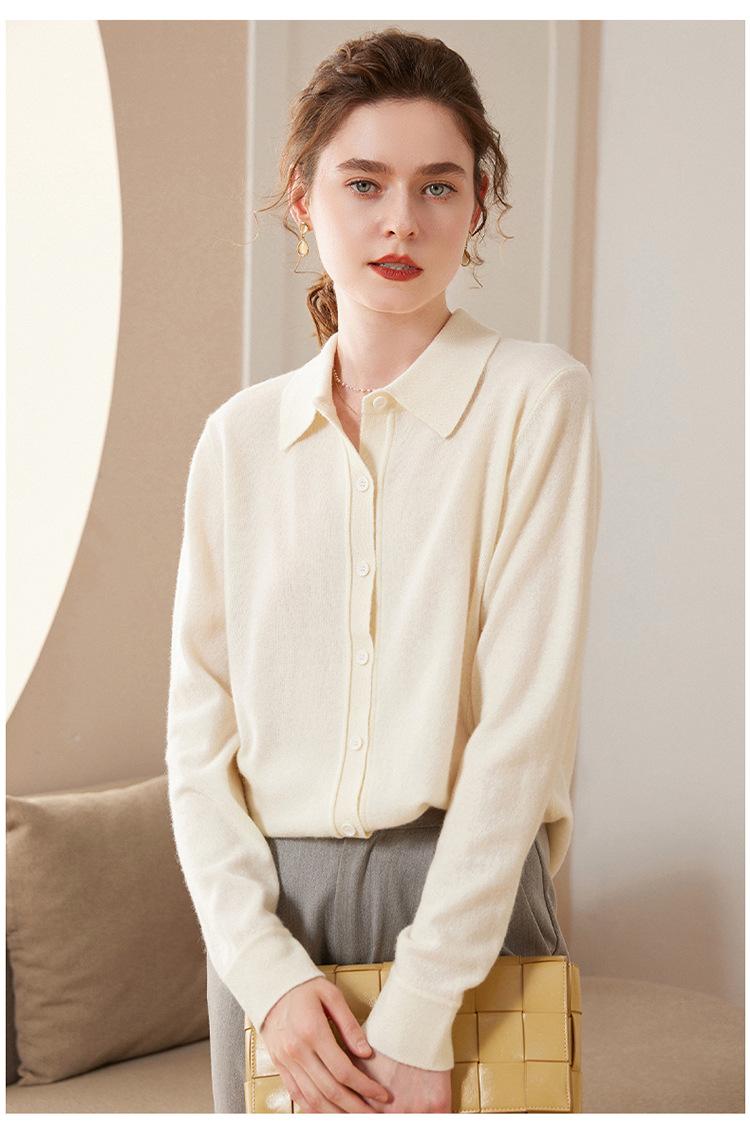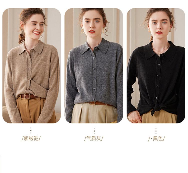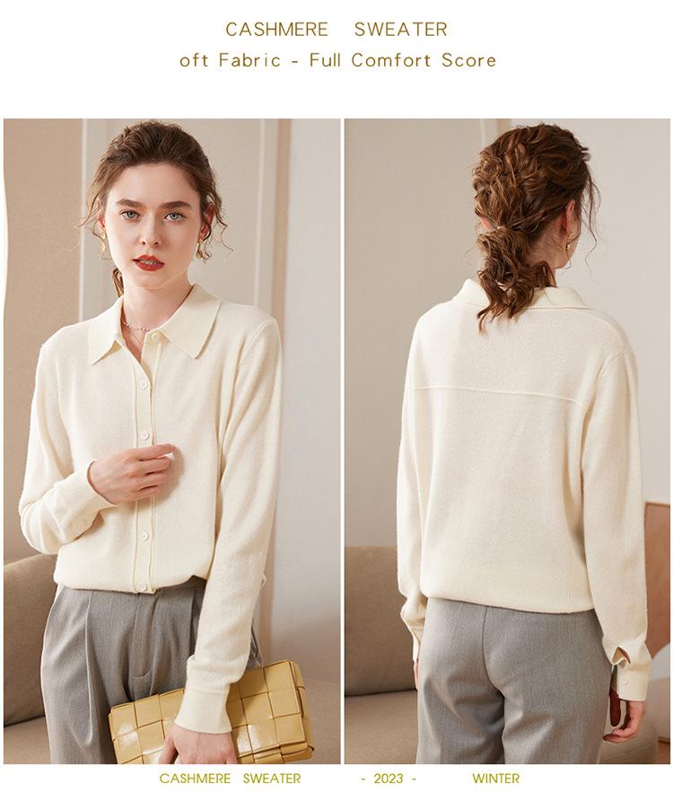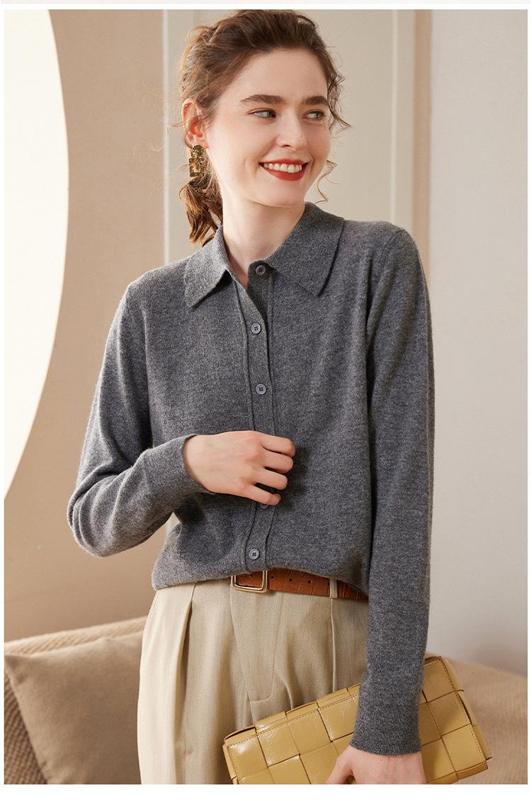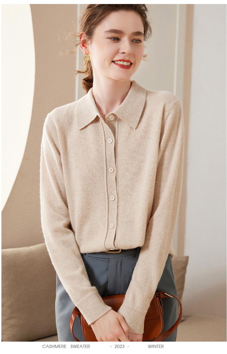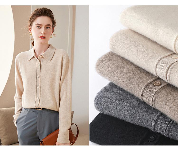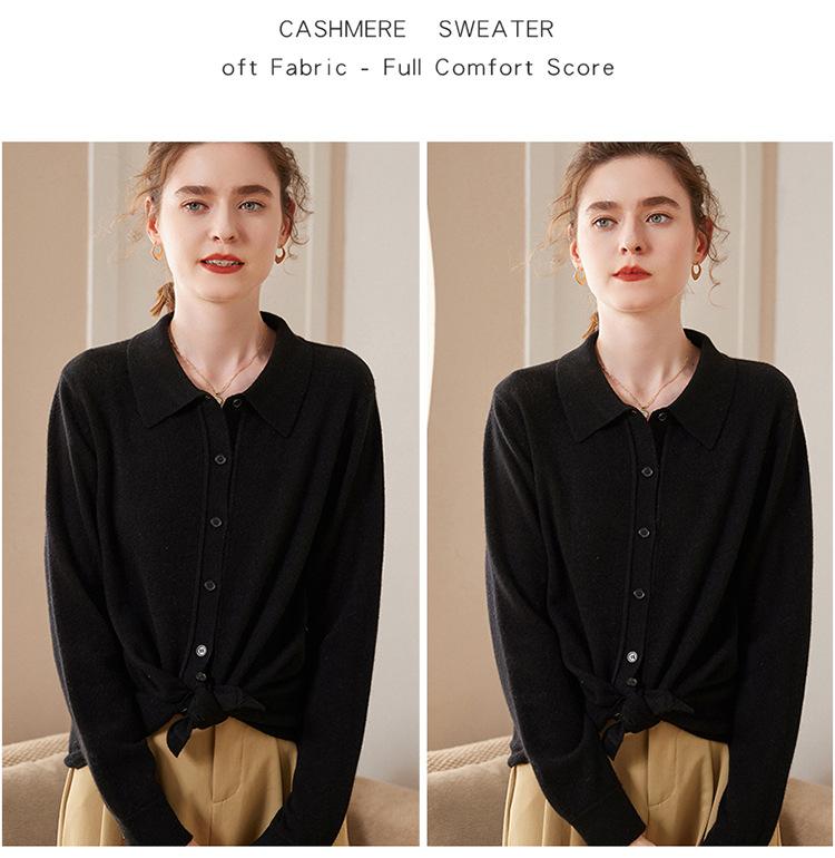 Cardigã de cashmere com gola POLO, camisa de malha de manga comprida nova para o outono e inverno, moda feminina solta, casaco suéter