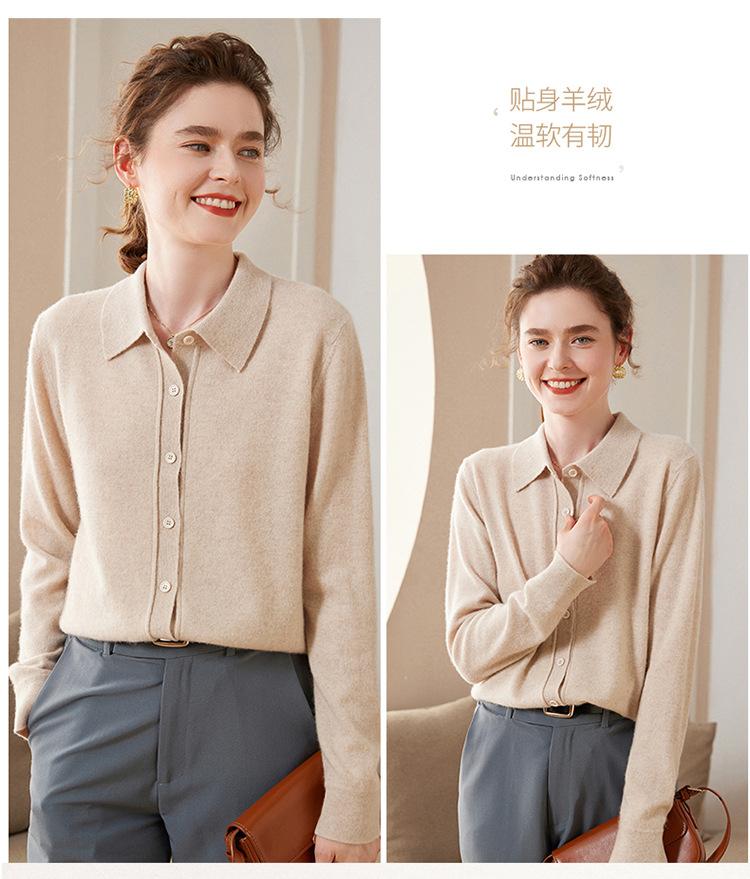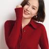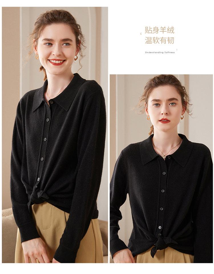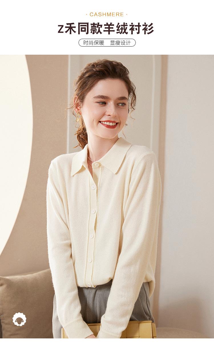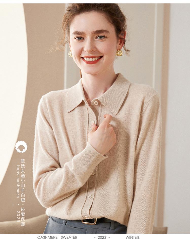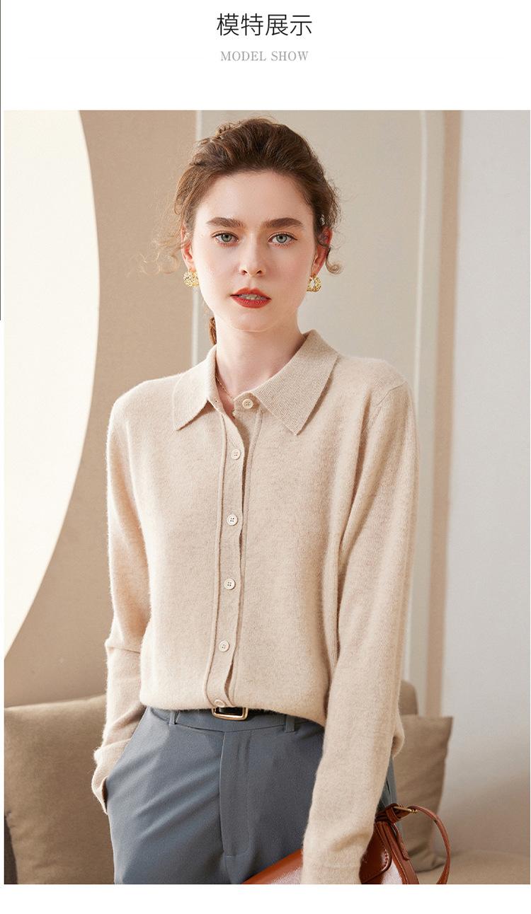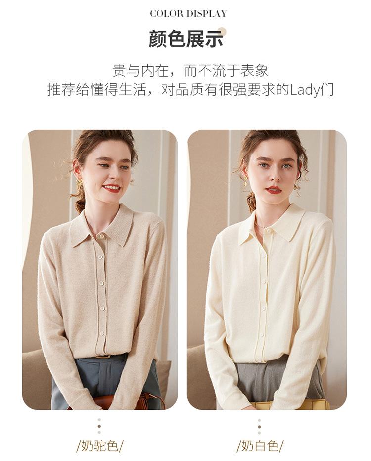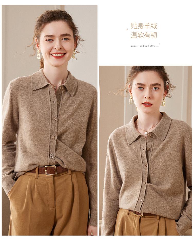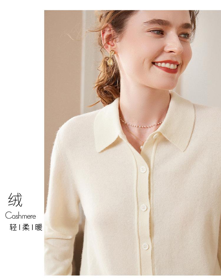 Cardigã de cashmere com gola POLO, camisa de malha de manga comprida nova para o outono e inverno, moda feminina solta, casaco suéter