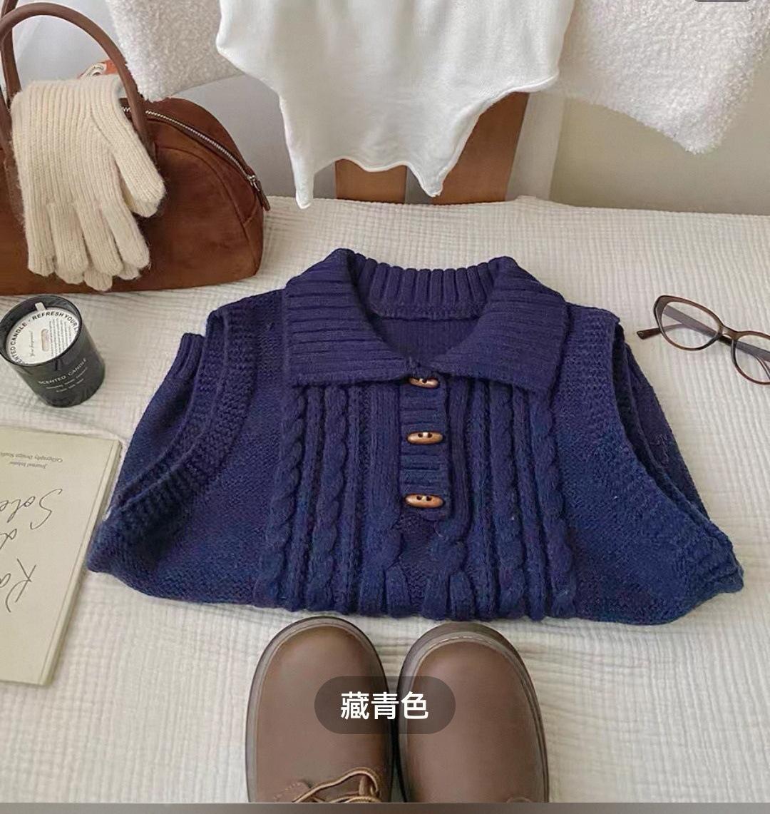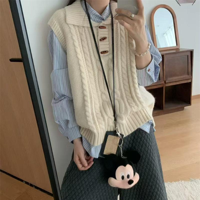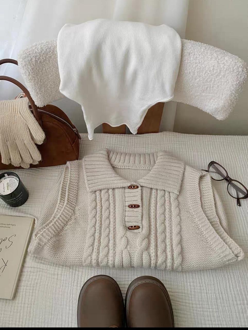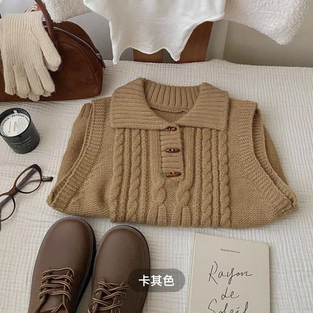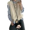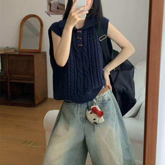 Colete polo de tricô com cabo e fecho de alça estilo coreano para mulheres 2025 novo colete suéter com senso de design casual