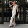 Fornecimento Transfronteiriço 2025 Novo Verão Estilo Europeu e Americano Vestido Longo Sexy Feminino Sem Costas com Babados e Alças