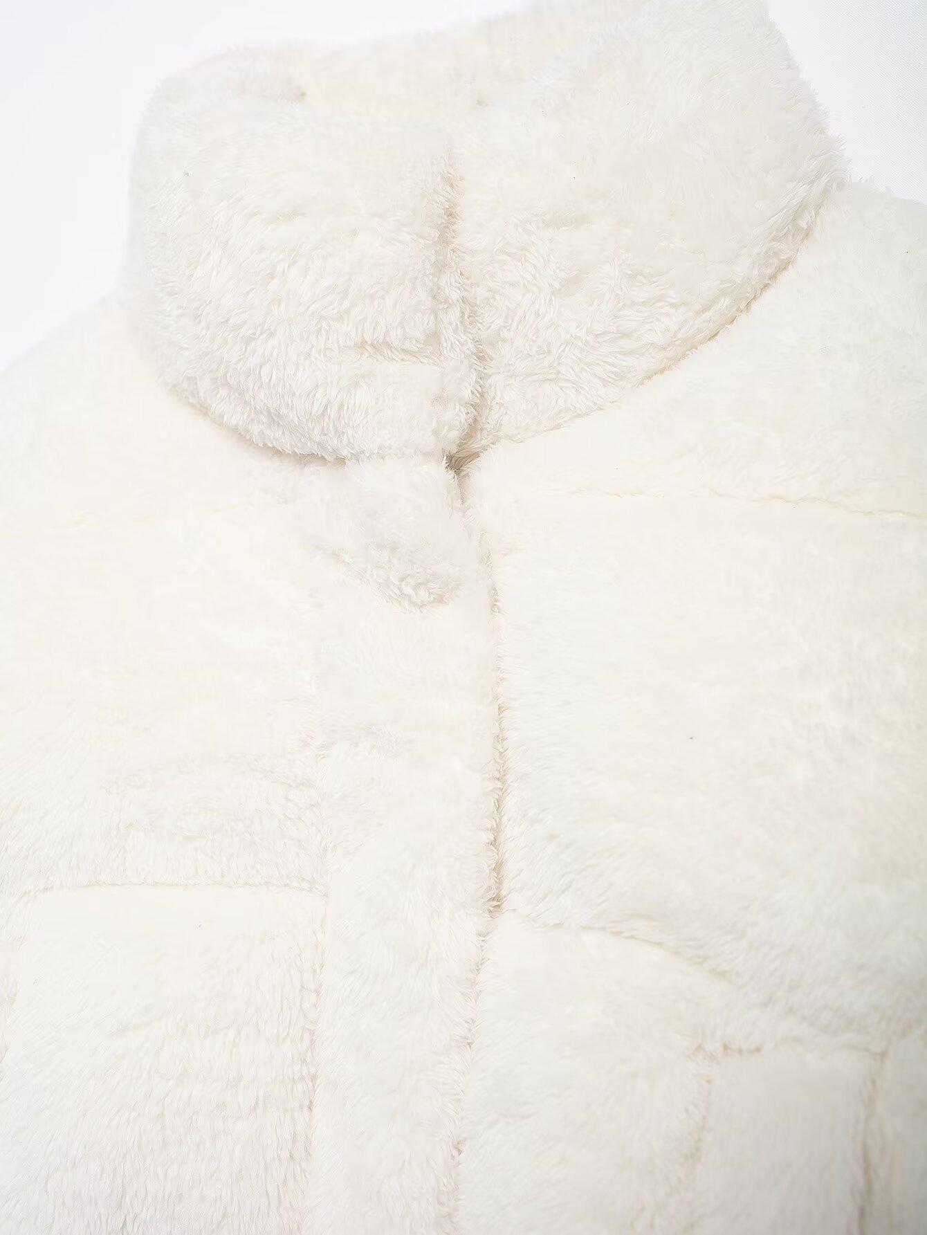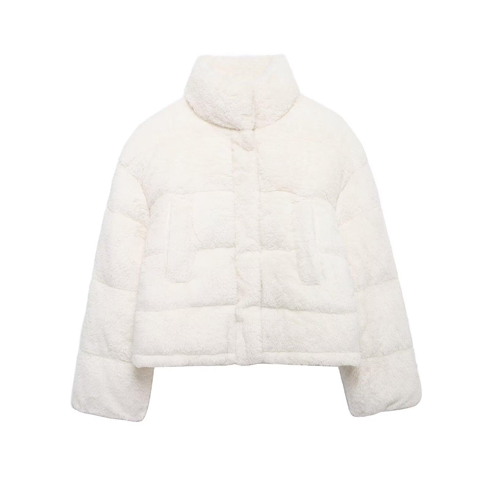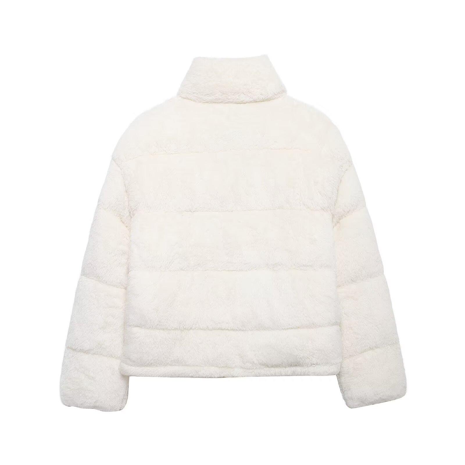 Novo Outono e Inverno da Amazon Roupas Europeias e Americanas Peludas, Confortáveis e Soltas Jaqueta de Algodão com Zíper e Gola Alta