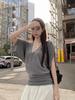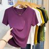 2025 Nova Camiseta de Algodão Branca de Verão com Decote V Feminina Modal Manga Curta Solta Versátil Top com Camiseta para Usar por Baixo