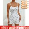 2025 Novo Macacão Jardineira Estampado Floral Verão Feminino Recortado Laço Cobre Quadril Estilo Fresco