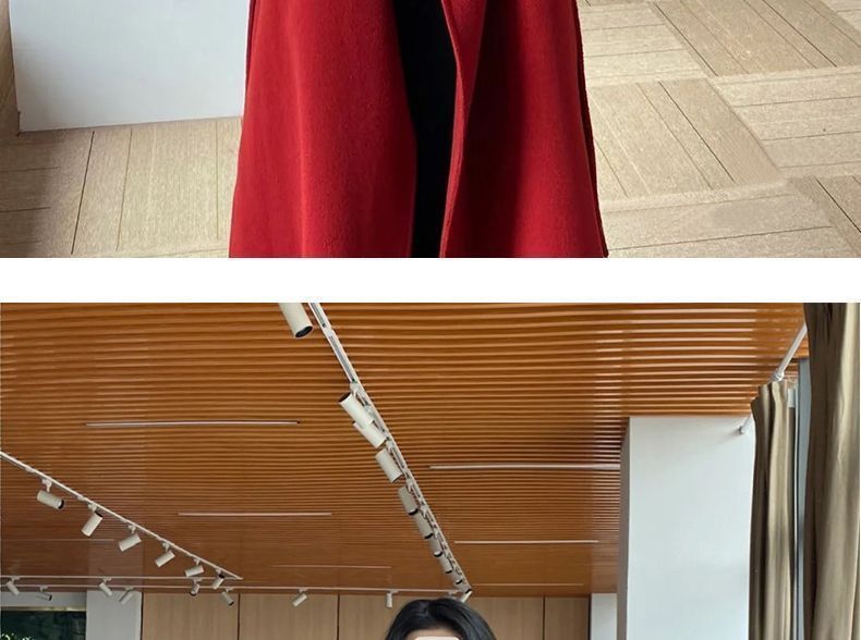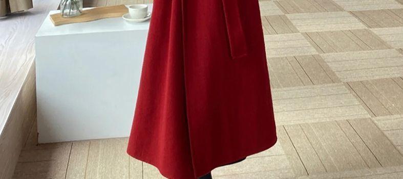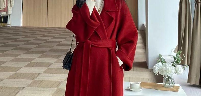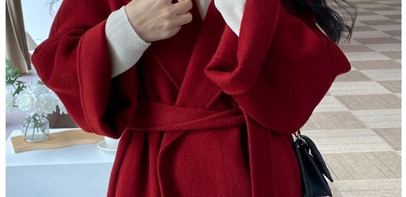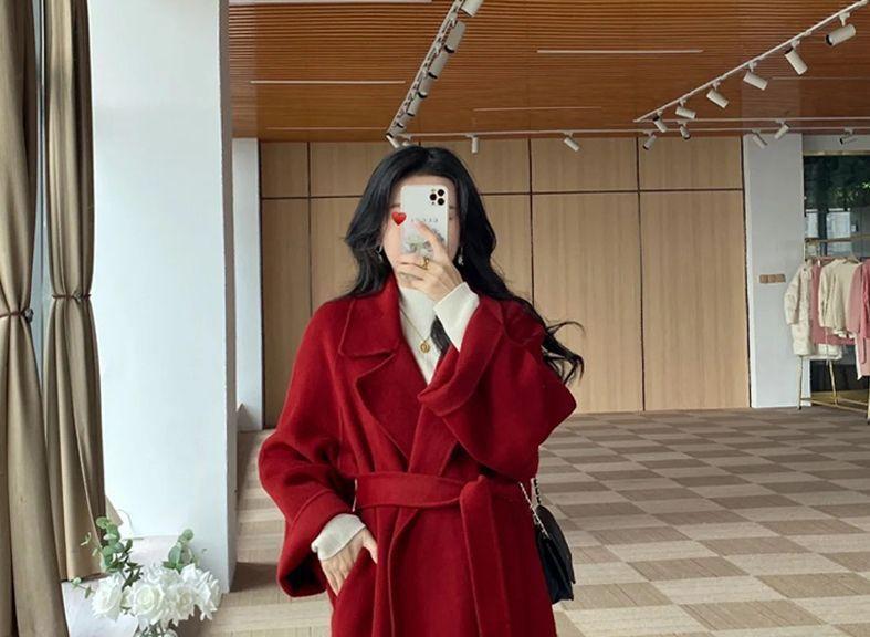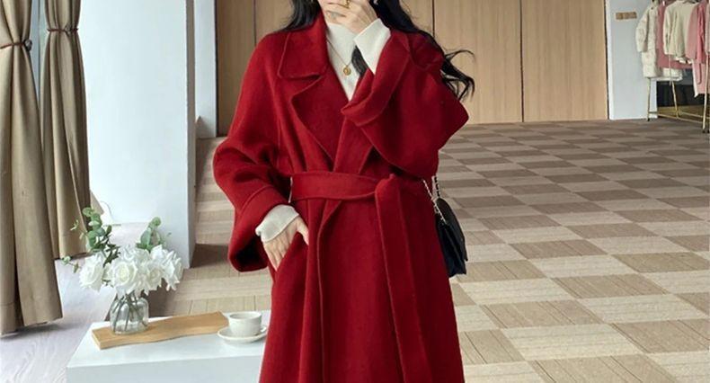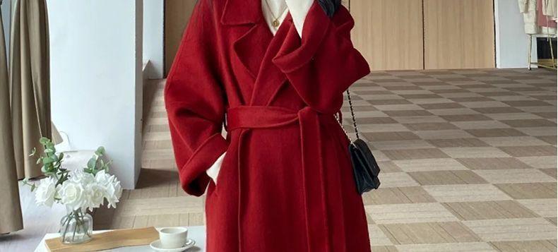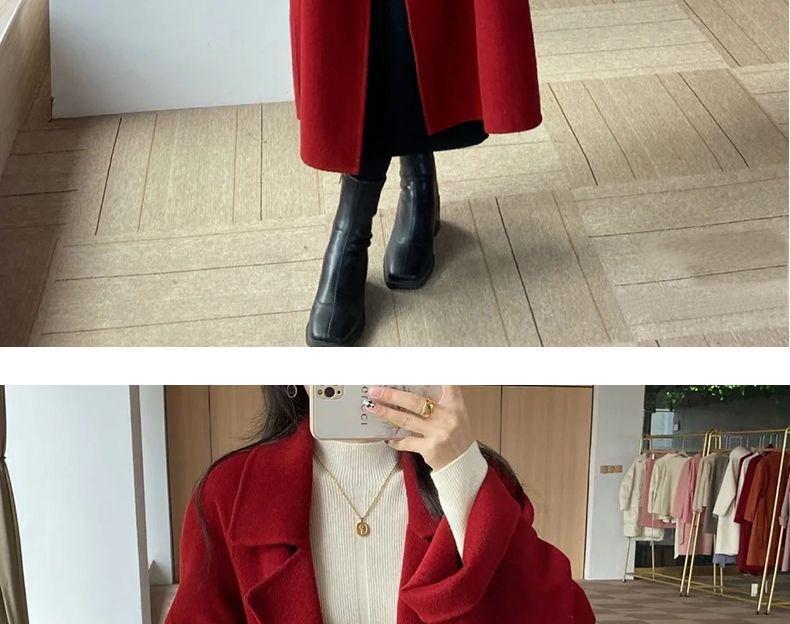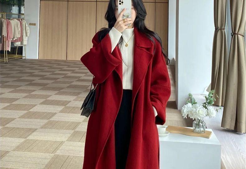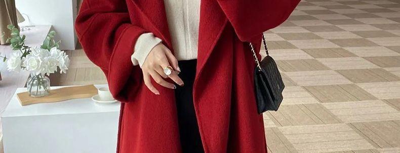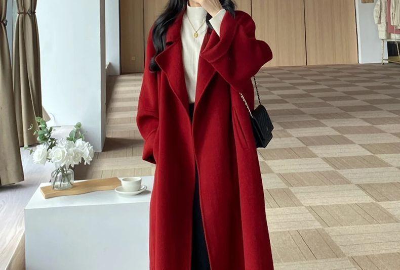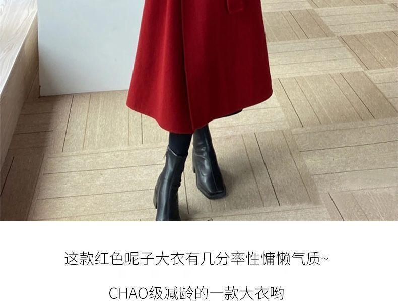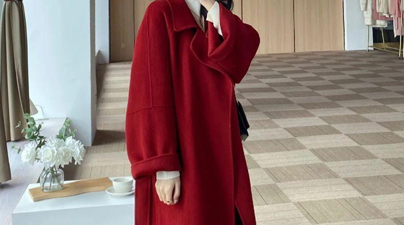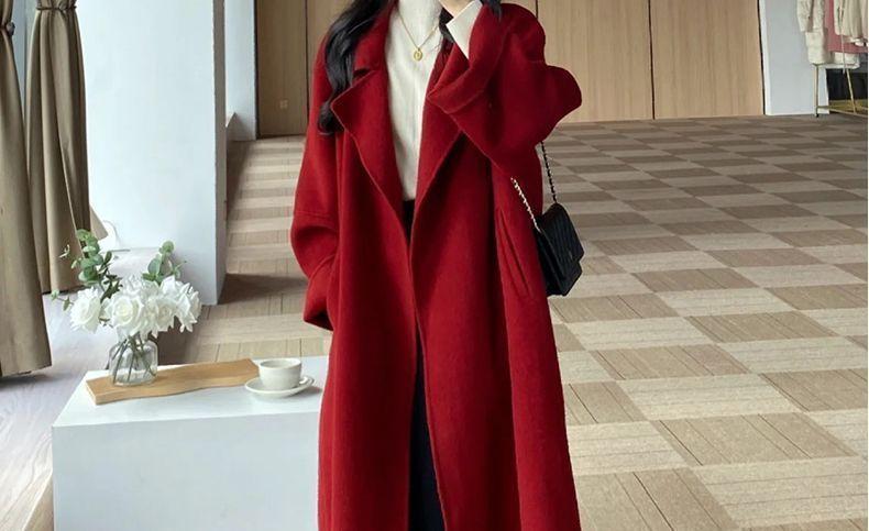 Casaco de lã vermelho feminino inverno 2025 novo solto temperamento sofisticado comprimento médio casaco de lã
