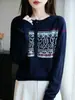 Cardigan Retrô Francês Decote V Casaco Suéter Feminino 2025 Outono e Inverno Novo Temperamento Bordado Contas Tricotado Top