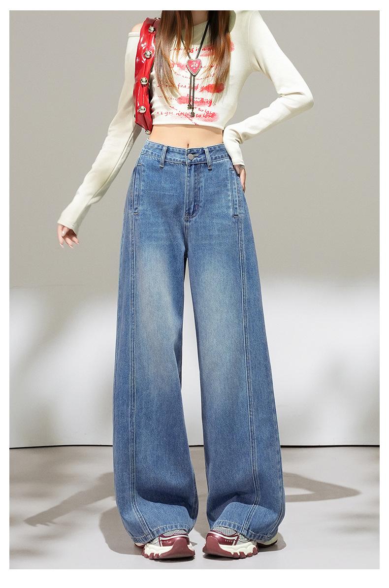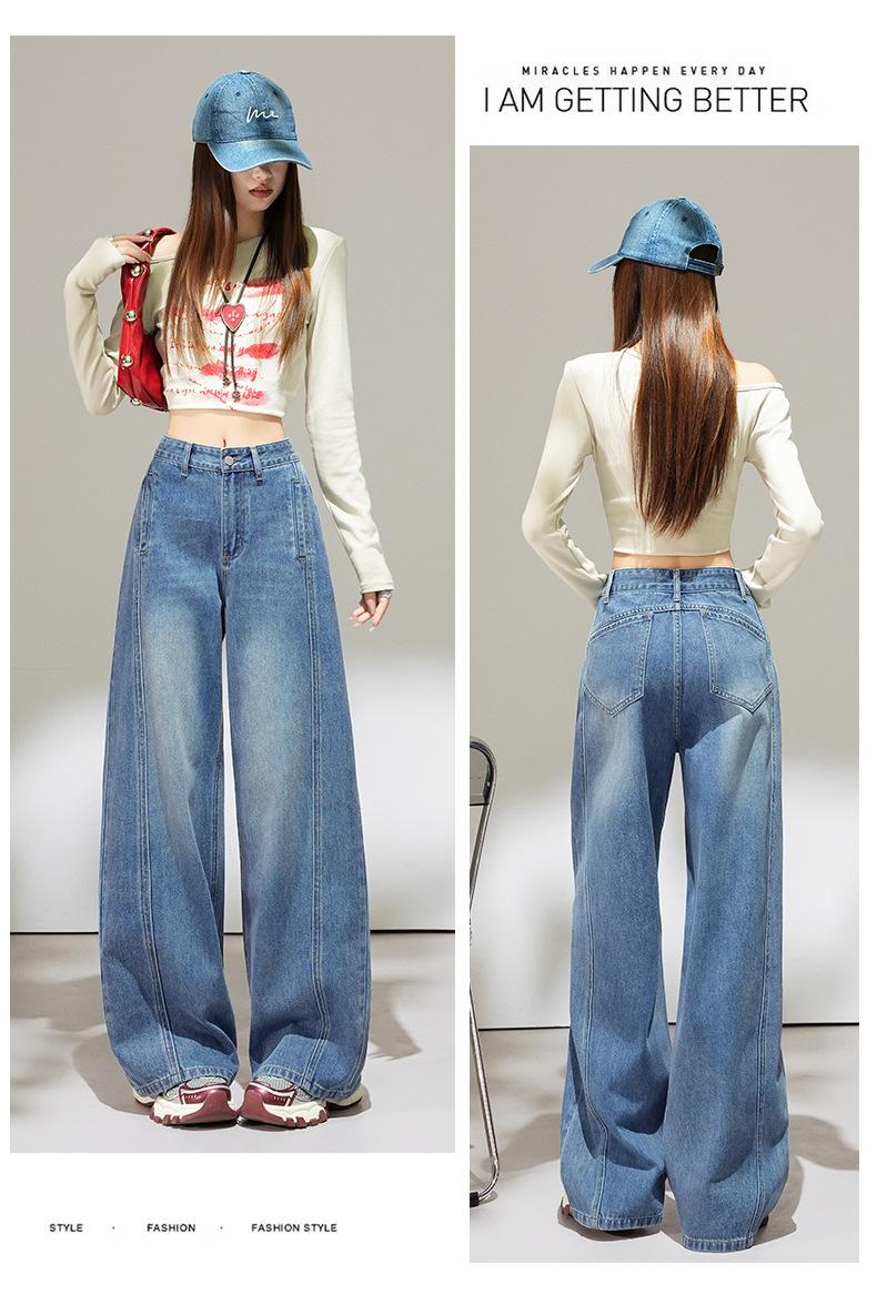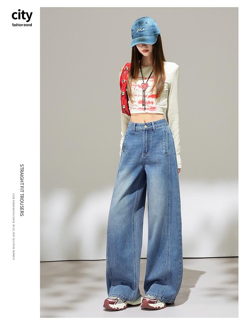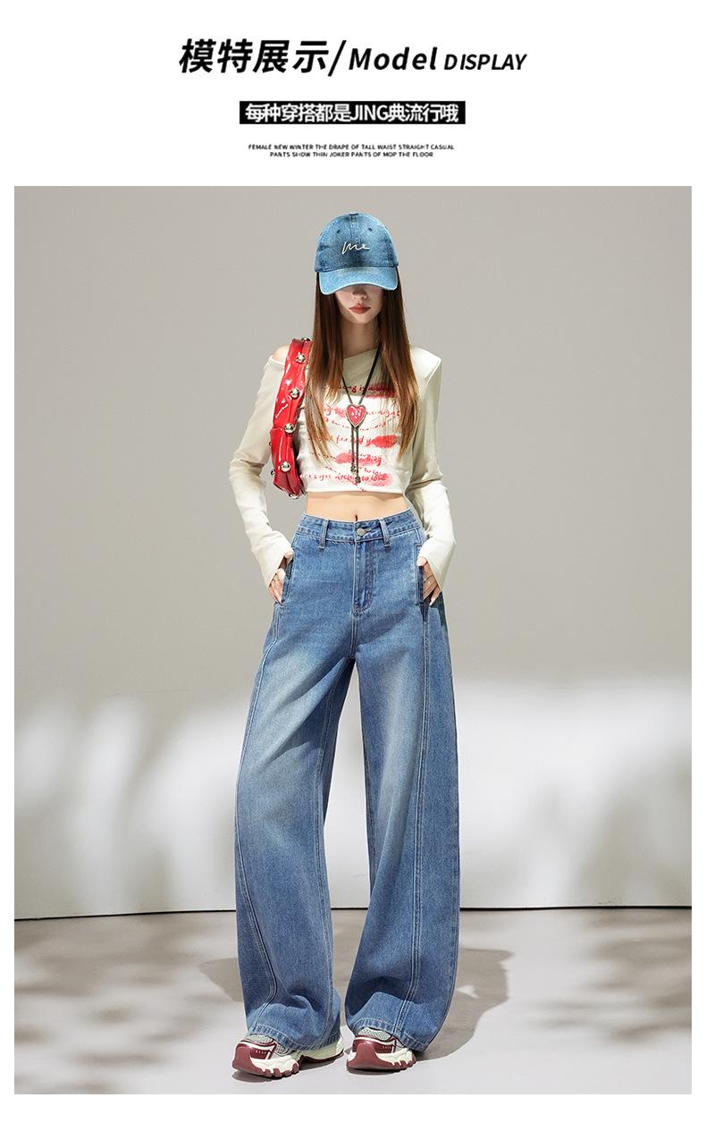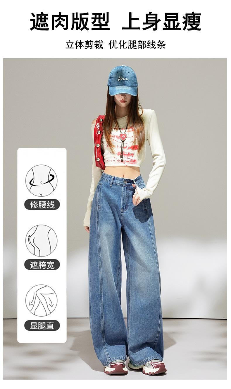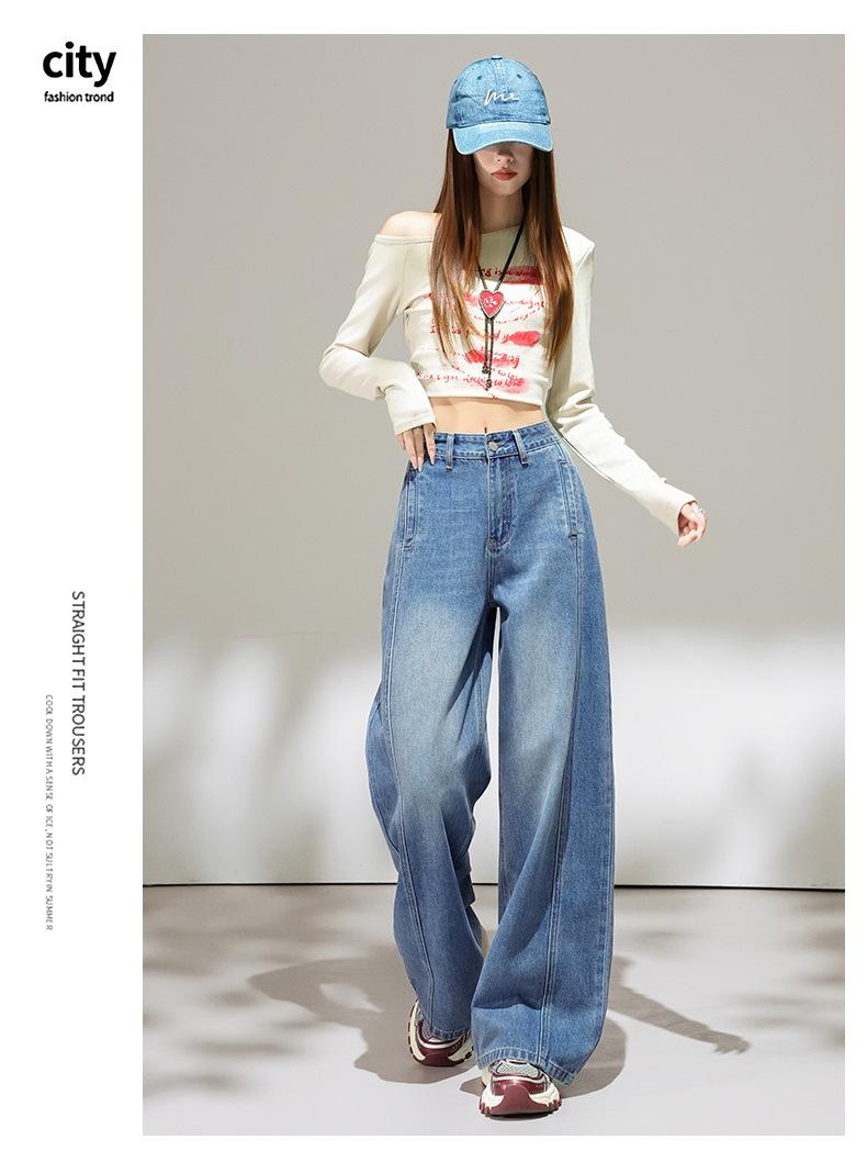 2025 Outono Novo Jeans Cropped Solto de Cintura Alta e Perna Reta Feminino Emagrecimento Personalidade Levanta Quadril Petites Calças Compridas