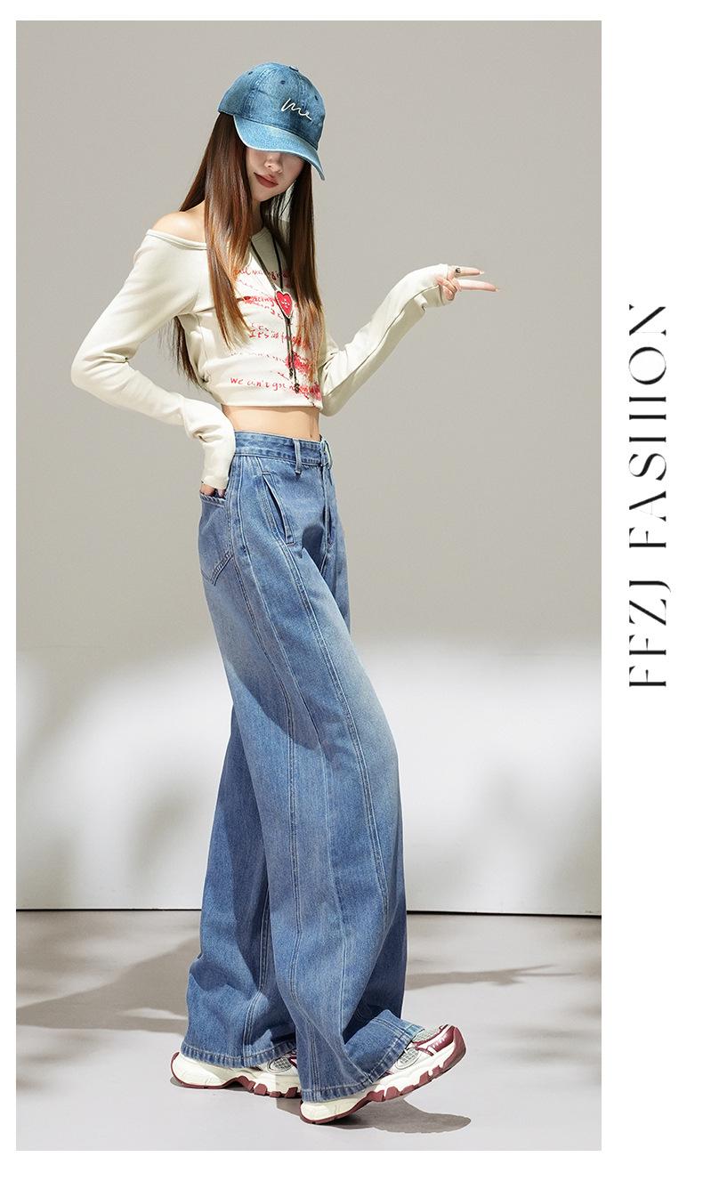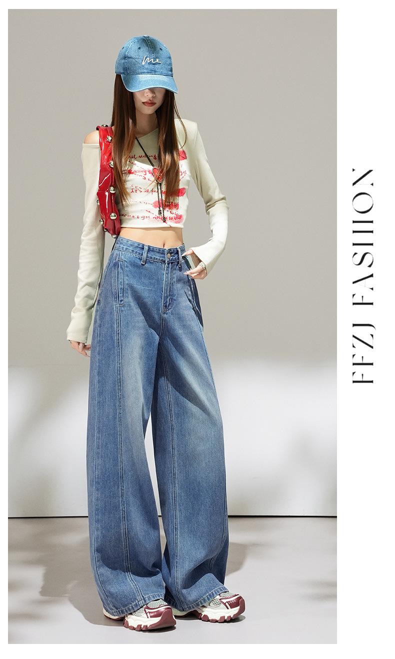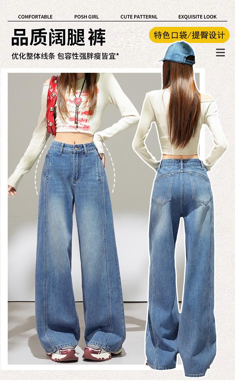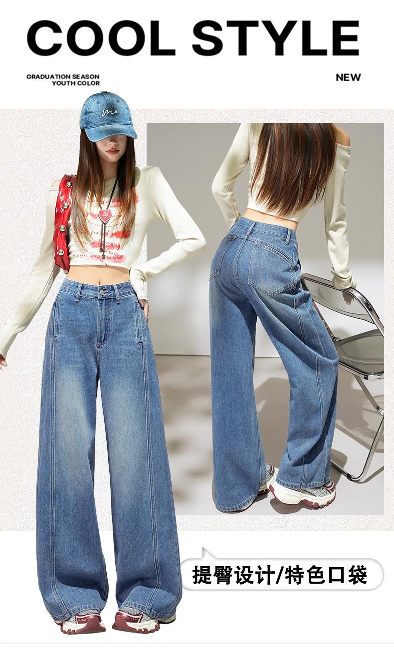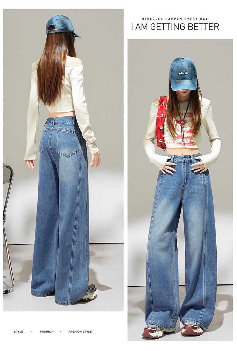 2025 Outono Novo Jeans Cropped Solto de Cintura Alta e Perna Reta Feminino Emagrecimento Personalidade Levanta Quadril Petites Calças Compridas