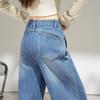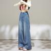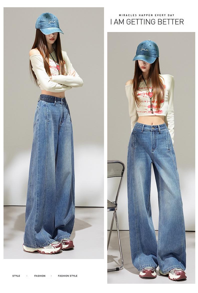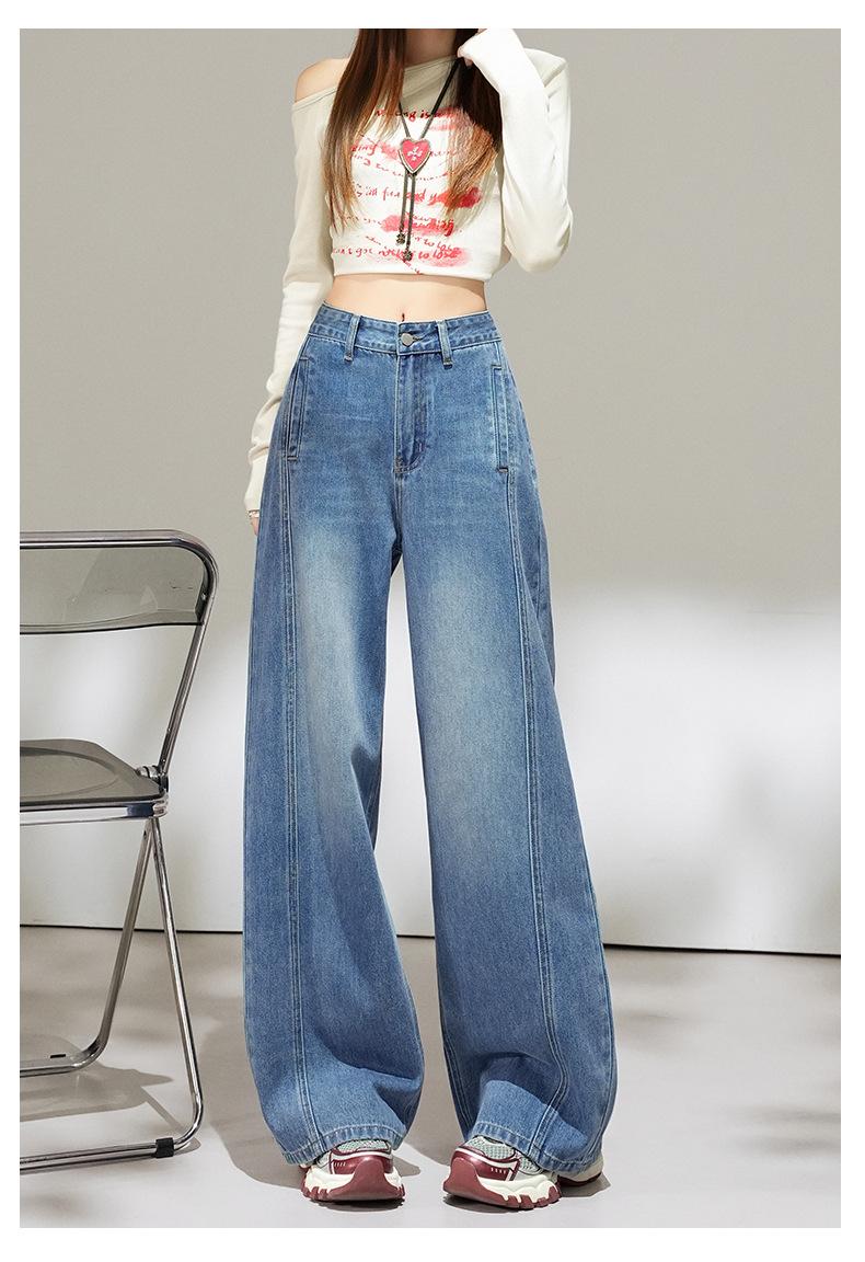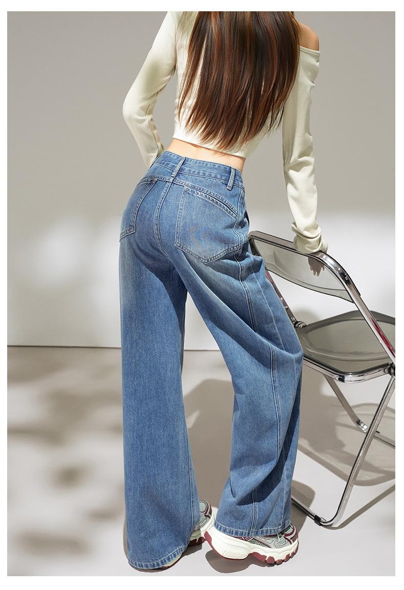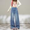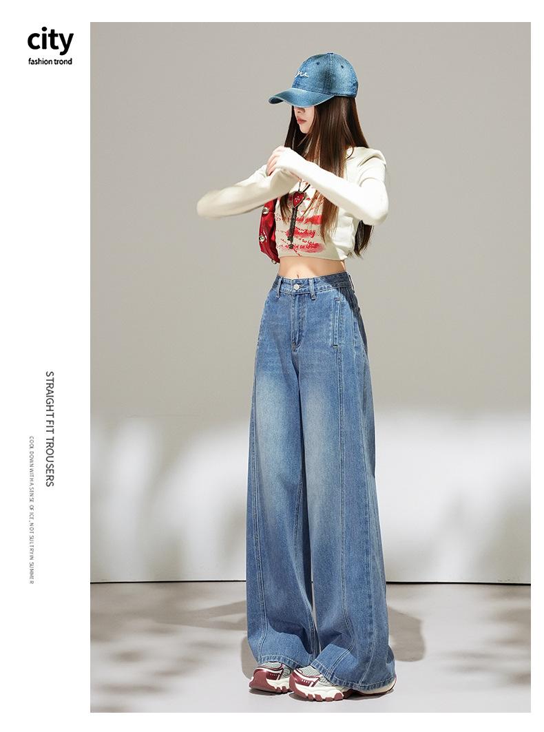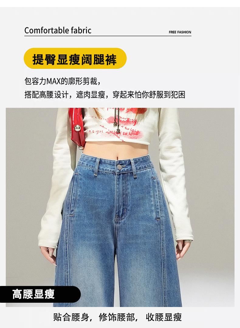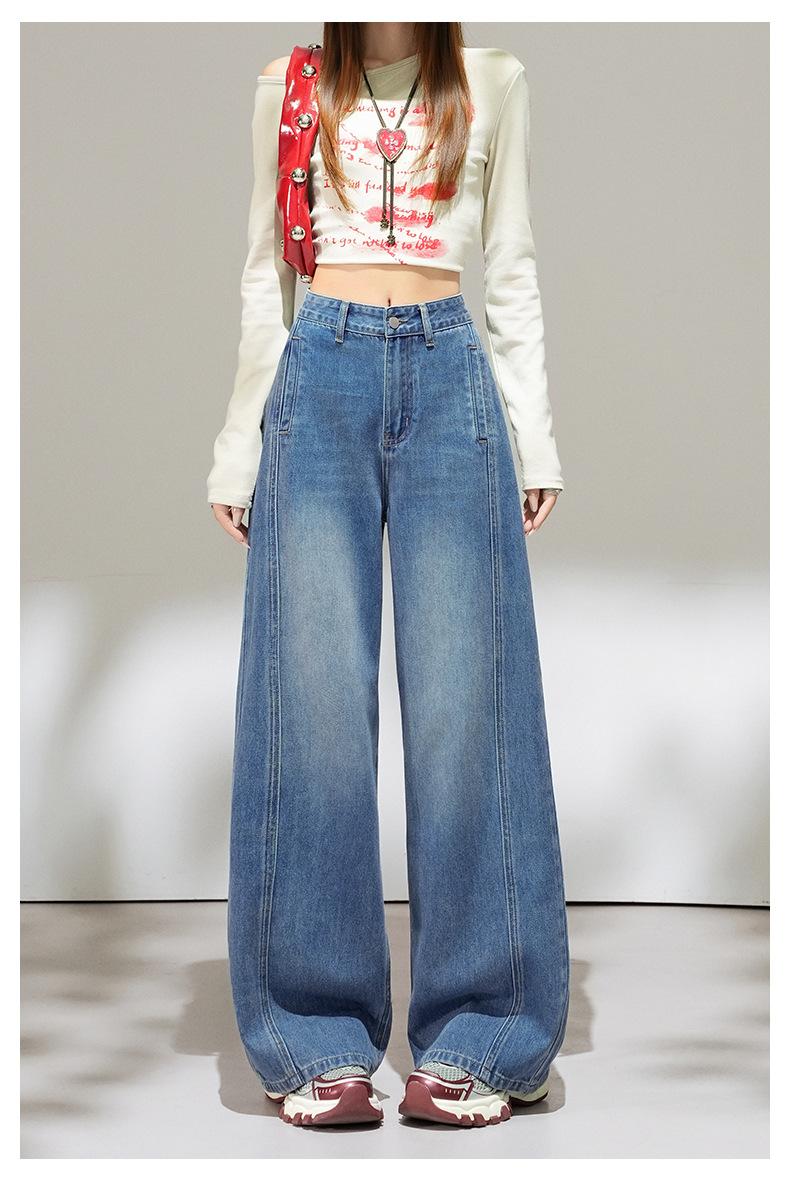 2025 Outono Novo Jeans Cropped Solto de Cintura Alta e Perna Reta Feminino Emagrecimento Personalidade Levanta Quadril Petites Calças Compridas