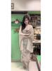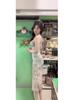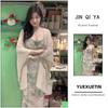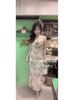 Tamanho plus menina gordinha Verão Novo Estilo Chinês Renda Floral Vestido de Alça Cintura Vestido Longo Jaqueta Cardigã Conjunto de Duas Peças Fashion